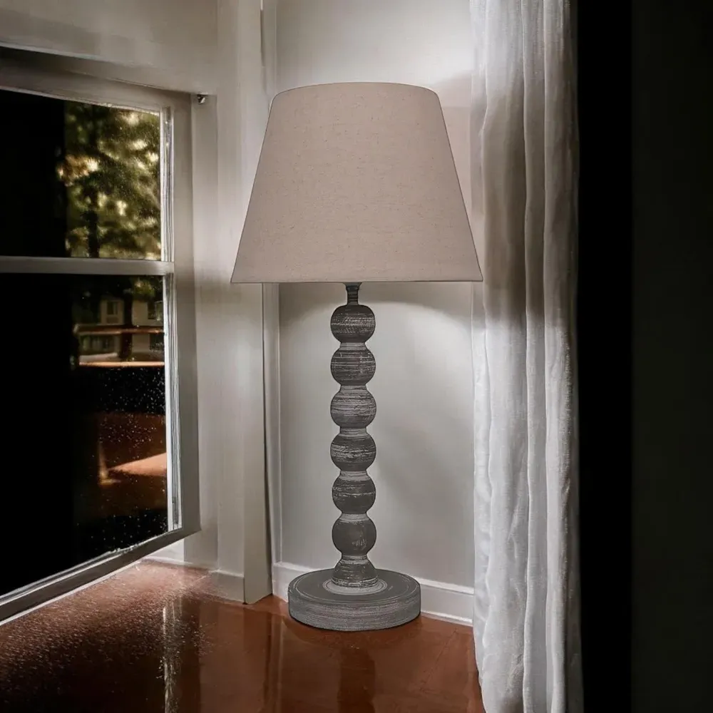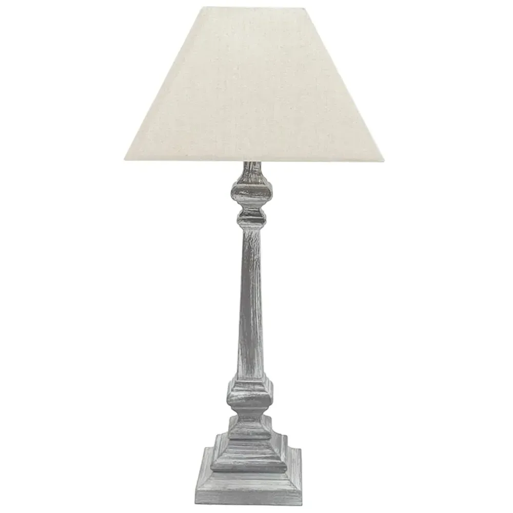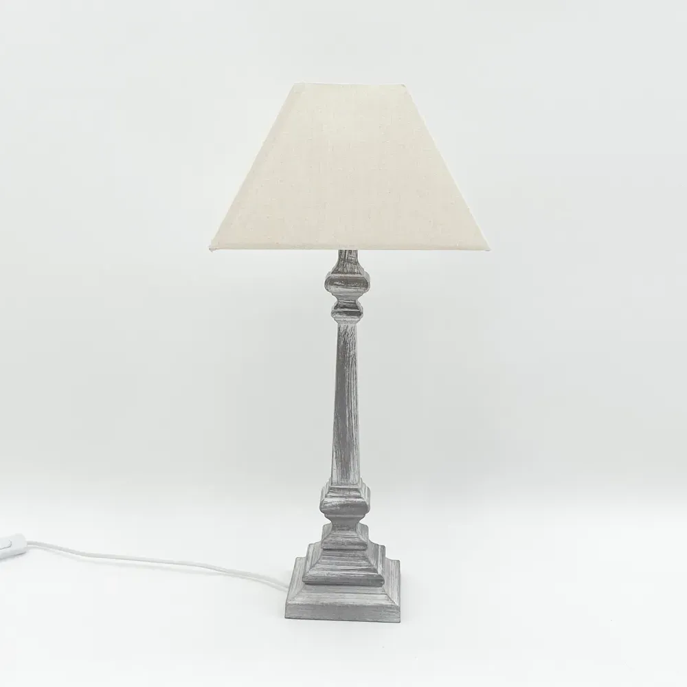 The table lamp offers traditional charm with its grey base and cream linen shade. Its inline rocker switch provides easy operation, while the double insulated construction ensures enhanced safety without requiring an earth wire. The linen shade casts a soft, inviting glow that creates a cosy atmosphere.