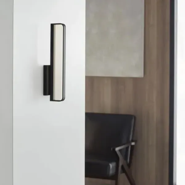 Designed with modern appeal, this slim black wall light by Sean Lavin provides a clean aesthetic with straight-lines and crisp edges enveloping integrated LEDs. Banda Wall Light Black, Wall Light, Matte Black - Andrew Martin