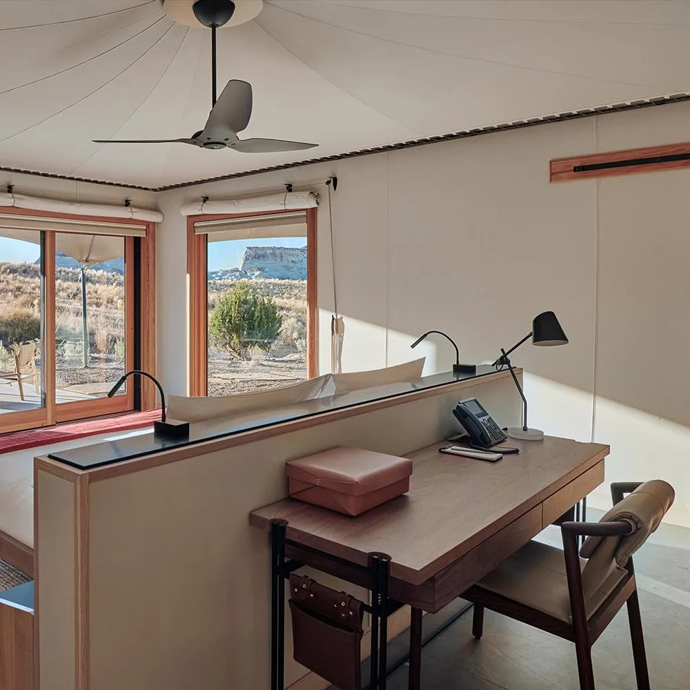 The Hartau table light combines classical design with precision engineering, featuring distinctive lampshades with dual openings that provide both direct and indirect illumination. Its frosted glass tube diffuses light from a mini LED bulb, while the central swivel is machined from solid brass for smooth operation. The metal components are precision-made in Quebec, Canada, and the fixture is finished with an alabaster base that adds weight and stability.