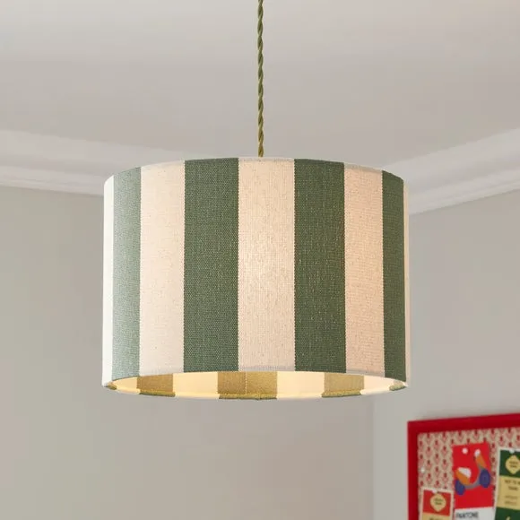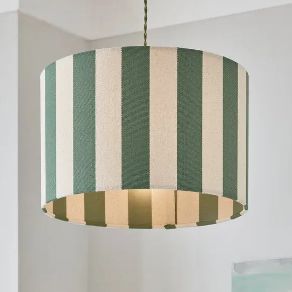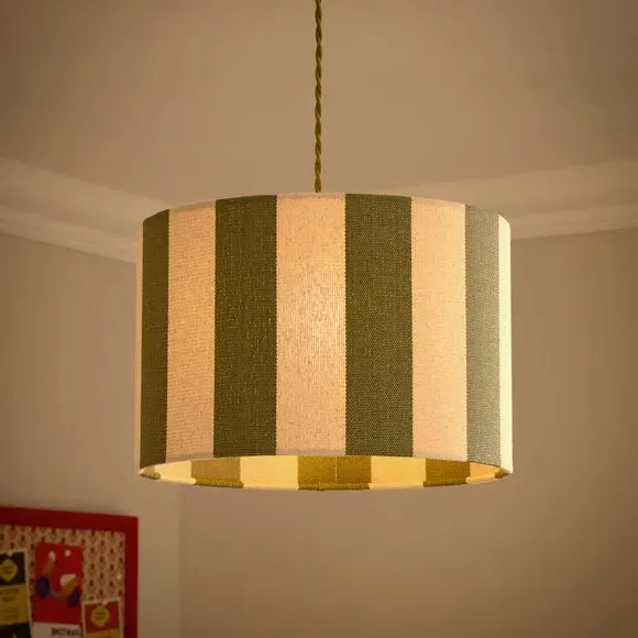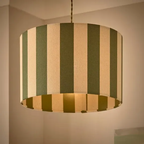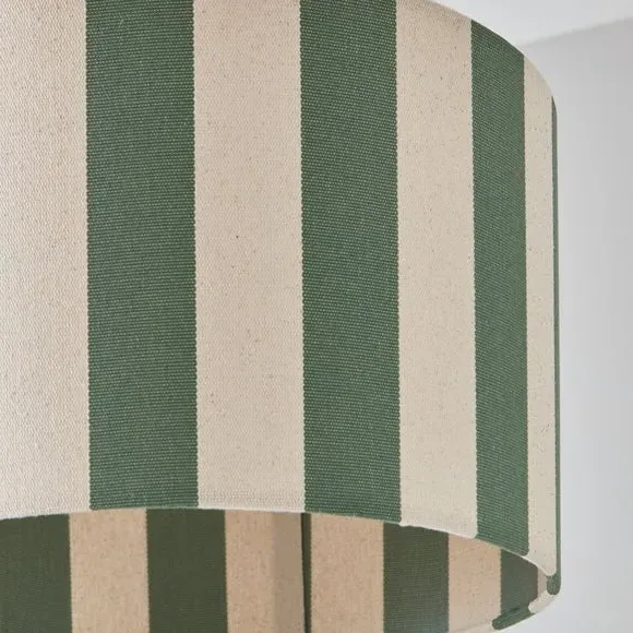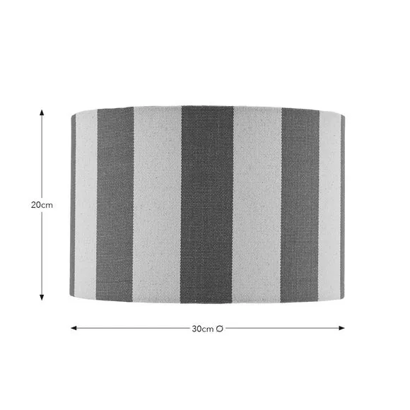 * Bold, Striped Design* Crafted from Premium, Textured Fabric* Easy to Assemble - No Hassle* Matching Family Items Available Easy to assemble, the Beatrice Stripe Drum Lamp Shade is your home's newest must-have. It features a bold, striped design presented on premium textured fabric. Matching family items available, it is suitable for ceiling, table, and floor lamps.