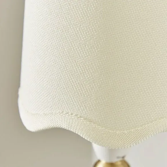The lamp shade combines classic design with contemporary scalloped edges, featuring a linen-effect finish. Its reversible gimbal fitting provides versatility for ceiling, floor, and table lamp applications, while the structured construction ensures reliable mounting. The scalloped edge detail adds visual interest, and the durable materials maintain shape over time.