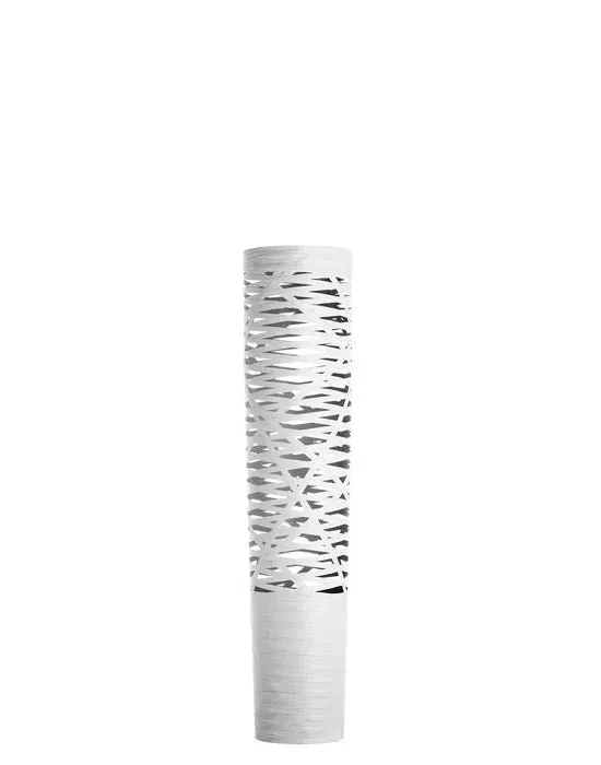 The floor light offers ambient glow and focused uplighting with its woven slim tunnel shape. Constructed from randomly woven fibreglass tapes and synthetic resin, the design provides both illumination and visual appeal. Its minimal base integrates into the overall structure for seamless support, while the halogen bulb delivers reliable lighting performance.