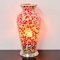 In a warm Bronze, this colour reminds us of roaring flames and looks especially stunning upon a wooden sideboard/console. This lamp gives off a wonderful glow when on and looks like a stylish ornament when off. FEATURES : Material : Mosaic Glass Finish : Bronze E14 bulb requi Bronze, 25w LED recommended Matching furniture available Available at an affordable price Most classy and unique piece of furniture Images shown are for illustration purpose only DIMENSIONS : Height : 20cm Diameter : 14cm