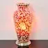 The Izar table lamp features a flower design mosaic glass construction with bronze finish that creates warmth and visual appeal. Its egg-shaped form provides ambient lighting when illuminated, while the mosaic glass material creates decorative appeal even when switched off. The lamp requires an E14 bulb with 25w LED recommended for optimal performance. H20 x D14 cm.