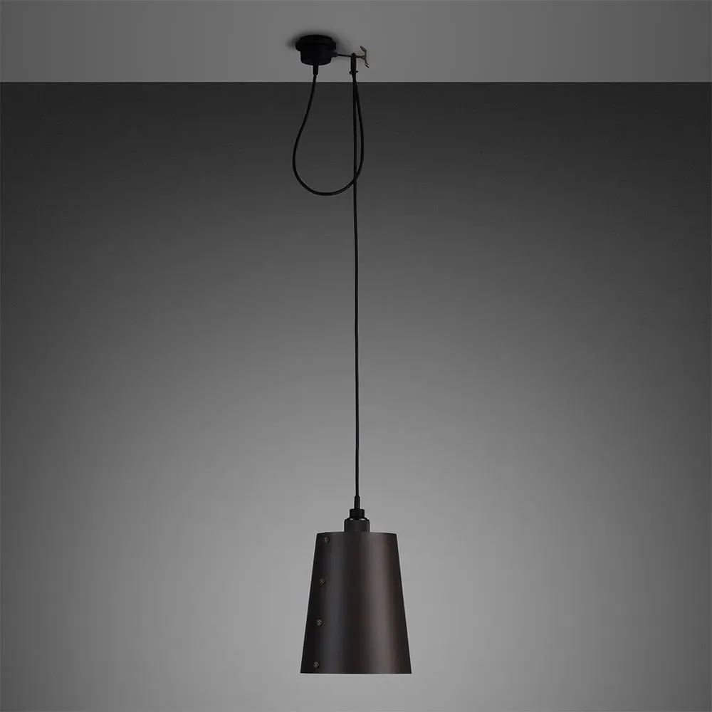 The Hooked 1.0 pendant light is a contemporary yet industrial single bulb pendant made from solid metal. Featuring Buster + Punch''s signature cross-knurl pattern, the light comes with an optional shade made from powder coated metal and finished with solid metal coin screws. A solid metal hook screws into the black rubber ceiling rose and allows you to manually adjust the drop length of the pendant. The hook can also conveniently be removed and reinstalled into your ceiling should you wish to move your pendant light. Well-suited for hanging over a bedside table or armchair, the Hooked 1.0 pendant light comes with variations for finish, shade, size and cable length, so it will truly be made for you. Please note the bulb is not included but can be purchased separately.