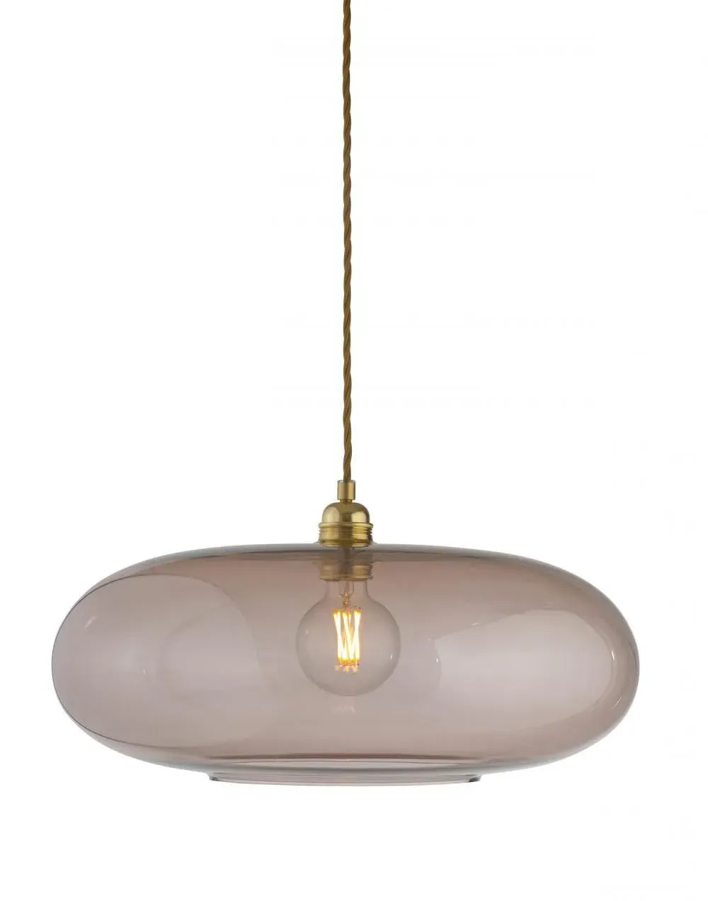 The Horizon Pendant is produced in mouth-blown glass, combined with metal fittings and a twisted fabric wire. It provides warmth and atmosphere in a range of colours and sizes to suit any room.