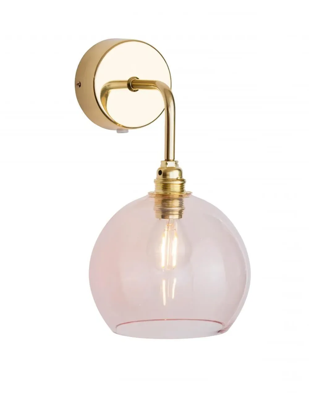 The Rowan Wall Light combines mouth-blown glass with metal fittings and twisted fabric wire. Its blue glass shade provides warm illumination, while the gold metal accents add sophisticated contrast. The simple construction offers durability with elegant appeal, and the wall-mounted design saves space while delivering focused lighting.