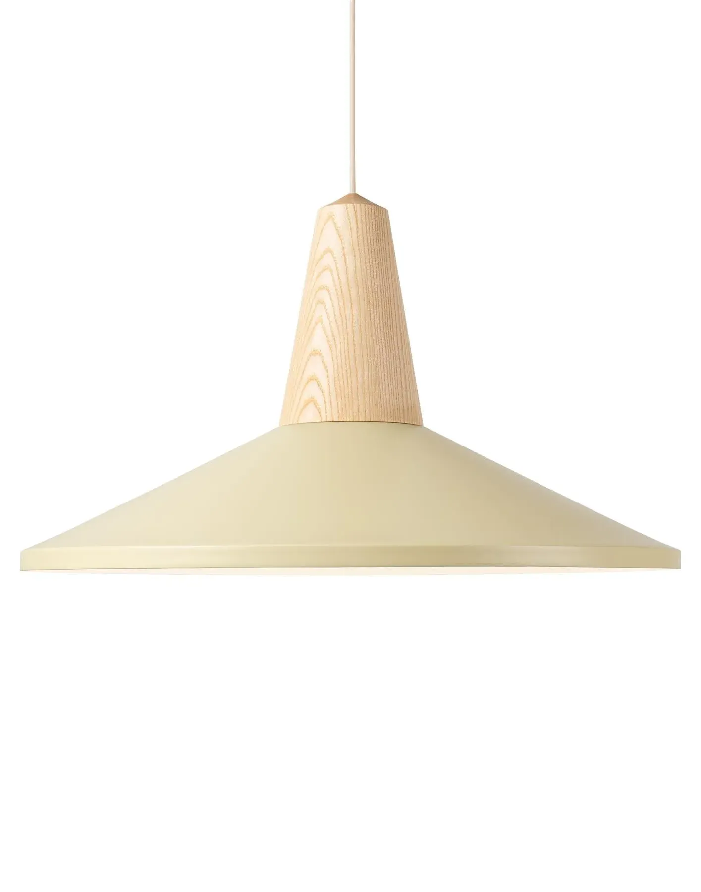 The pendant light combines FSC-certified ash wood construction with a magnetically attached metal shade for versatile lighting solutions. Its turned wooden head provides natural appeal, while the magnetic attachment system allows for effortless shade changes. The modular components offer flexibility in design choices, and the sustainable wood materials add environmental responsibility.