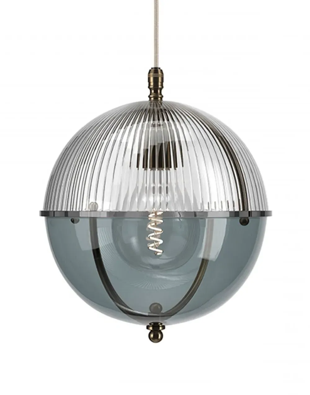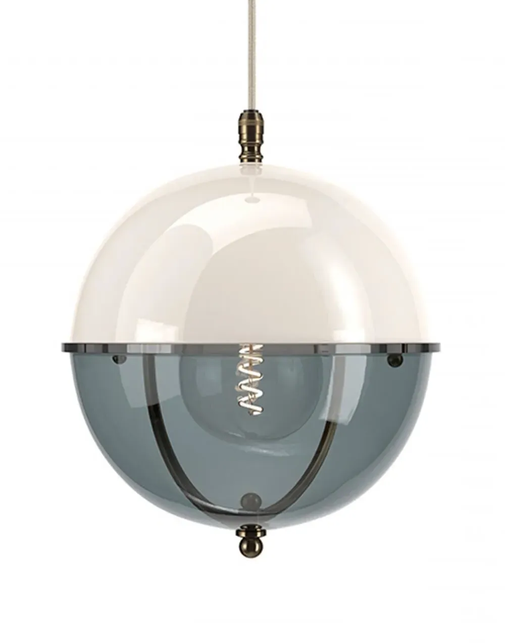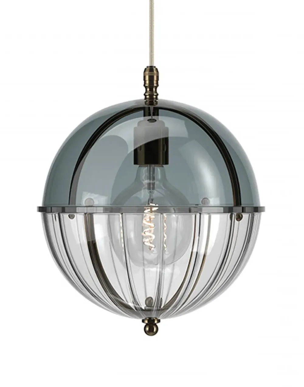 A striking new addition to the Fritz Fryer collection, the Grafton Globe pendant light was designed to emulate old Orrery models that showed how planets moved around the sun as time passed. Truly one-of-a-kind, this pendant looks as good on the inside as it does on the outside. Available to be personalised to your taste, the light comes with four types of metal fittings and five different top/bottom glass finishes. A unique choice for any traditional, modern or contemporary interior, the Grafton Globe pendant light will make a statement in any room. The Polished brass finish is lacquered. The other three options have a waxed finish. Please note: The pendant comes with a 1m black flex as standard. Please email customerservice@hollowaysofludlow.com for any coloured flex requests.