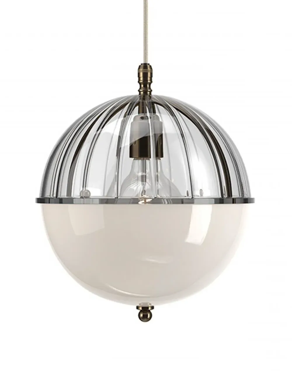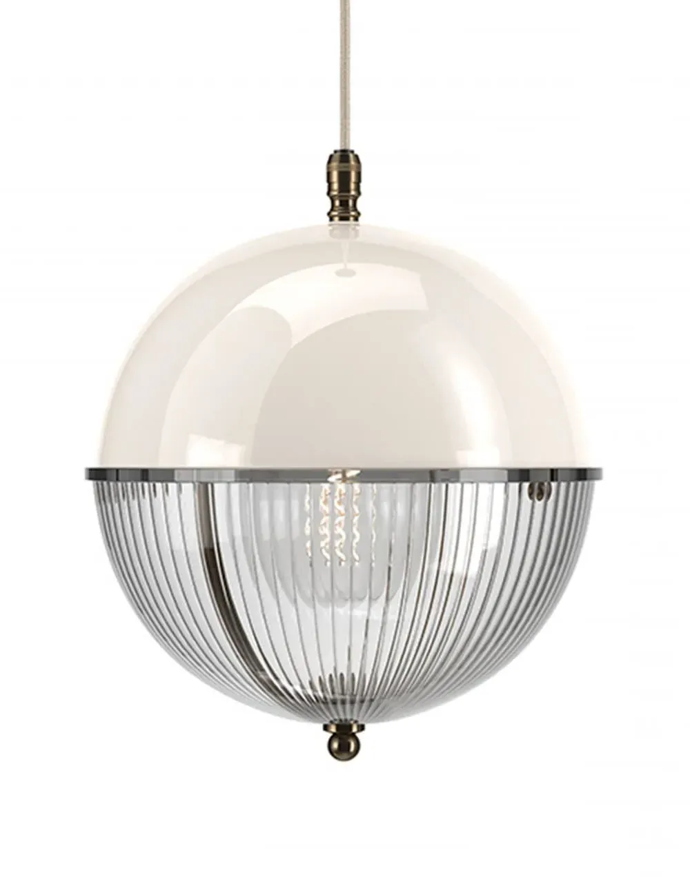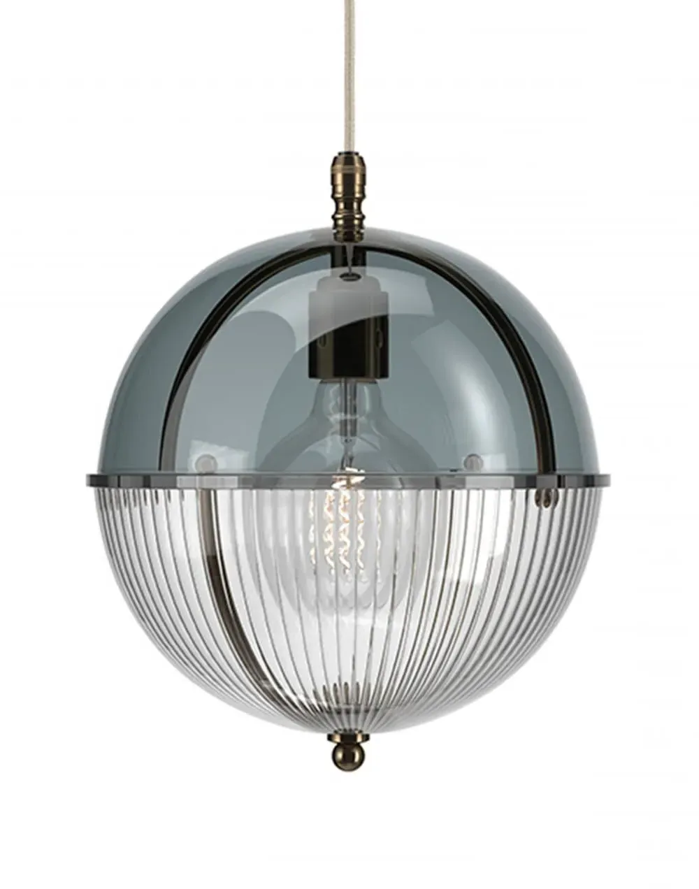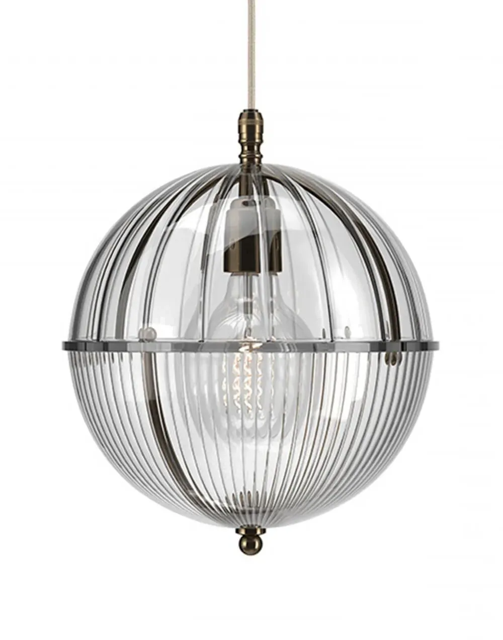 A striking new addition to the Fritz Fryer collection, the Grafton Globe pendant light was designed to emulate old Orrery models that showed how planets moved around the sun as time passed. Truly one-of-a-kind, this pendant looks as good on the inside as it does on the outside. Available to be personalised to your taste, the light comes with four types of metal fittings and five different top/bottom glass finishes. A unique choice for any traditional, modern or contemporary interior, the Grafton Globe pendant light will make a statement in any room. The Polished brass finish is lacquered. The other three options have a waxed finish. Please note: The pendant comes with a 1m black flex as standard. Please email customerservice@hollowaysofludlow.com for any coloured flex requests.
