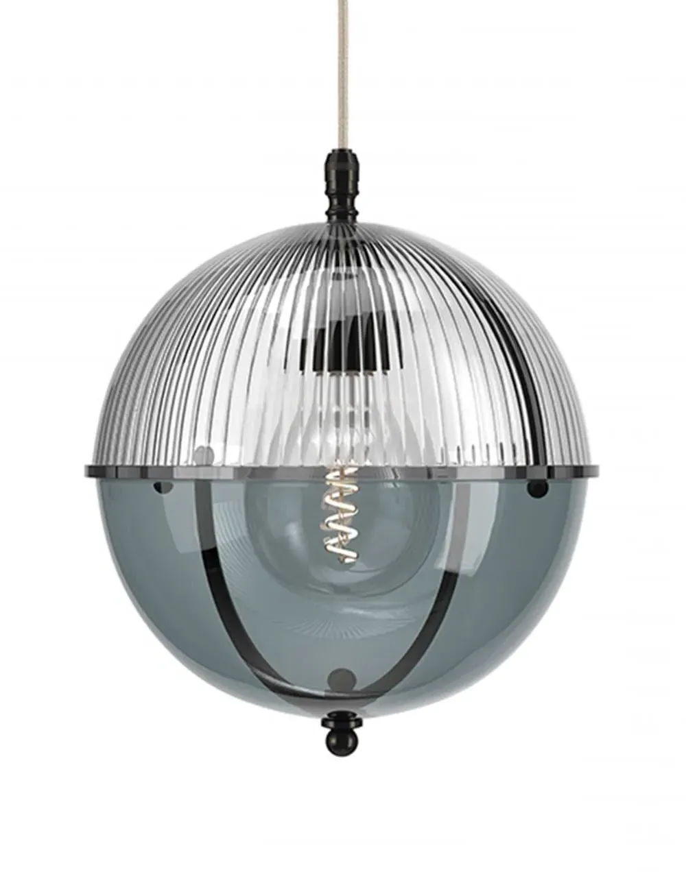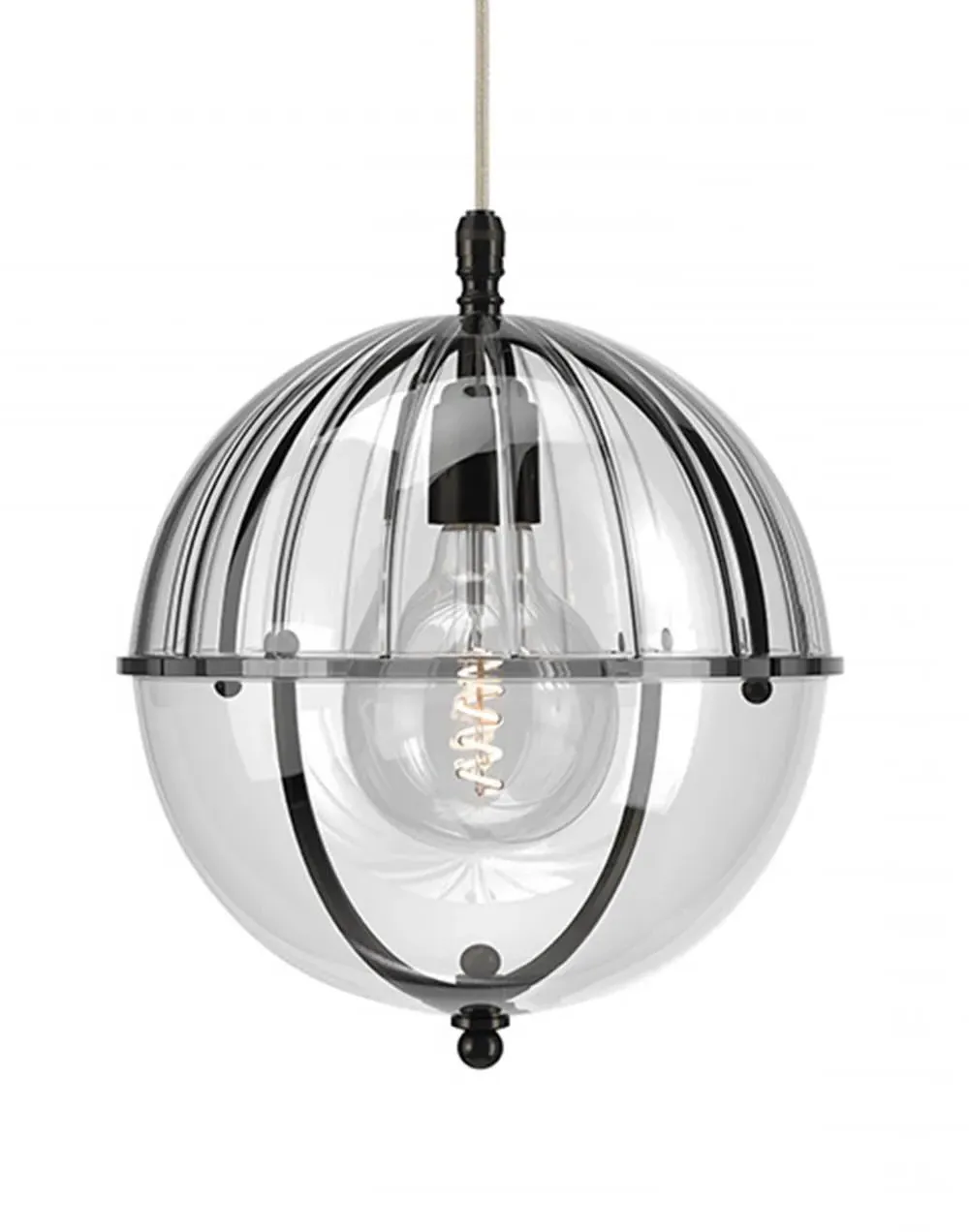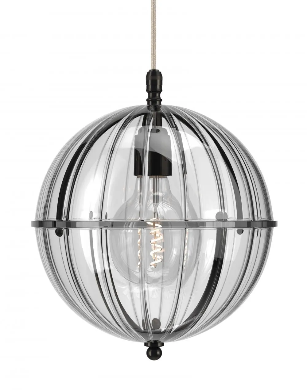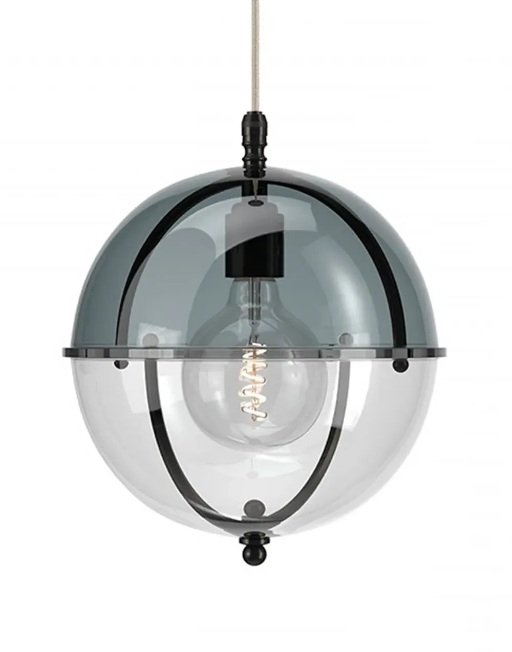 A striking new addition to the Fritz Fryer collection, the Grafton Globe pendant light was designed to emulate old Orrery models that showed how planets moved around the sun as time passed. Truly one-of-a-kind, this pendant looks as good on the inside as it does on the outside. Available to be personalised to your taste, the light comes with four types of metal fittings and five different top/bottom glass finishes. A unique choice for any traditional, modern or contemporary interior, the Grafton Globe pendant light will make a statement in any room. The Polished brass finish is lacquered. The other three options have a waxed finish. Please note: The pendant comes with a 1m black flex as standard. Please email customerservice@hollowaysofludlow.com for any coloured flex requests.