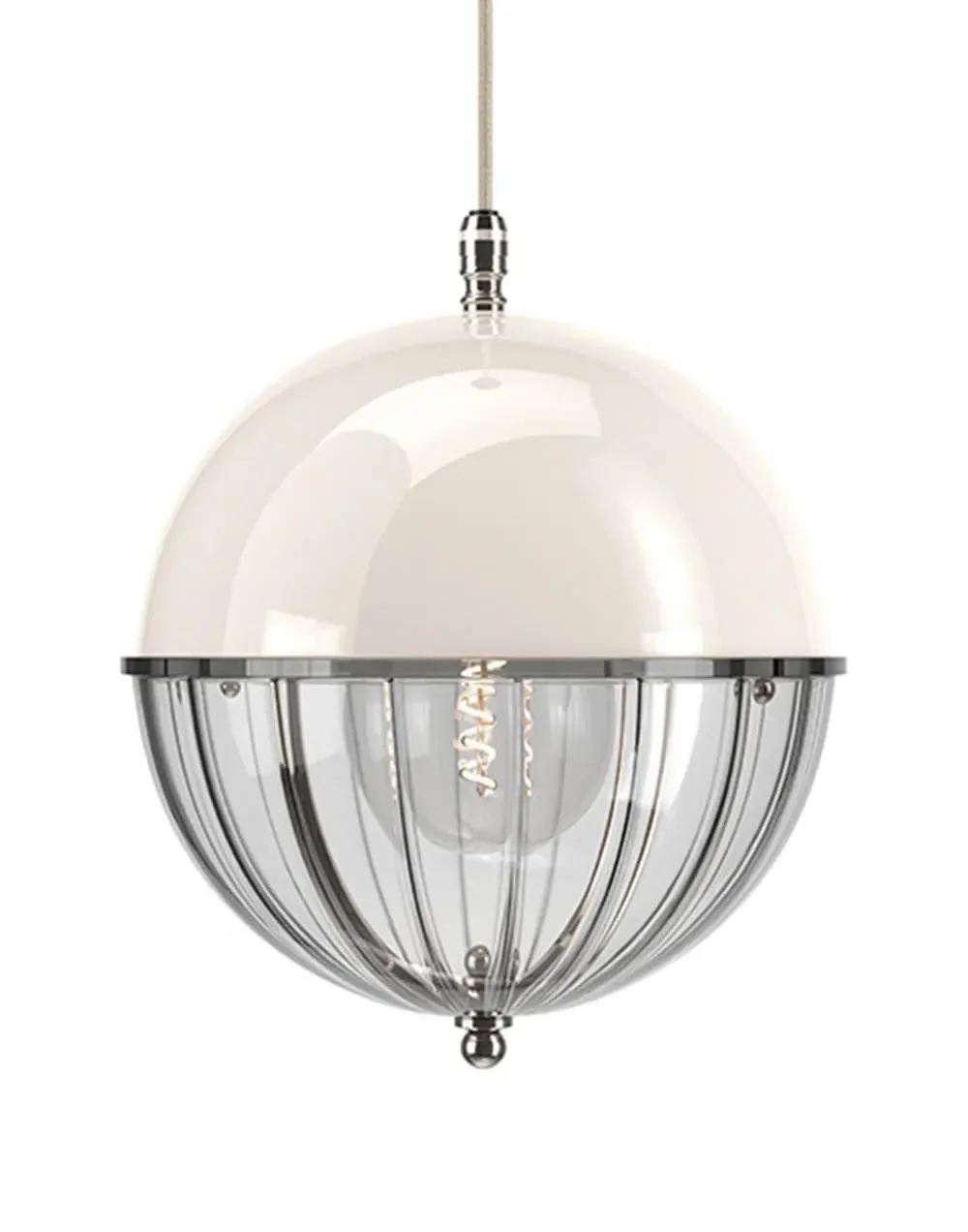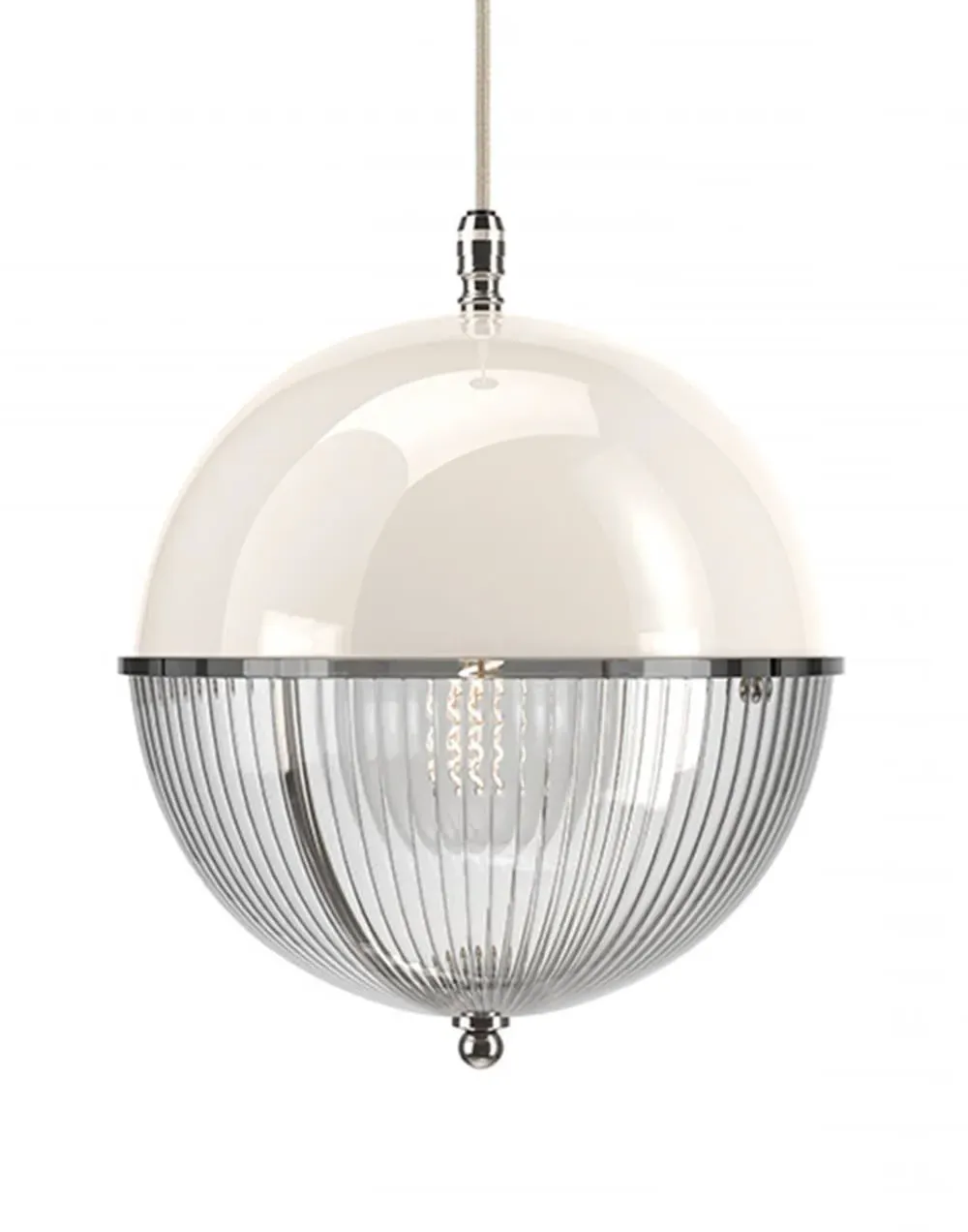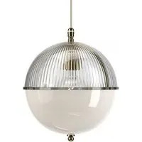A striking new addition to the Fritz Fryer collection, the Grafton Globe pendant light was designed to emulate old Orrery models that showed how planets moved around the sun as time passed. Truly one-of-a-kind, this pendant looks as good on the inside as it does on the outside. Available to be personalised to your taste, the light comes with four types of metal fittings and five different top/bottom glass finishes. A unique choice for any traditional, modern or contemporary interior, the Grafton Globe pendant light will make a statement in any room. The Polished brass finish is lacquered. The other three options have a waxed finish. Please note: The pendant comes with a 1m black flex as standard. Please email customerservice@hollowaysofludlow.com for any coloured flex requests.