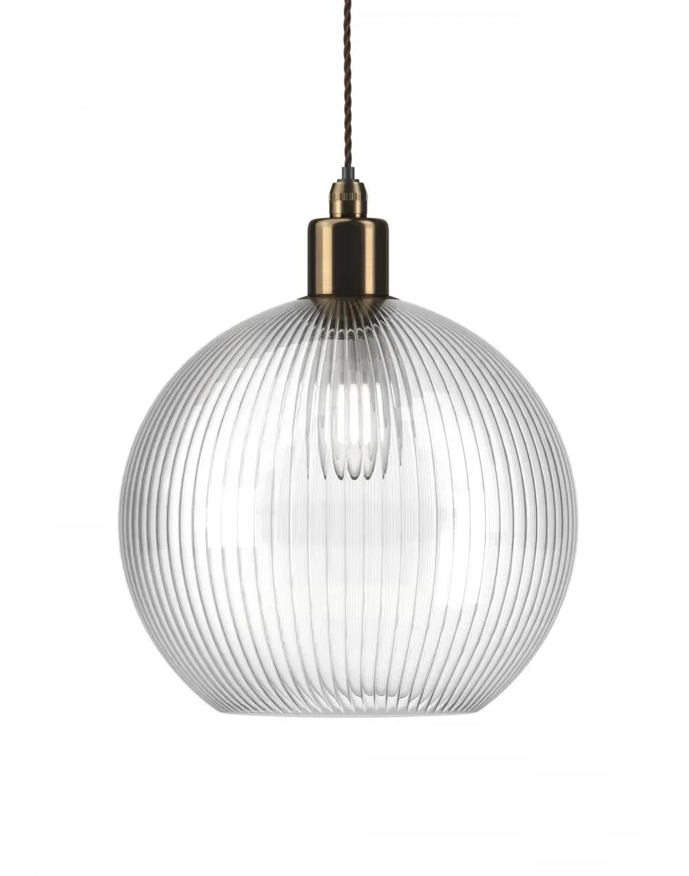 The most popular and adaptable shade in the Fritz Fryer collection, the Hereford Bathroom pendant light has the original simple yet eye-catching design, but with the addition of an IP44 rating. Hand blown right here in the UK, it is well-suited to residential and hospitality projects. The Hereford can be placed over a kitchen island, a bar area, or in a bathroom, and looks particularly striking when hung in a cluster. Available in two sizes and four metal finishes, this pendant also comes with a choice between four types of glass: clear, smoked, ribbed or skinny ribbed. The stylistic versatility between each option allows this pendant to suit an impressive range of interior styles and dimensions. Please note: The pendant comes with a 1m black flex as standard. Please email customerservice@hollowaysofludlow.com for any coloured flex requests.