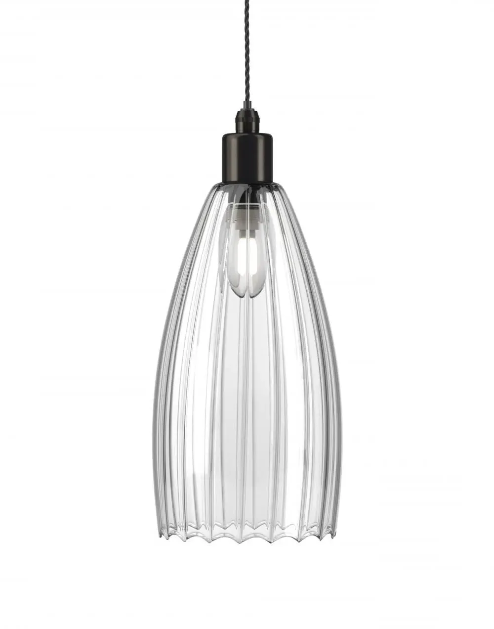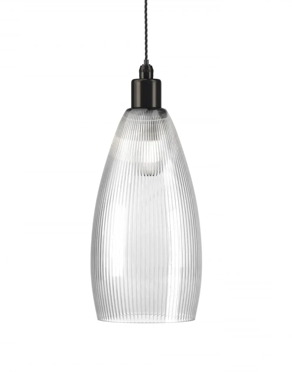 The bathroom pendant light offers IP44-rated protection with its elegant bronze finish and clear glass shade. Its lacquered metalwork provides durability, while the soft lines create a warm, welcoming glow. The fixture features a 1m black flex as standard and suits both traditional and contemporary interiors.