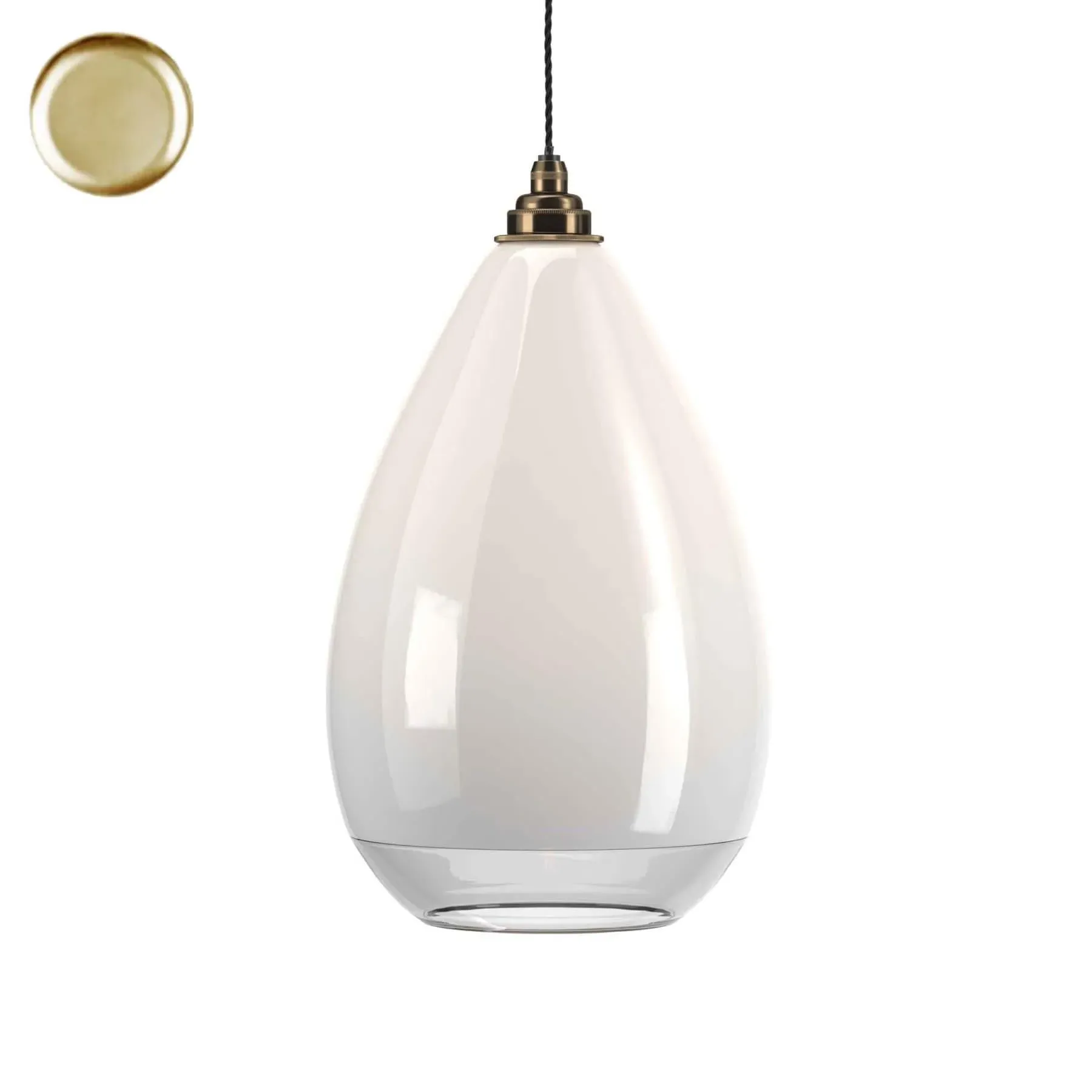 Designed to add a warm glow to any bathroom, the IP44-rated Wellington Bathroom pendant light by Fritz Fryer features a stylish, tear drop design. Offering a touch of elegance, this pendant is as suitable for a traditional bathroom as it is for a contemporary one. Available in four metal finishes and three types of glass, this pendant allows you to choose a style that best fits your space. The Polished brass finish is lacquered. The other three options have a waxed finish. Please note: The pendant comes with a 1m black flex as standard. Please email customerservice@hollowaysofludlow.com for any coloured flex requests.