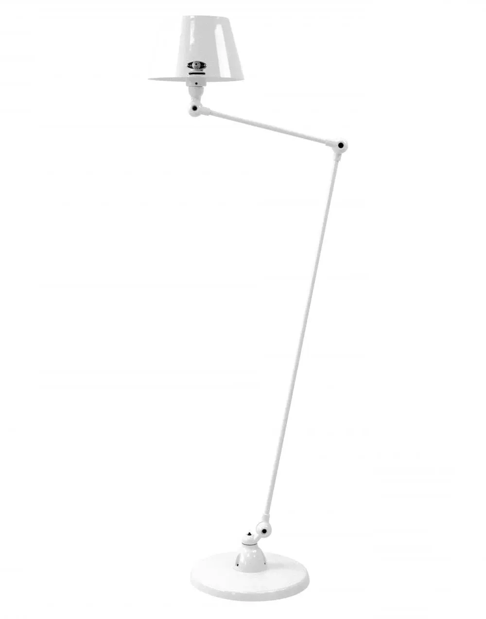 The Jielde Alcler two arm floor light - straight shade has a circular base that offers ample support to this tall design. Constructed from cast metal into a smooth and elegant look, this design was built to look good and last. With three connectors incorporated into the design you have the freedom to adjust and personalize this light to your space. The Jielde Alcler two arm floor light - straight shade is ideal for both modern and minimal aesthetics. It is a stunning addition to any living room, hallway, or even bedroom. Available in multiple finishes. Two paint finishes available.