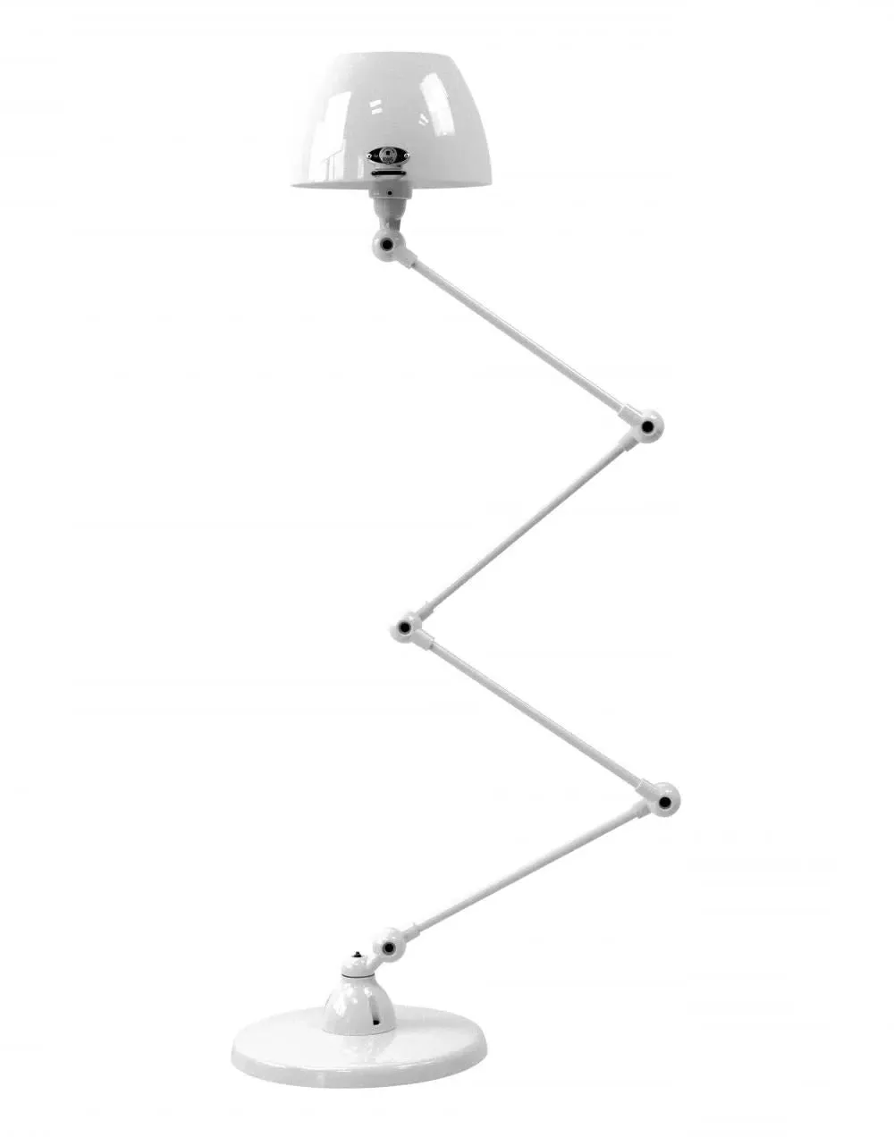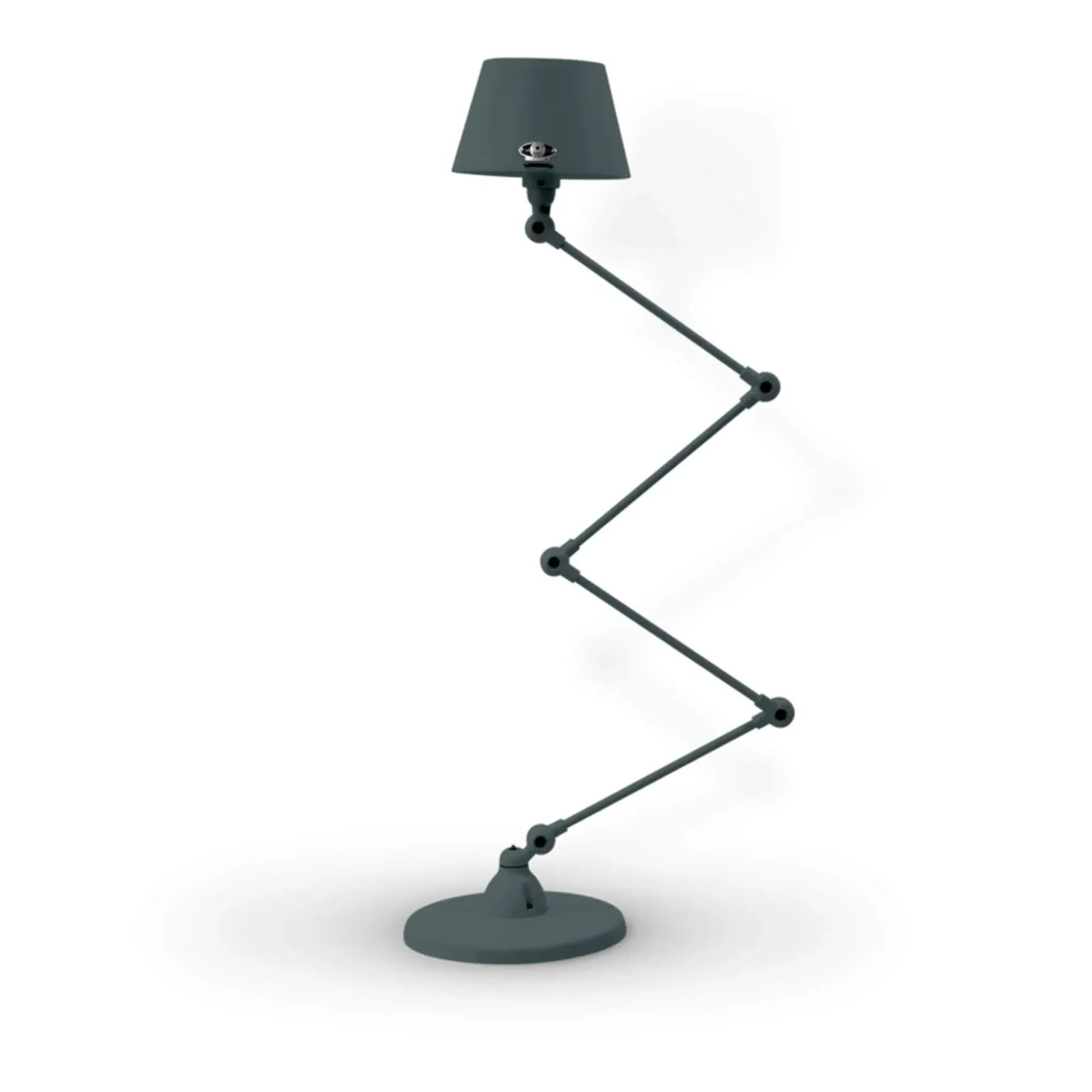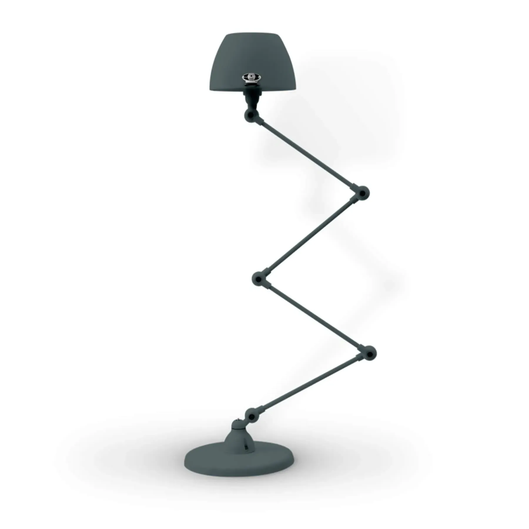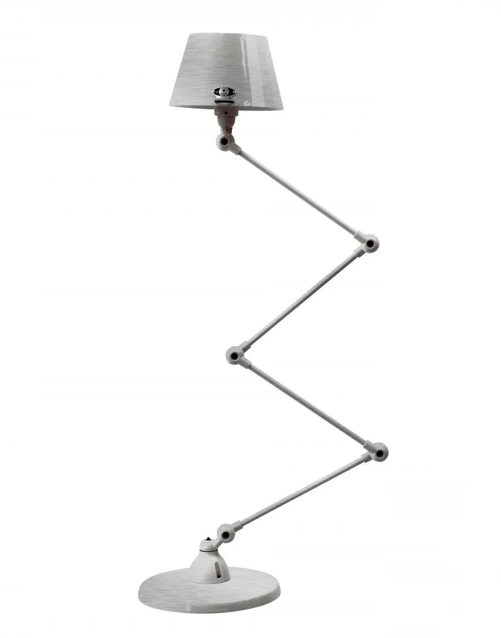 The Jielde Aicler zigzag 4 arm desk or floor light - curved shade features five circular connectors that allow it to be adjusted to best fit your interior. Its main body is made up of cast metal poles, offering a minimal and refined character to this design. This design creates a clean cut and edged look that will contrast with your space as well as complement it. With a circular base this design is well supported and weighted. The Jielde Aicler zigzag 4 arm desk or floor light - curved shade is perfect for both a modern or minimal aesthetic. You can have it in your bedroom, living room, hallway. Available in multiple finishes. Two paint finishes available.