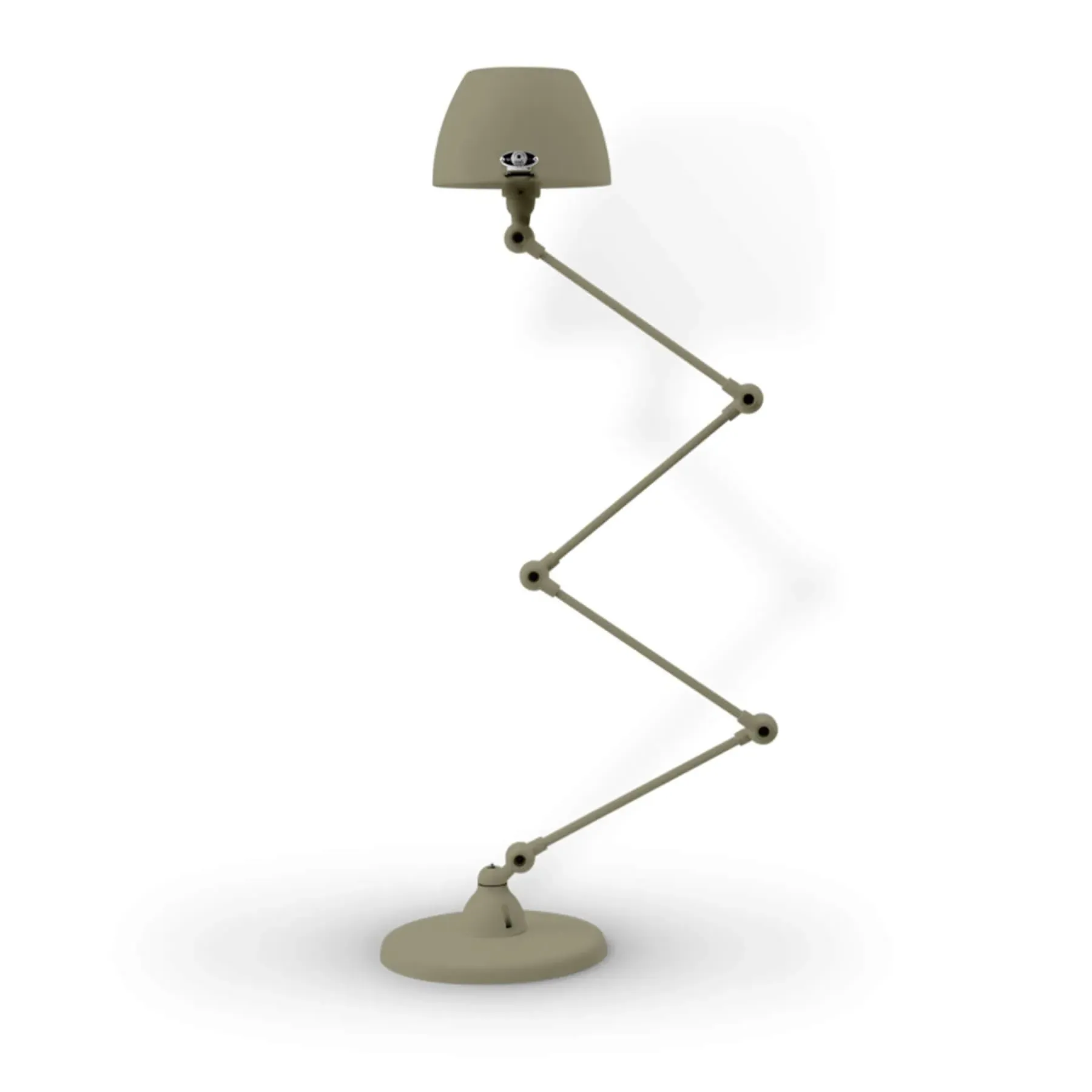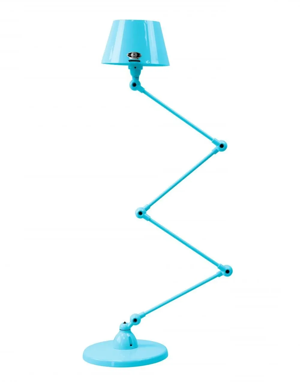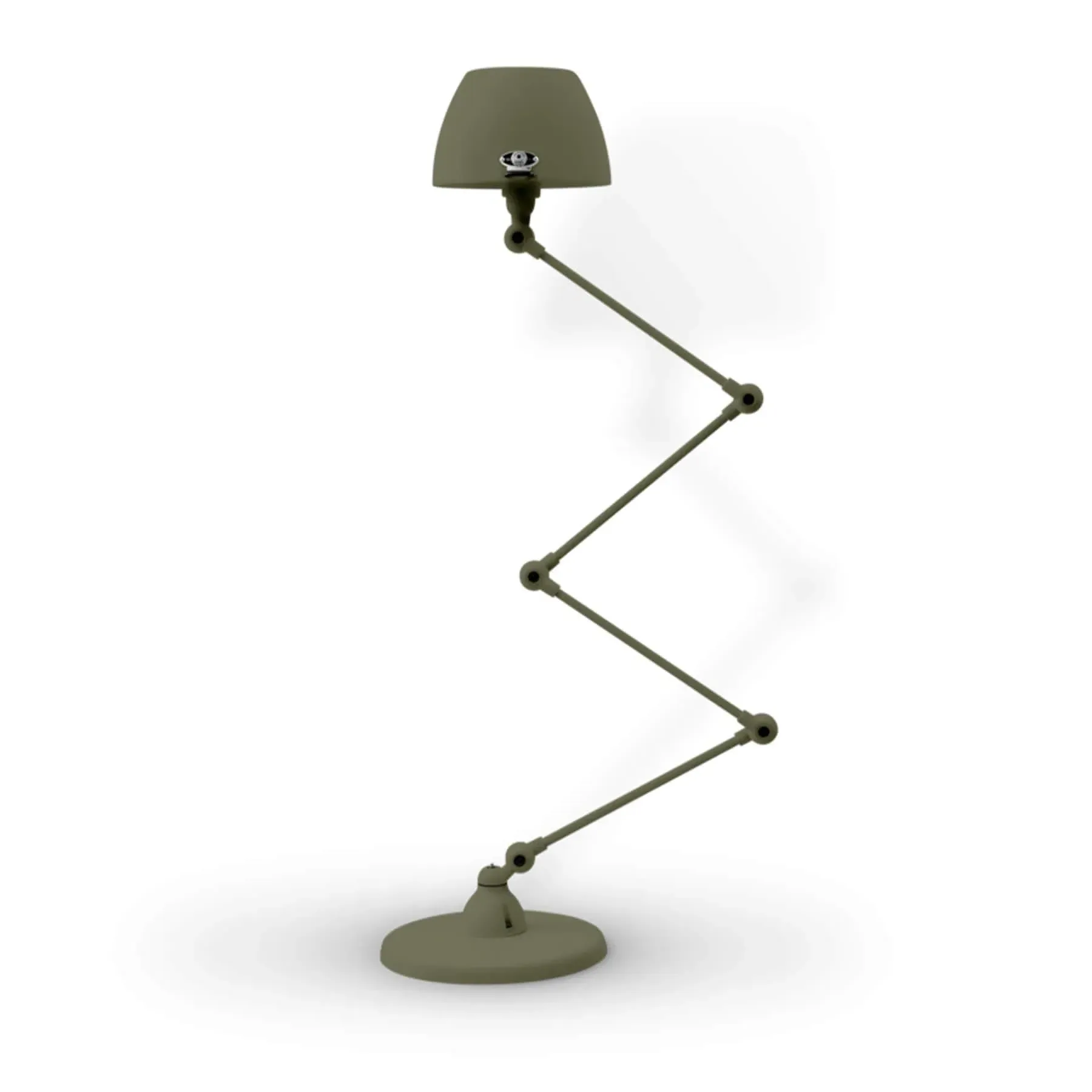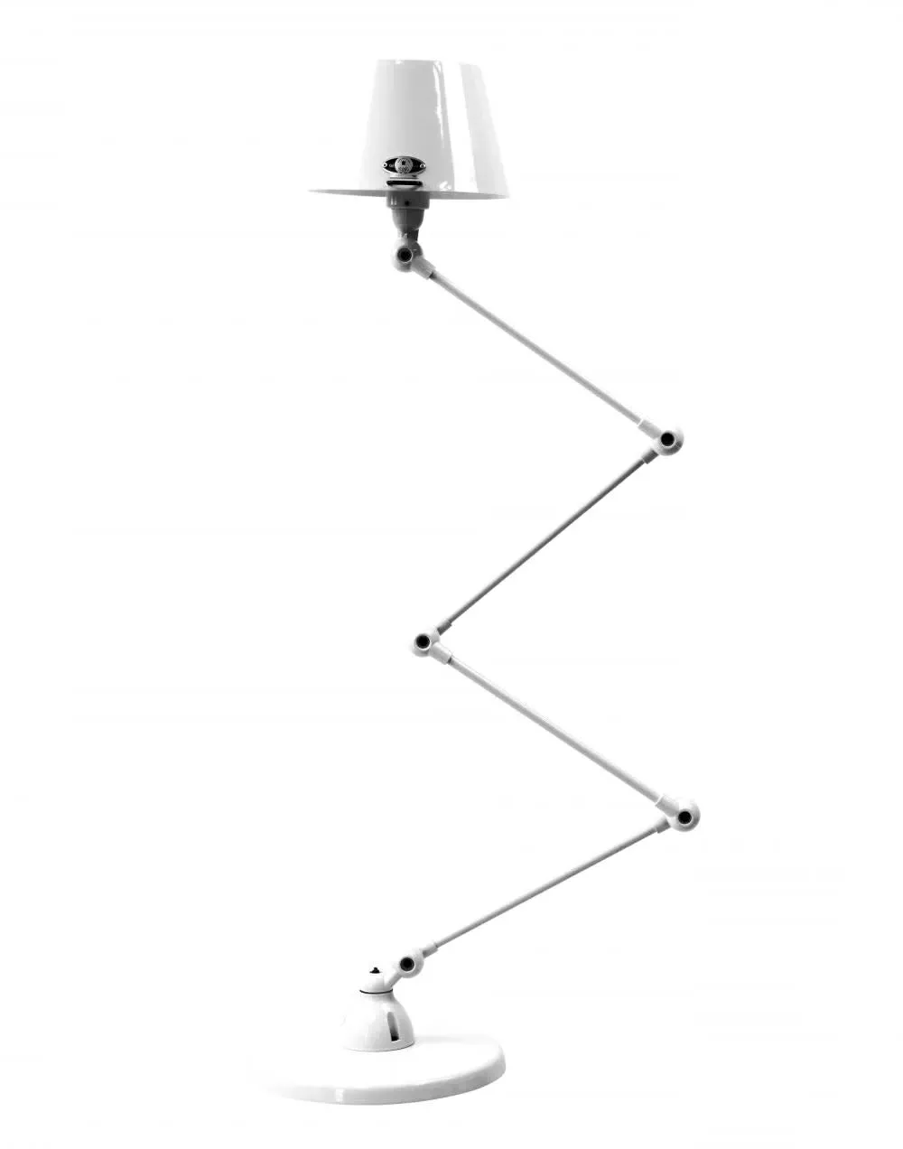 The Jielde Aicler zigzag 4 arm desk or floor light - curved shade features five circular connectors that allow it to be adjusted to best fit your interior. Its main body is made up of cast metal poles, offering a minimal and refined character to this design. This design creates a clean cut and edged look that will contrast with your space as well as complement it. With a circular base this design is well supported and weighted. The Jielde Aicler zigzag 4 arm desk or floor light - curved shade is perfect for both a modern or minimal aesthetic. You can have it in your bedroom, living room, hallway. Available in multiple finishes. Two paint finishes available.