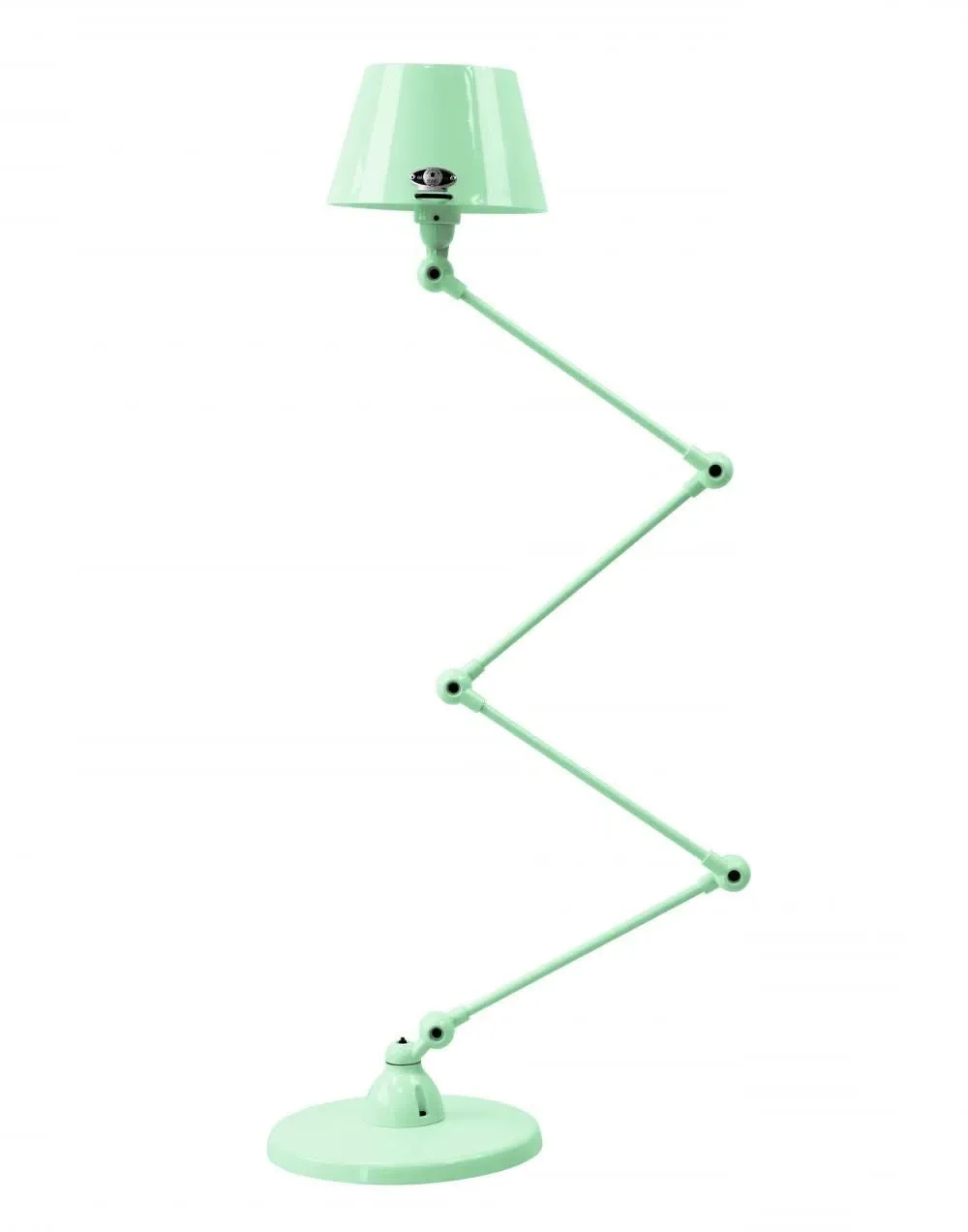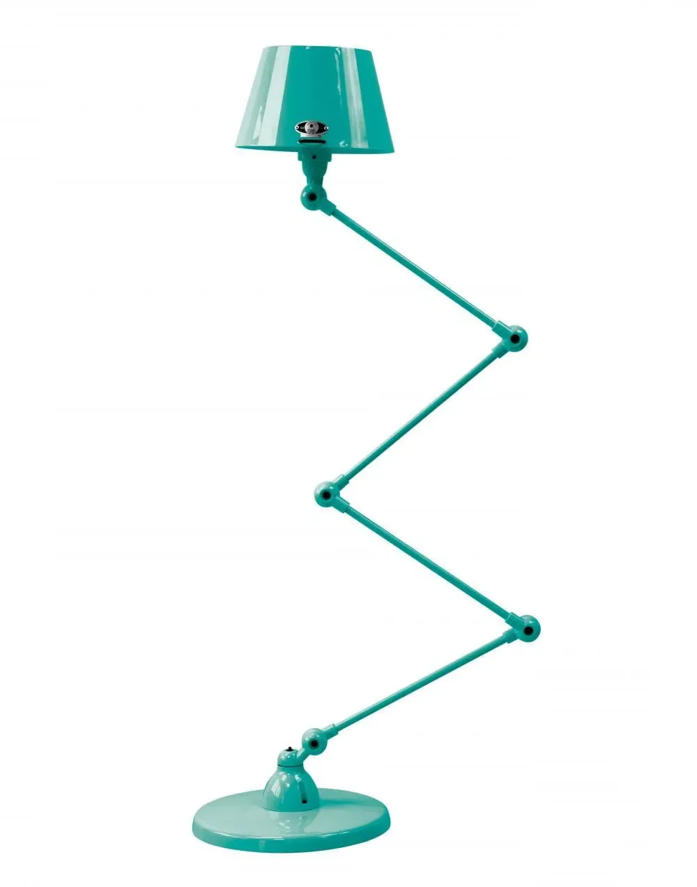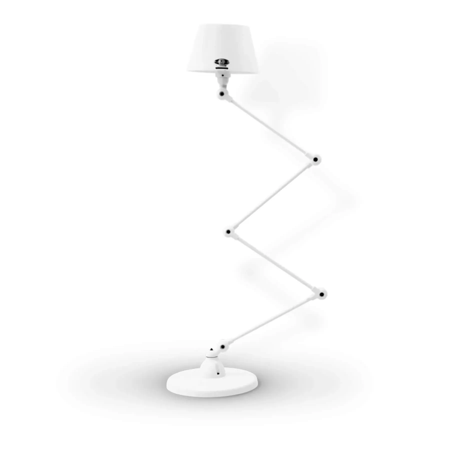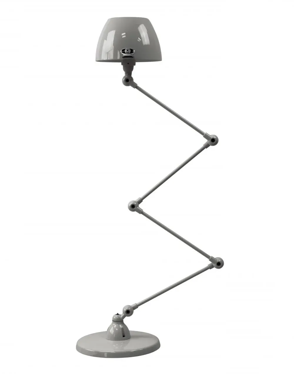 The Jielde Aicler zigzag 4 arm desk or floor light - curved shade features five circular connectors that allow it to be adjusted to best fit your interior. Its main body is made up of cast metal poles, offering a minimal and refined character to this design. This design creates a clean cut and edged look that will contrast with your space as well as complement it. With a circular base this design is well supported and weighted. The Jielde Aicler zigzag 4 arm desk or floor light - curved shade is perfect for both a modern or minimal aesthetic. You can have it in your bedroom, living room, hallway. Available in multiple finishes. Two paint finishes available.