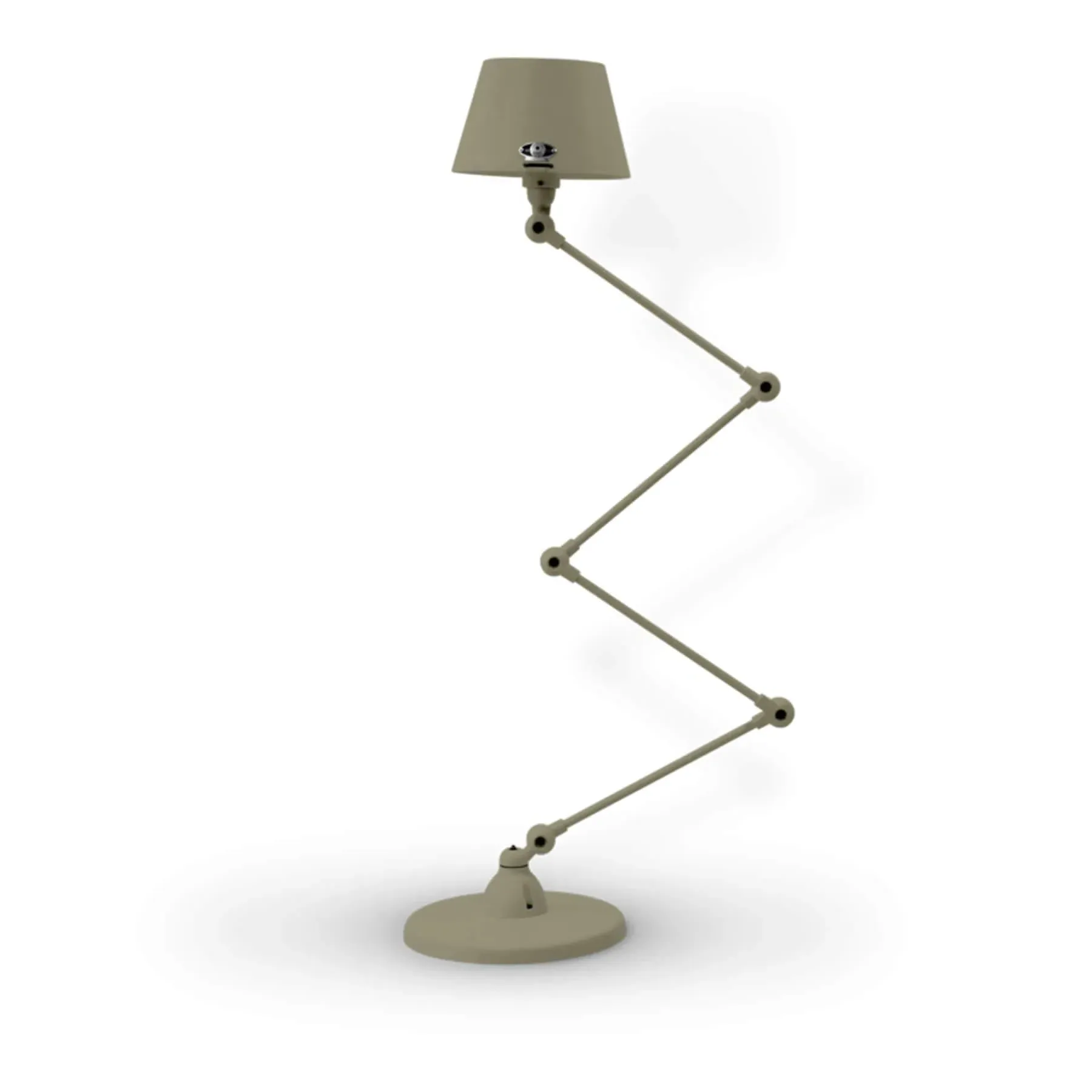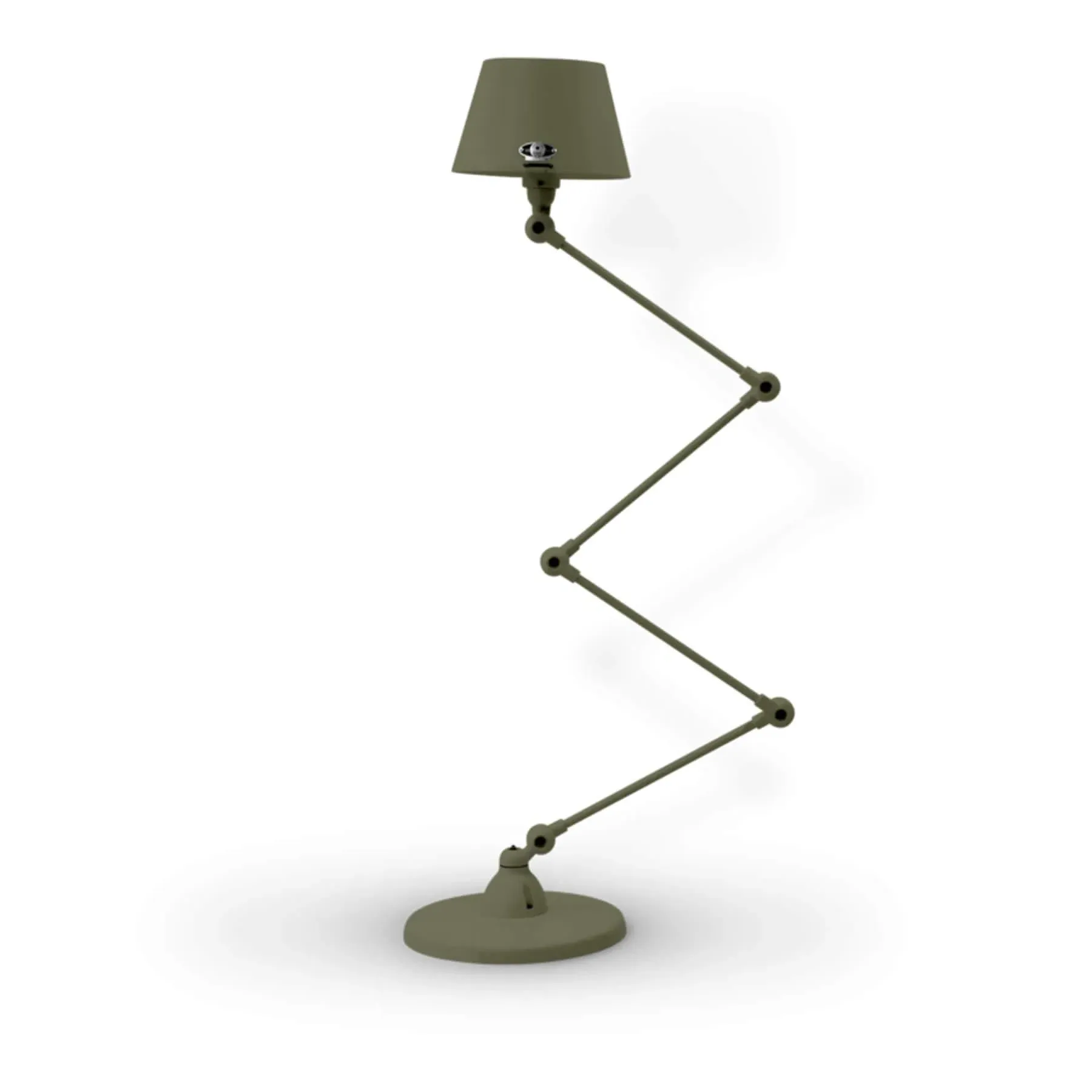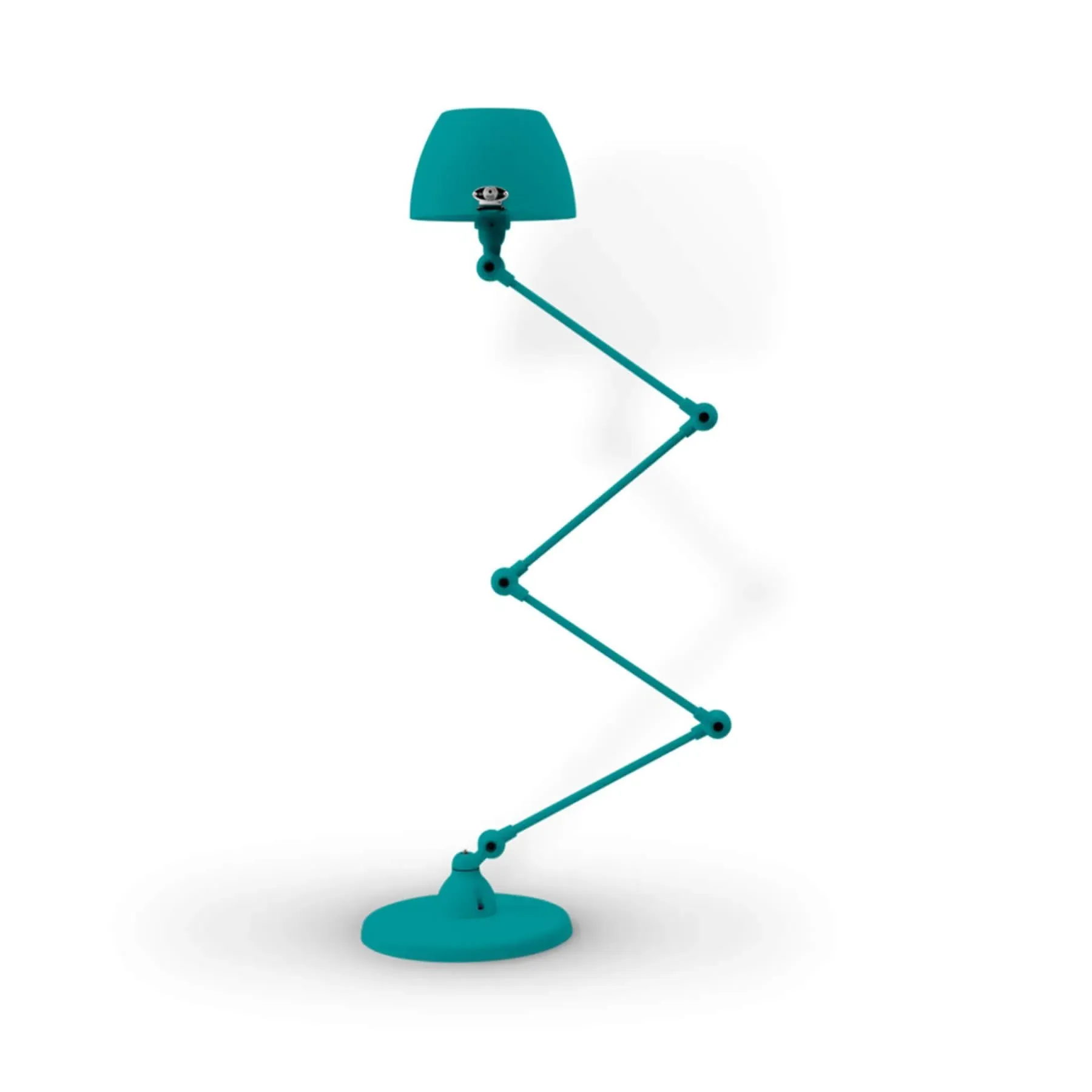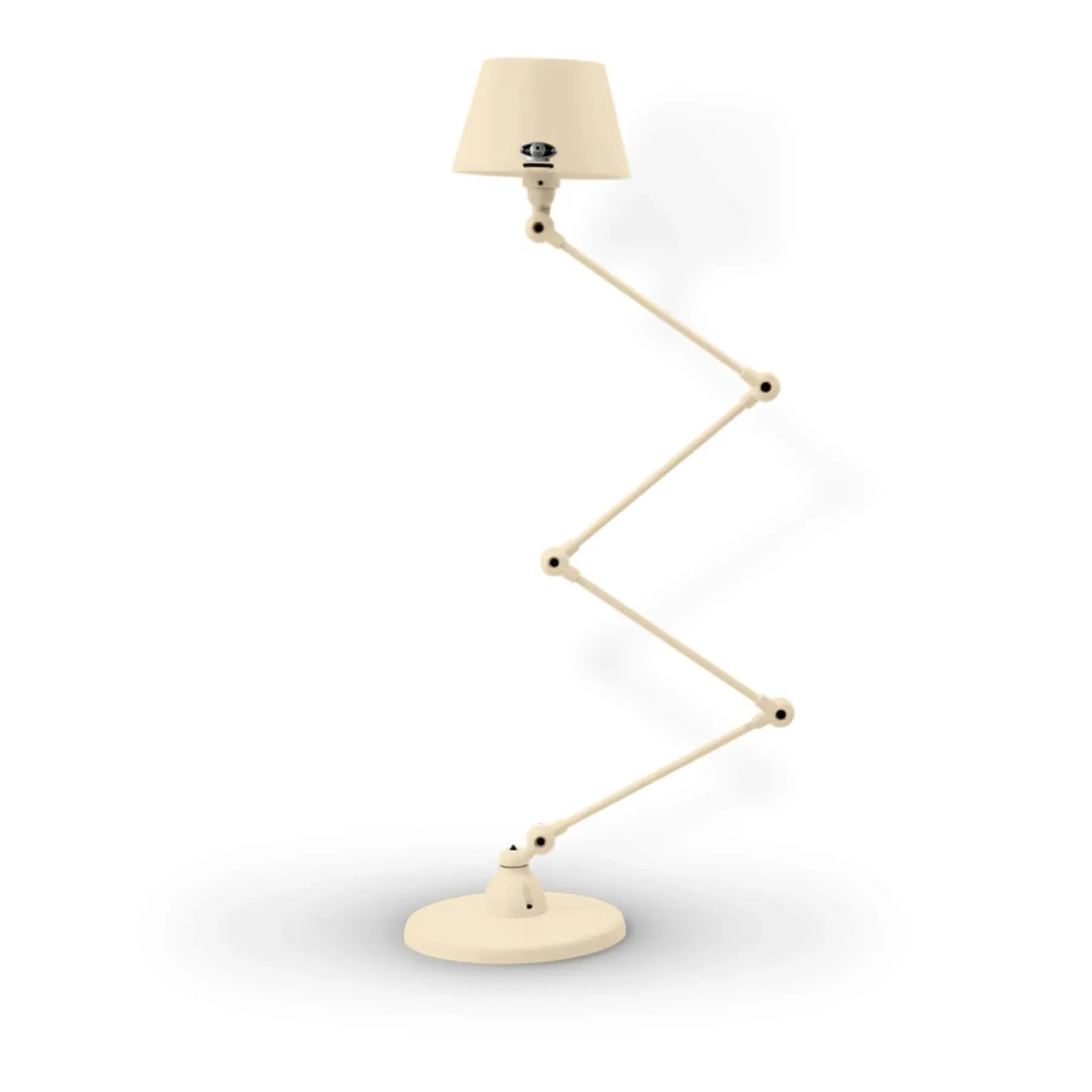 The Jielde Aicler zigzag 4 arm desk or floor light - curved shade features five circular connectors that allow it to be adjusted to best fit your interior. Its main body is made up of cast metal poles, offering a minimal and refined character to this design. This design creates a clean cut and edged look that will contrast with your space as well as complement it. With a circular base this design is well supported and weighted. The Jielde Aicler zigzag 4 arm desk or floor light - curved shade is perfect for both a modern or minimal aesthetic. You can have it in your bedroom, living room, hallway. Available in multiple finishes. Two paint finishes available.