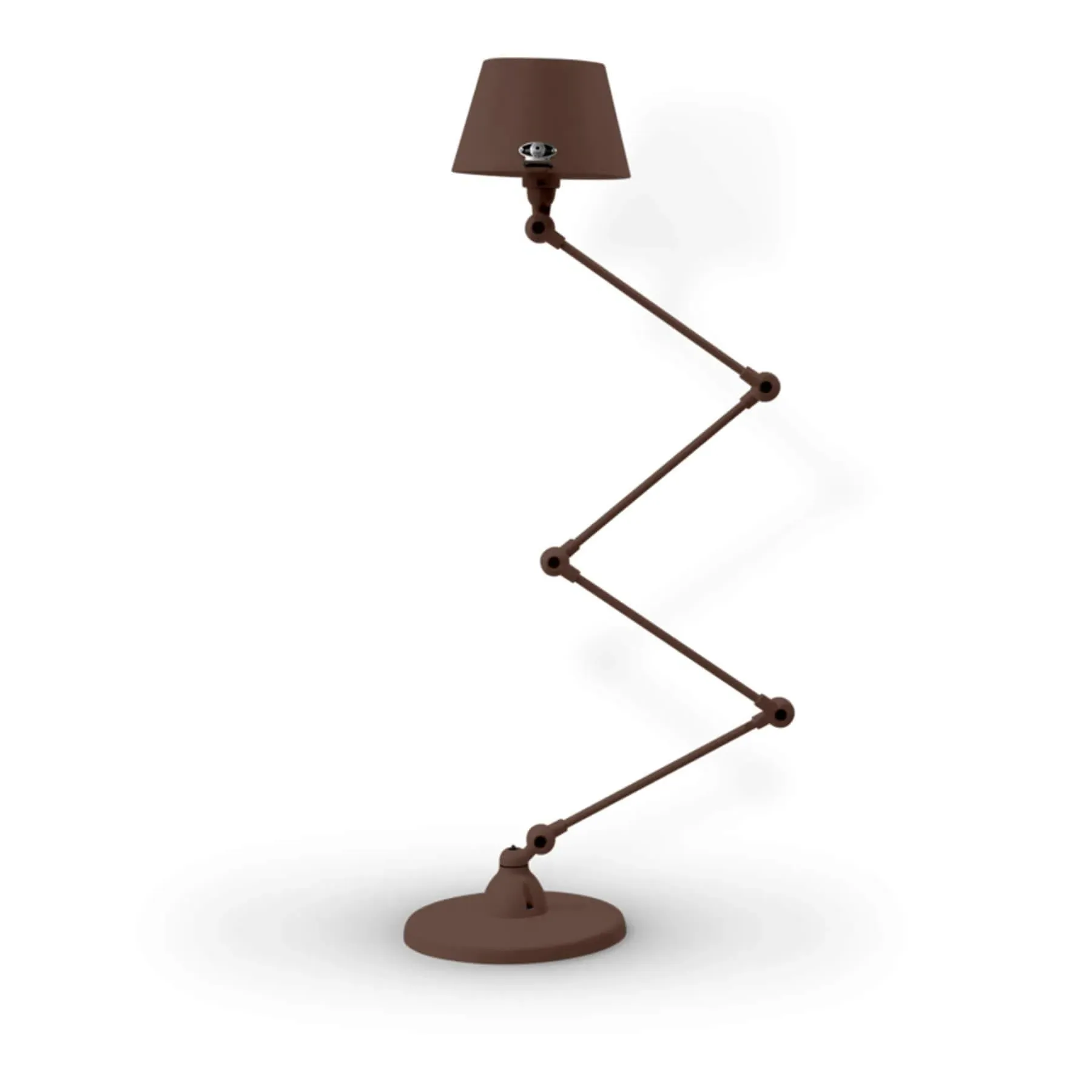 The zigzag lamp features five circular connectors that allow full adjustment to suit your space. Its cast metal poles provide a minimal and refined character, while the curved shade creates clean lines. The circular base offers stable support and proper weighting, and the adjustable arms adapt to various lighting needs.