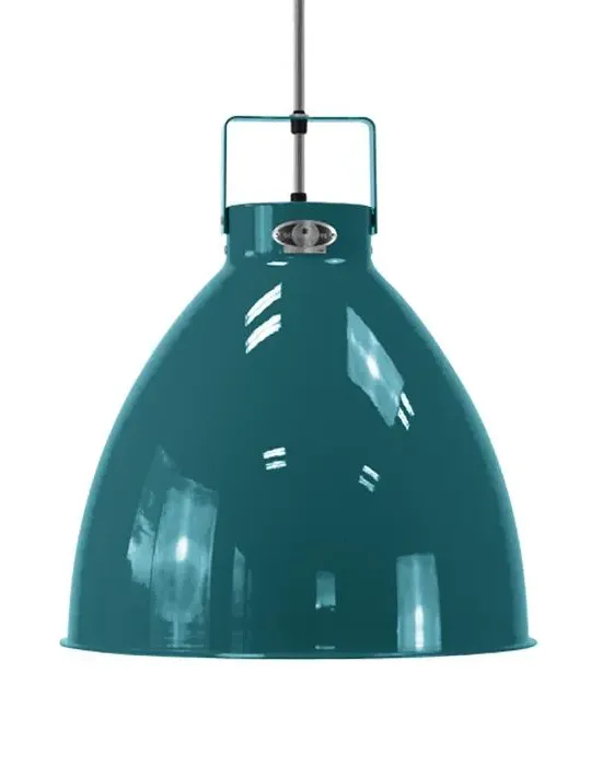 The Large Jielde Augustin pendant light features a simple circular mount that offers ample support to the suspension of this design and its flex. Originally designed in 1950 for a workshop setting, this piece has inspired aspects of industrial style design. Crafted from aluminium, its sturdy shade creates a downcast effect for the comfortable illumination emitted. And this can be changed using a dimmer for a softer glow. Made with practicality in mind it has adjustable elements which allow you to aim and personalise this light to your space. The Large Jielde Augustin pendant light lends itself to many aesthetics including modern, industrial, and retro. IP20 rated you can install this light in your living room, hallway, or even above your workbench. This design is used in catering, hospitality and residential settings. Available in multiple finishes, in either matt or gloss. Interior available in two finishes.