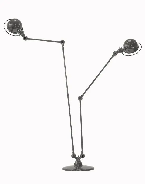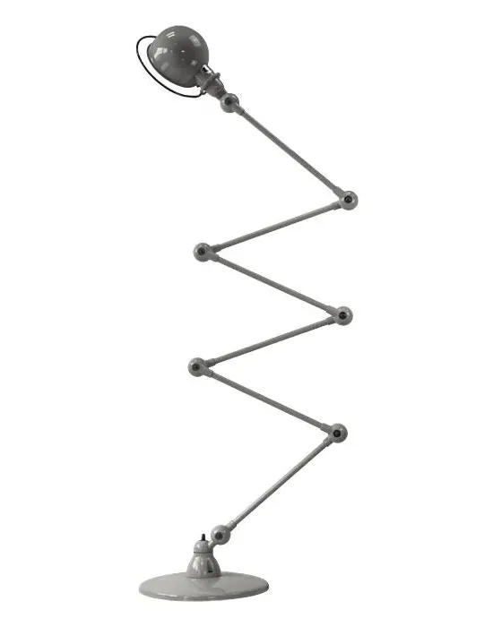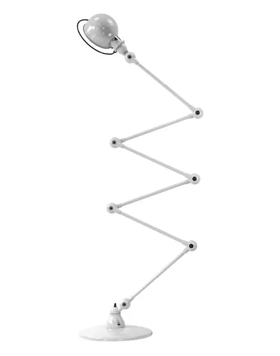 The floor lamp combines industrial heritage with modern functionality through its six articulated arms and aluminium construction. Seven ball connectors provide full adjustability, while the handle around each light head offers practical positioning control. Its sturdy steel base ensures stability, and the IP20 rating delivers reliable low-maintenance operation. The gloss finish adds durability to the metal framework.