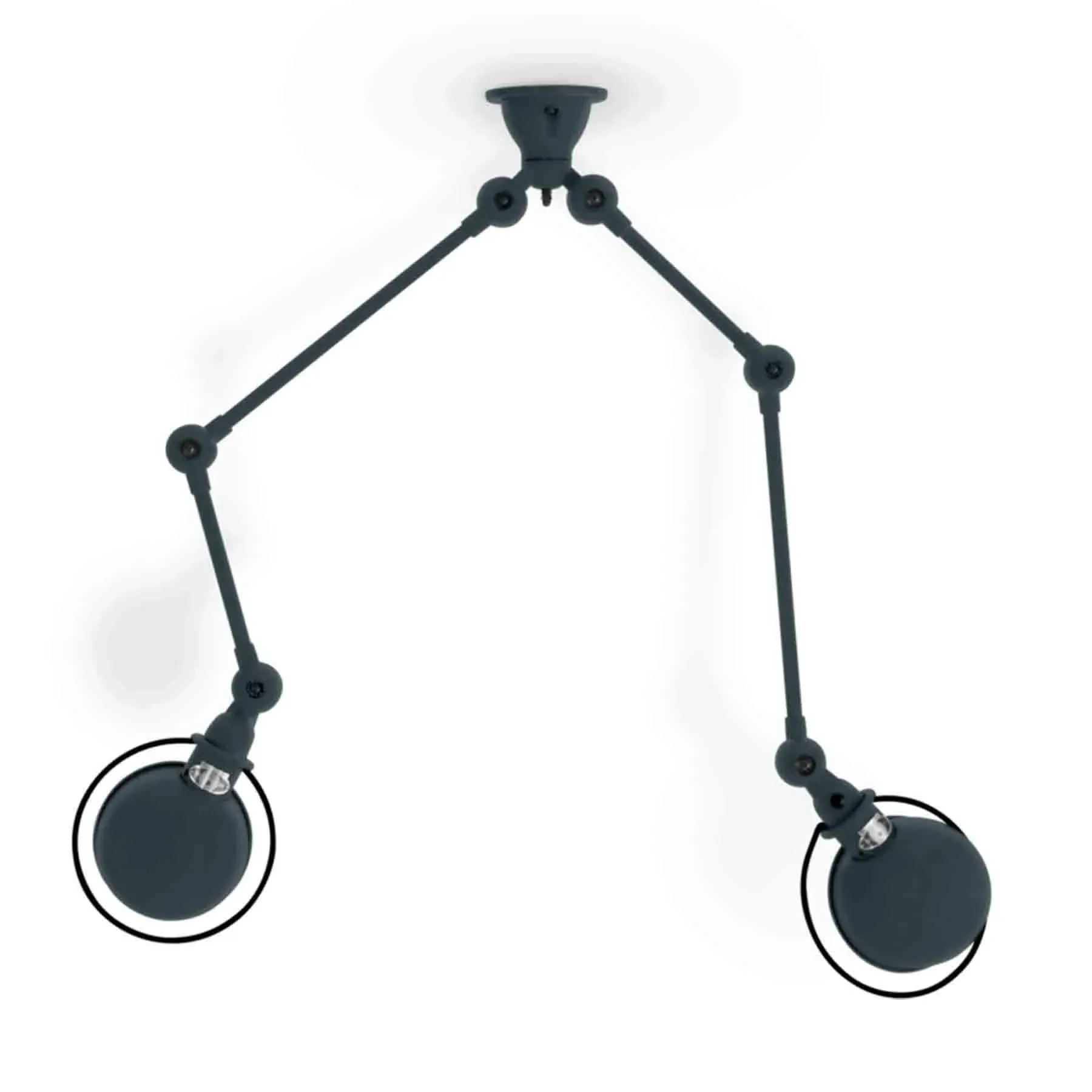 The Jielde Loft twin ceiling light features six ball connectors for optimal adaptability to any space. This two headed light has two light heads with separate and adjustable arms, giving you the freedom to direct two light sources wherever you prefer. With a minimal mount, and handle around the lights head, this design was made with style for a practical lighting experience. Designed in France, in the 1950’s, this light was inspired by industrial style designs and intended to be used as a workshop light. Rated an IP20 you can install this in your hallway, workshop, kitchen, or living room. The Jielde Loft twin ceiling light suits many aesthetics such as modern, industrial, contemporary, and eclectic. Available in multiple finishes, in either matt or gloss.