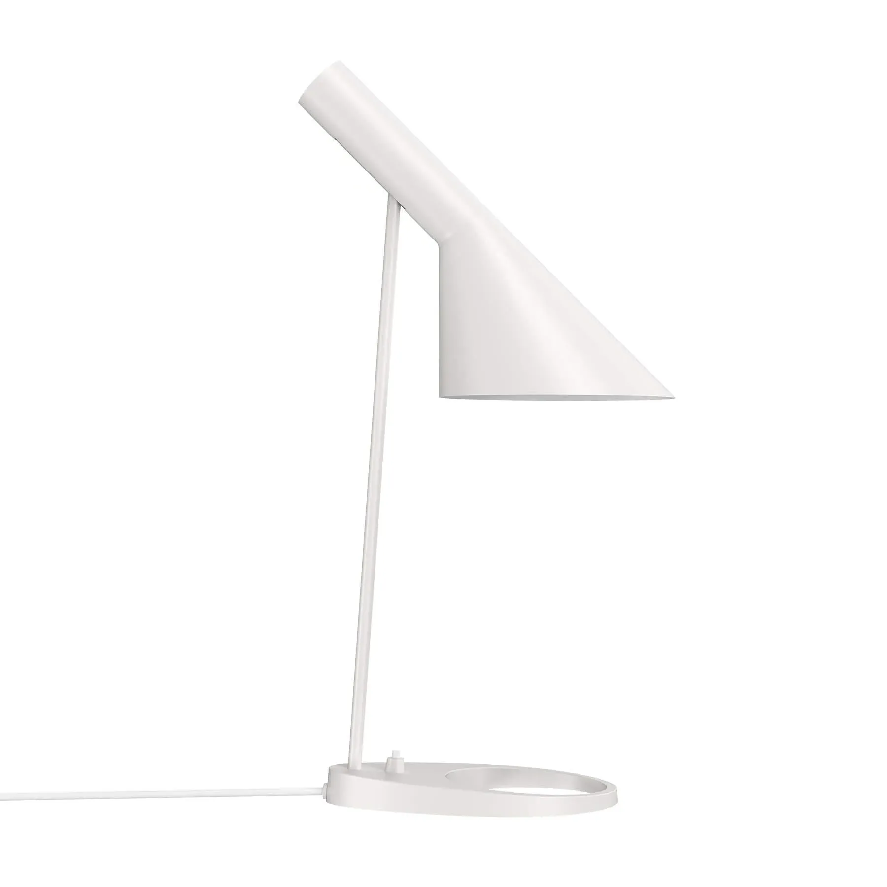 The AJ Mini Table Lamp offers adjustable lighting with its geometric shade design that directs light exactly where needed. Its white-painted interior provides soft, balanced illumination, while the fully adjustable angle adapts to user requirements. Crafted from stainless steel and moulded zinc, the lamp combines durability with refined functionality for desk or side table placement.