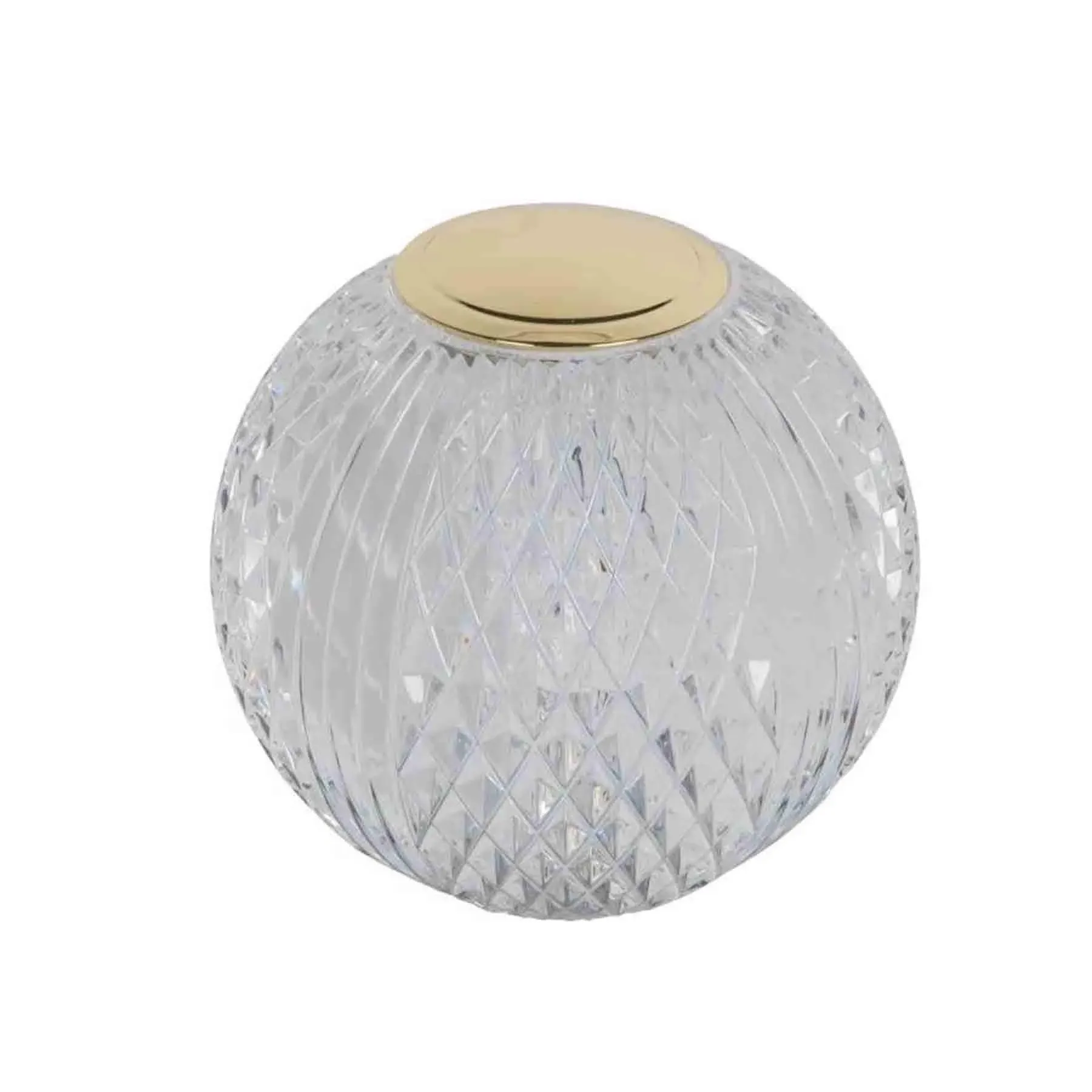 The Sueno Table Lamp combines frosted glass with a brass base for vintage appeal. Its intricate round grooves in the glass enhance the textural interest, while the compact design suits dining tables and shelves. The cord-mounted switch provides easy operation, and the refined construction fits both modern and classic interiors. W13 cm.