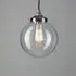 The pendant light showcases handcrafted blown glass construction with a clear finish that highlights its artisanal quality. Its polished nickel fitting includes a 1-meter black flex cord, while the blown glass may feature small air bubbles that emphasize its authentic handmade character. The globe design provides versatile lighting and creates beautiful effects when paired with decorative filament bulbs.