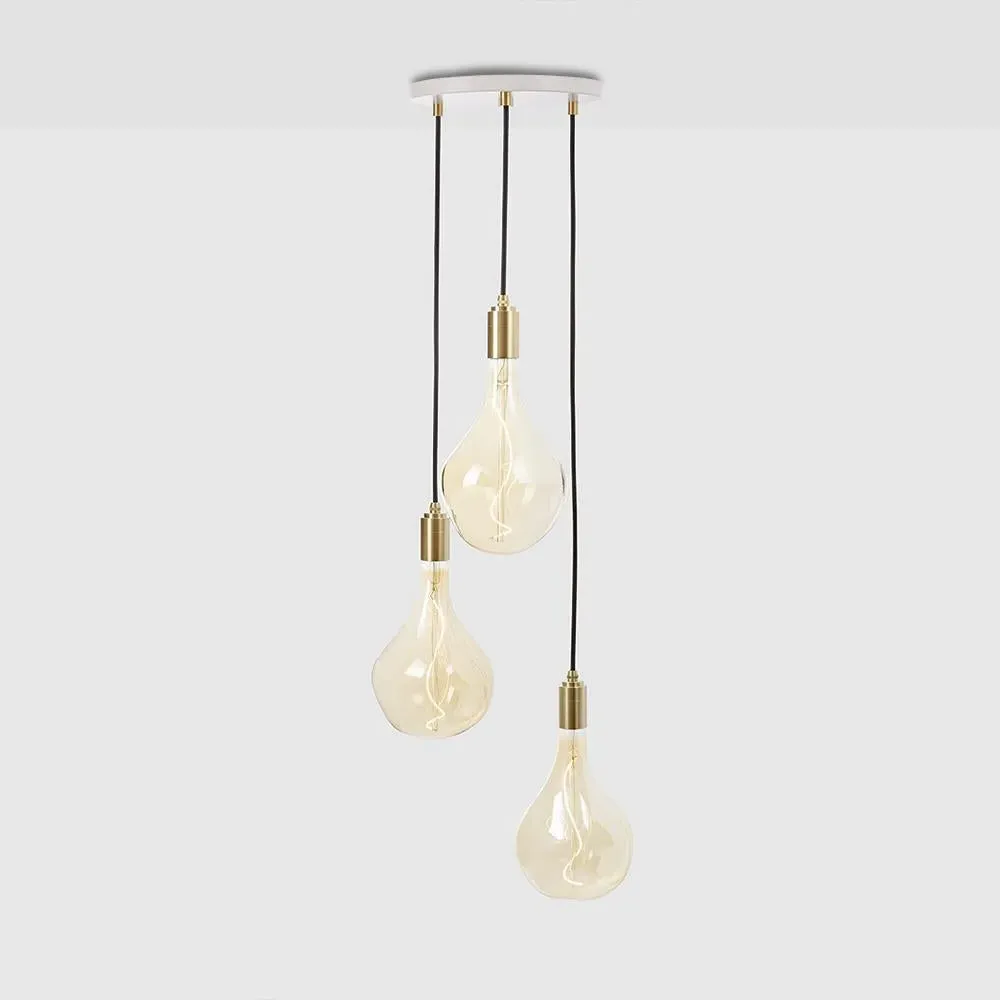 The Tala triple pendant with Voronoi II bulbs is a bold and beautiful ceiling light, combining three voronoi II bulbs, three pendant fittings and our a circular ceiling canopy, available in white or black finish. The pendant fittings are available in the choice of four finishes: graphite, brass, oak and walnut. The bold size and stylish, matte white and black finish draw the eye when turned off, while providing high performance and perfect dimming when turned on.