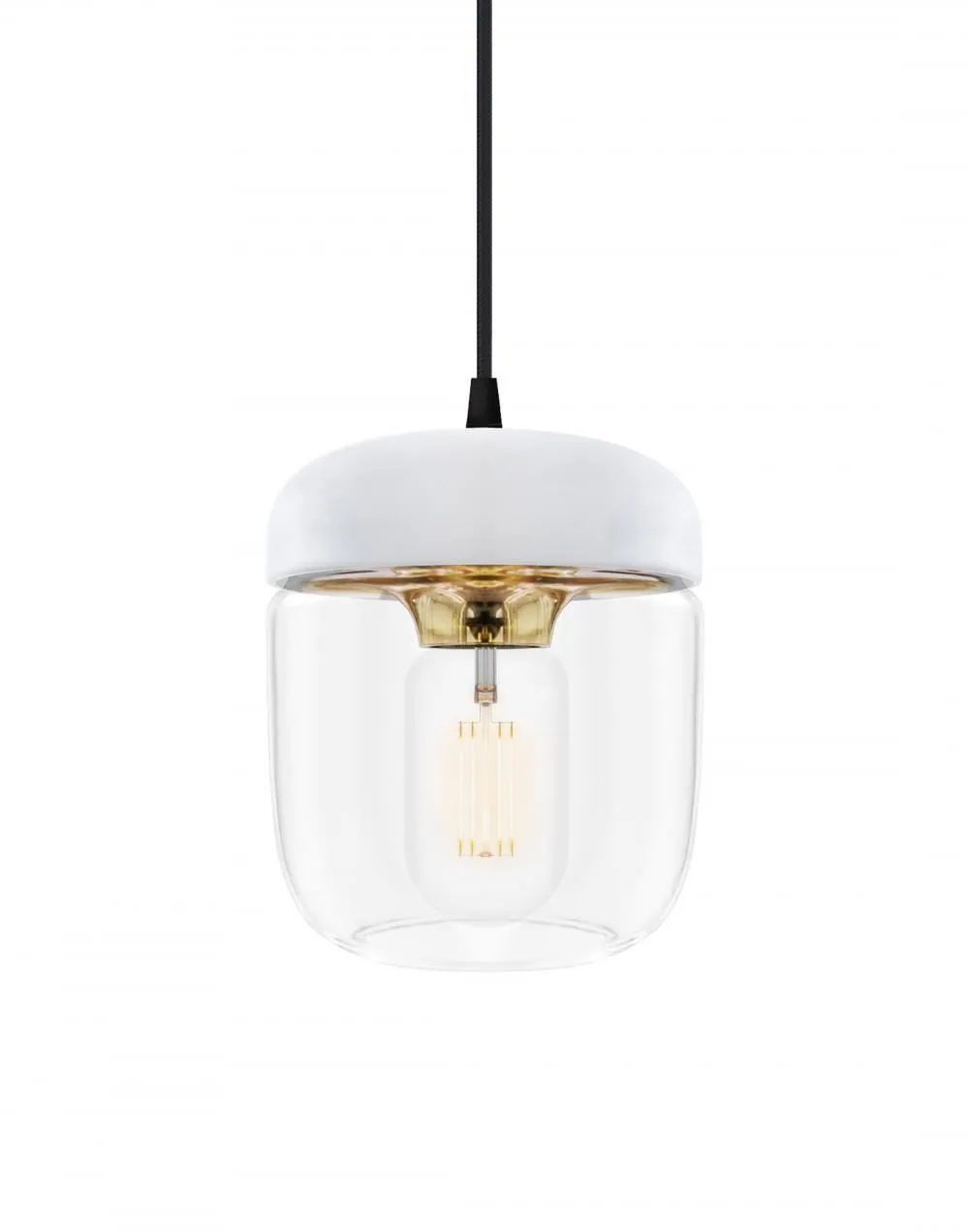 The Acorn Pendant Light combines natural inspiration with contemporary materials, featuring a three-part construction for visual interest. Its silicone cup cradles a smoked glass shell, while the polished brass kernel creates warm metallic accents. The glass construction diffuses light beautifully, and the acorn silhouette adds organic character to modern interiors.
