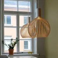 Description. Blending clean lines with minimalist elegance, this wood pendant light captures the tranquility of nature and the beauty of traditional craftsmanship. Crafted from high-quality wood, it offers natural warmth and durability, adding an organic touch to your space. The wooden ceiling light design enhances any eco friendly household, providing a sustainable yet stylish lighting option. Whether you choose the wood ceiling light or wooden pendant lights, this fixture brings an earthy and refined aesthetic to your home.. Available in finishes such as white, black, and natural, this pendant light complements various decor styles, from Scandinavian to contemporary. Whether placed above a dining table or in a cozy living area, its soft glow creates a soothing ambiance, making it an ideal choice for presents for eco friendly enthusiasts seeking elegant, sustainable gifts or for those seeking a wooden ceiling light to complete their home. It can also serve as a unique decor element, just like a birdcage large that adds charm to your space. Whether hung above a dining table, in a cozy living area, or as a wooden ceiling light for your bedroom, its soft glow creates a soothing atmosphere, making it an ideal choice for those who appreciate wood pendant lighting and Scandi pendant lights.. Features. Unique Style : Combines the tranquility of nature with elegant traditional craftsmanship, making it the perfect addition to any eco friendly household looking to embrace sustainable living. Its organic beauty is complemented by the timeless appeal of pieces like a birds cage or birdcage large, which enhance any space.. Premium Wooden Structure : Made from durable wood, this pendant light ensures long-lasting performance while enhancing the warmth and natural charm of your home, whether in the form of a wood ceiling light or wooden pendant lighting.. Versatile Placement : This fixture complements both classical and modern decor, making it perfect for dining rooms, living rooms, and kitchens, or as a stylish wooden ceiling light accent piece.. Soft Illumination : The light diffuses gently, providing a cozy ambiance, ideal for relaxing evenings or intimate gatherings. It also pairs beautifully with wood ball lights ceiling for a more unique statement.. Specification. Product Information. Material. Wood. Shade Colour. Natural / White / Black. Canopy Colour. Gold / White / Black. Cord Colour. Brown / White / Black. Adjustable Hanging Length. Adjustable (Up to 120cm(± 3cm)). Numble of Light Source. 1*E27. Light Source Colour. Warm Light. Colour Temperature. 2700K. Dimmable. No. Light Direction. Ambient. Wattage. 8 Watt. Voltage. 220V-240V. Power Source. Hardwired. Specifications. Product Dimension. 35cm Dia×45cm H. 45cm Dia×58cm H. (± 3cm). Ceiling Plate Dimension. 12cm Dia x 2.5cm H. Package Dimension. 38cm L × 38cm W × 48cm H. 48cm L × 48cm W × 61cm H. (± 3cm). Package Weight. 4.5kg (± 0.5kg). Package Included. 1 × Pendant Light. 1 × Installation Instruction. Warranty. Certification. CE. Product Warranty. 1 Year. Installation Manual. Download. FAQ. Q1: Can this be used as a kitchen pendant light. Yes, its minimalist design and soft illumination make it an excellent choice for kitchen pendant lighting or above a kitchen island.. Q2: Is it suitable as a pendant ceiling light for the living room. Absolutely. The warm wood tone and soft glow create a cozy ambiance, making it ideal for living room ceiling lights or ceiling pendant lights.. Q3: Does this work with standard ceiling light fittings in the UK. Yes, it's compatible with 220V-240V and uses an E27 bulb, making it suitable for ceiling lights UK and standard light fittings ceiling.. Q4: Is this a flush ceiling light or hanging pendant. It¡¯s a pendant ceiling light with an adjustable cord (up to 120cm), perfect for use as a wooden pendant light or hanging ceiling light.. Q5: Can this be used in modern or Scandinavian-style interiors. Yes, the clean lines and natural wood finish make it ideal for modern ceiling lights, Scandi pendant lights, or minimalist interiors.. Q6: Is the light bright enough for a dining room setup. It provides soft ambient lighting perfect for dining, especially when used in multiples or paired with chandelier ceiling lights or pendant lights for kitchen.. Q7: Can it be used as a bathroom ceiling light. It can be installed in well-ventilated bathrooms, away from direct moisture, complementing bathroom ceiling lights or flush ceiling lights aesthetics.. Q8: What kind of ceiling light shades does it use. The fixture includes a built-in wooden light shade crafted from natural wood, giving it an elegant alternative to typical lamp shades for ceiling lights.. Q9: Is the bulb included and is it energy-efficient. Yes, it comes with a warm LED bulb (2700K), ideal for eco-conscious customers seeking led ceiling lights or ceiling lights LED solutions.. Q10: Does it match with other natural or rattan-style lighting. Definitely. It pairs beautifully with rattan lamp shades, ceiling wooden lights, or pendant lights in natural tones for a cohesive interior style.