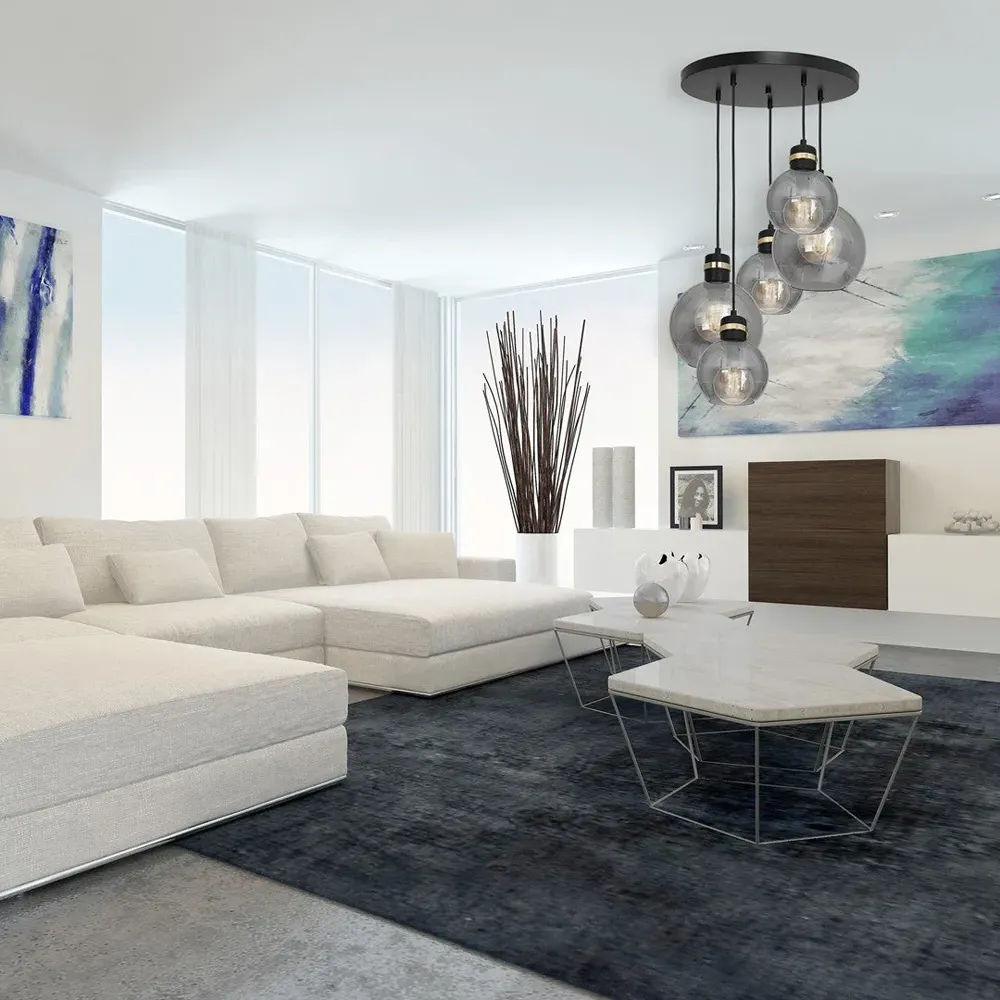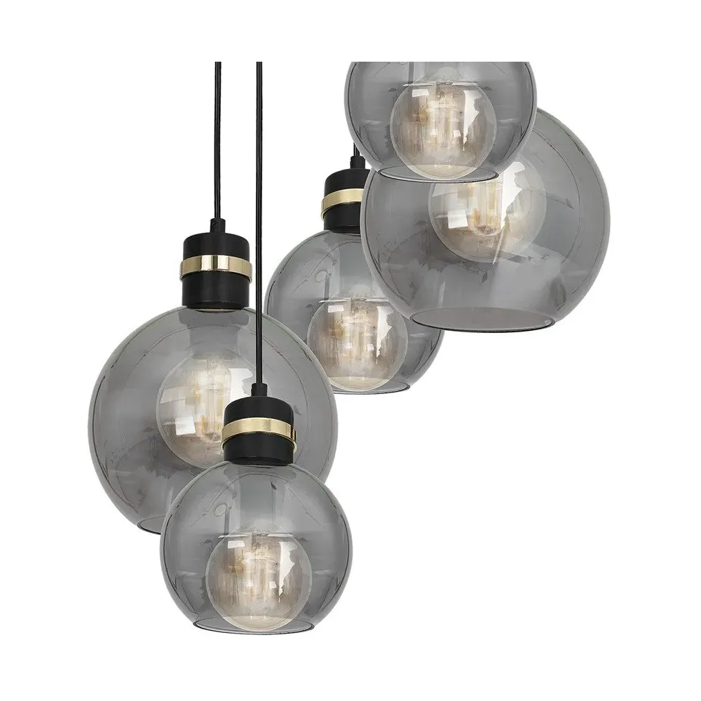 The Milagro Omega Black Pendant Lamp was created for modern living spaces in which shape and colours are of paramount importance. The smoked glass sphere shades are elegantly suspended from high-quality matt black metal fittings enriched by subtle golden detail. They can be used in a living room or a bedroom with equal success as well as in the dining room or hall. Also, these high-quality hand-made pendant lights are adjustable in height from 40-100cm. Voltage: 230V. Please click here to find our range of lightbulbs.