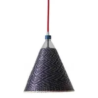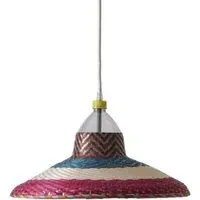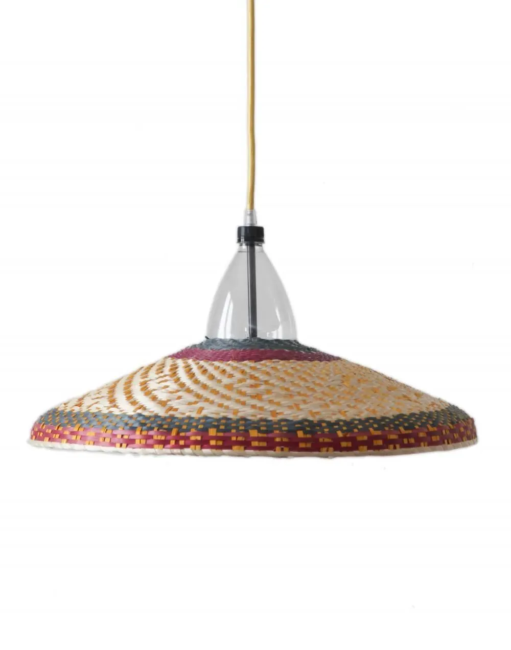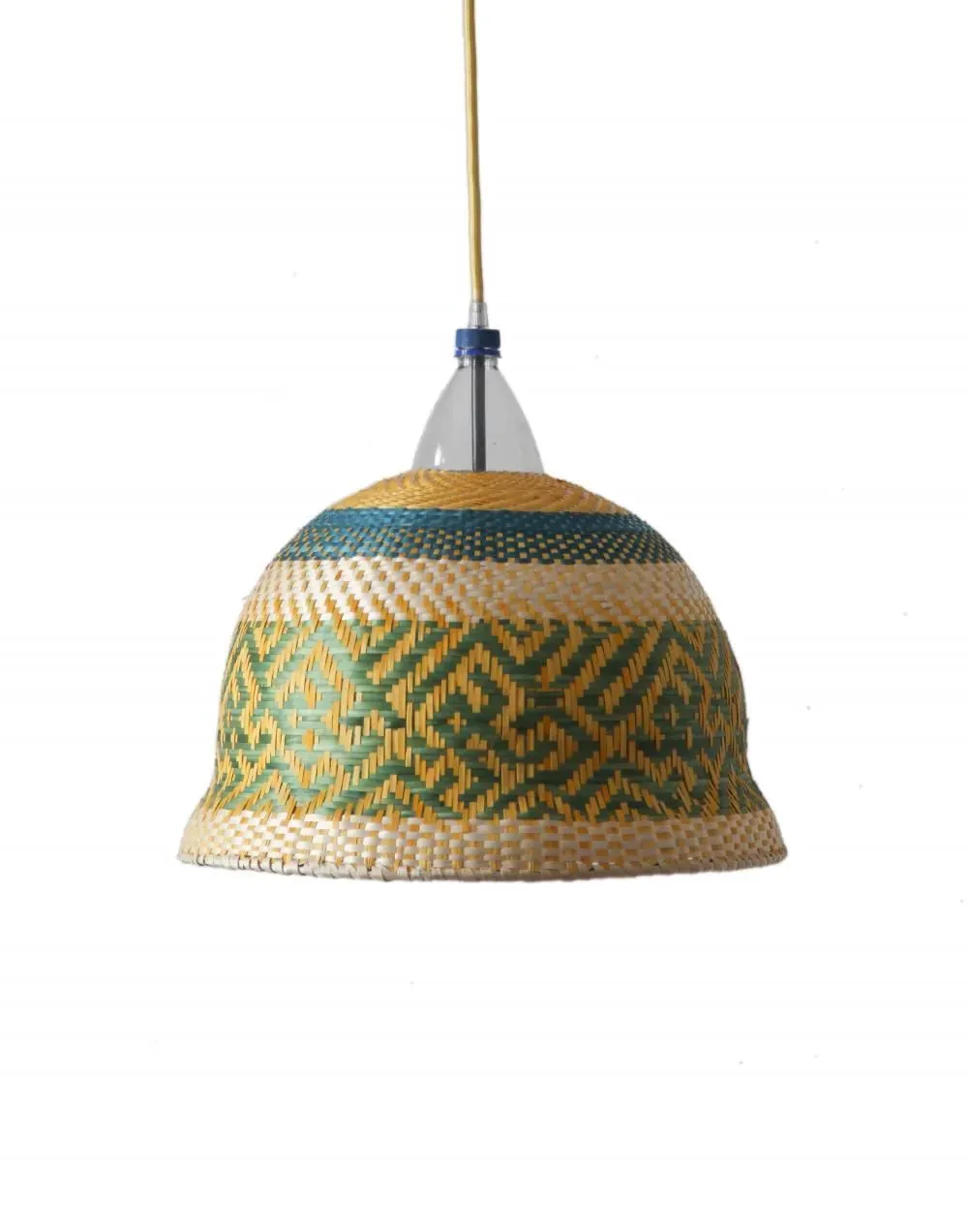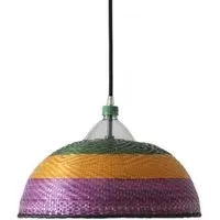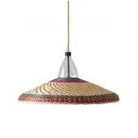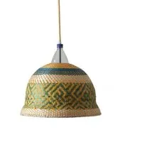The freshness of the straw and the colourful dyes used by the Eperara-Siapidara people in the production of these lamps are typical from the northern Pacific coast of South America. This collection is striking to the senses, filling the gaps in a way that leaves no one indifferent. The lampshades are handmade solely out of reused PET bottles and palm tree fibre ("paja tetera"). The pendant may not look exactly as it does in the picture. Each pendant of this collection is unique; details and colours will vary but the basic shape will remain the same. Includes the lampshade, electrical fitting, 1.5m of cable and a ceiling rose.