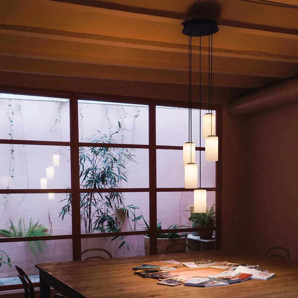 The cluster pendant light offers warm LED illumination with its compact, ornamental design featuring seven individual lights. Its white opal glass shades provide soft, diffused lighting while the cascading arrangement creates visual interest. The fixture supports multiple configuration options including spiral or random arrangements, and the adjustable drop height accommodates various ceiling heights up to 3 meters.