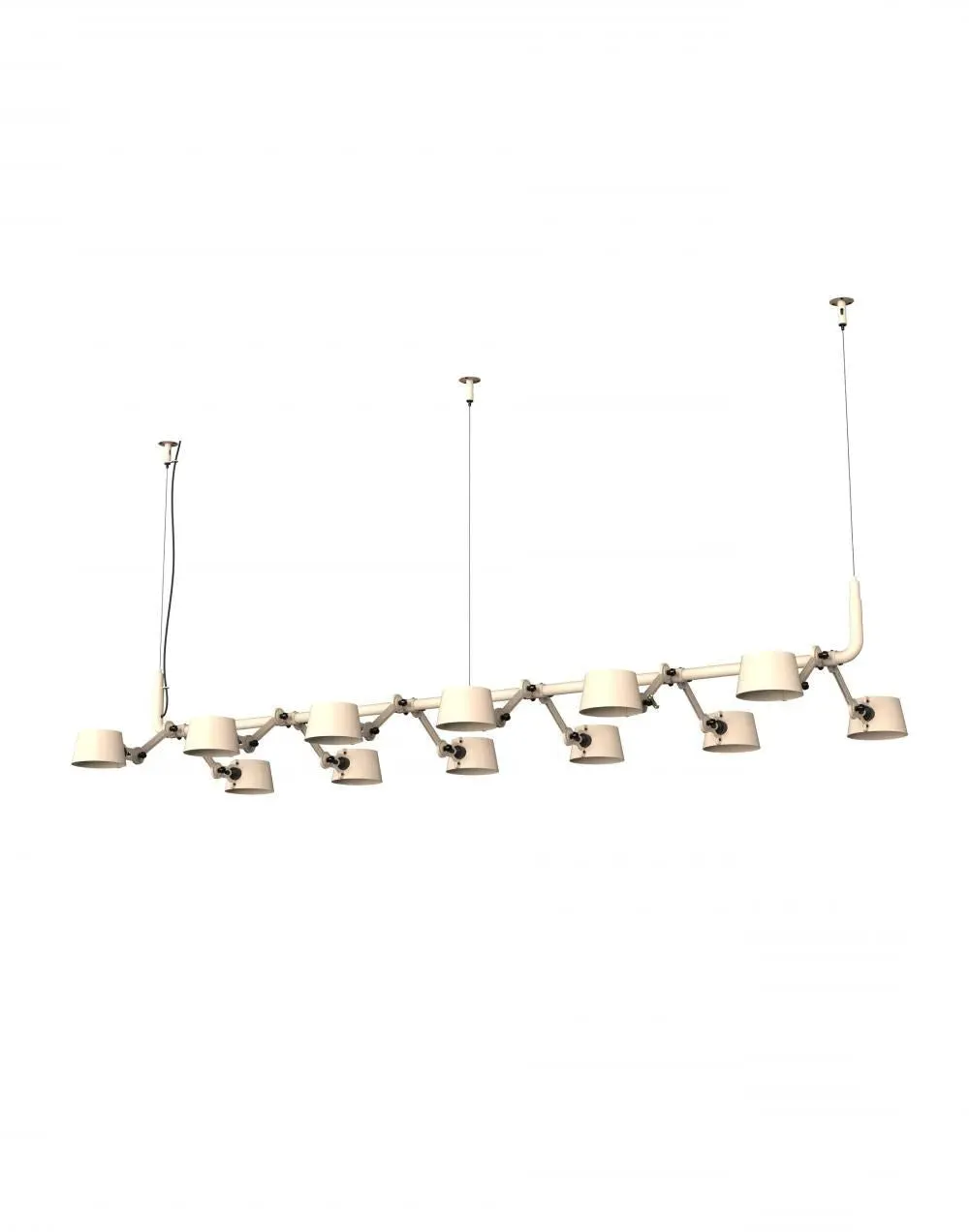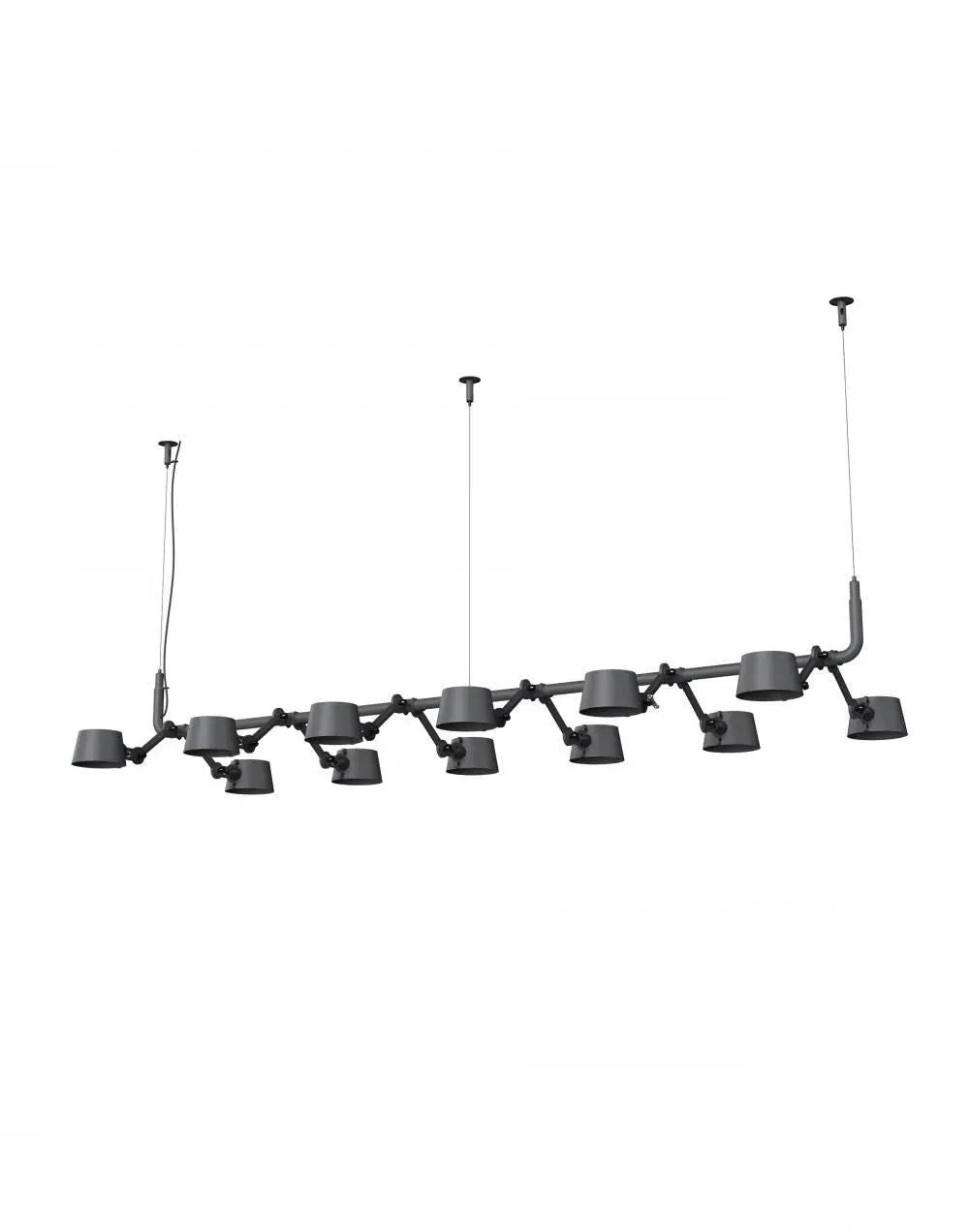 The pendant chandelier combines contemporary industrial design with solid brass accent finishes. Its 12-light configuration provides ample illumination, while the brass detailing adds warmth and sophistication. The sleek construction suits modern spaces, and the durable materials ensure long-lasting performance.