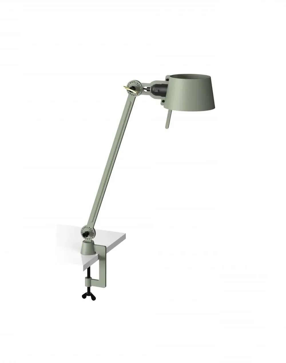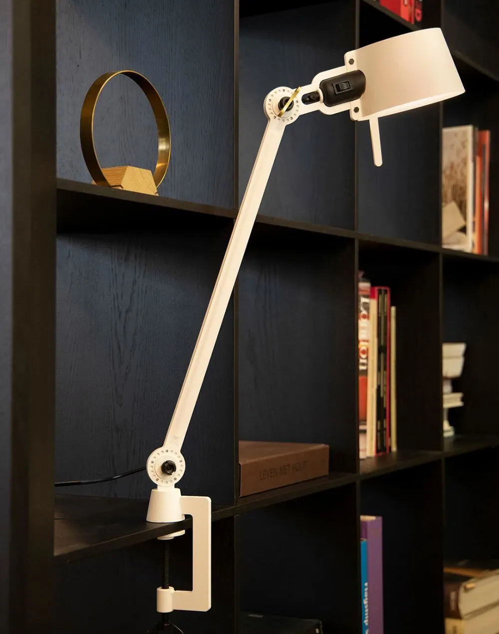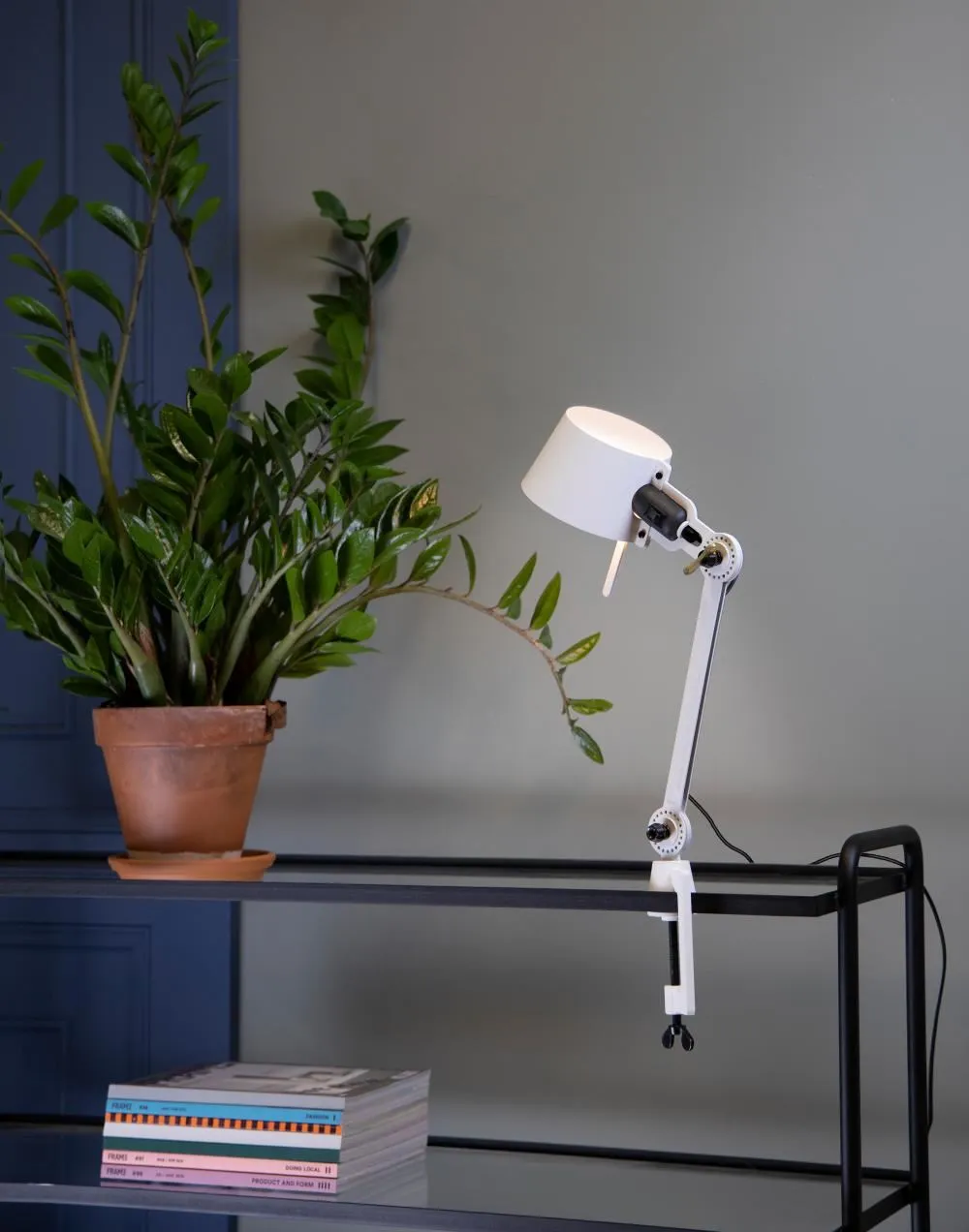 A contemporary desk lamp with a clamp, available in a range of colours. The bolt desk lamp comes with a solid brass accent finish.