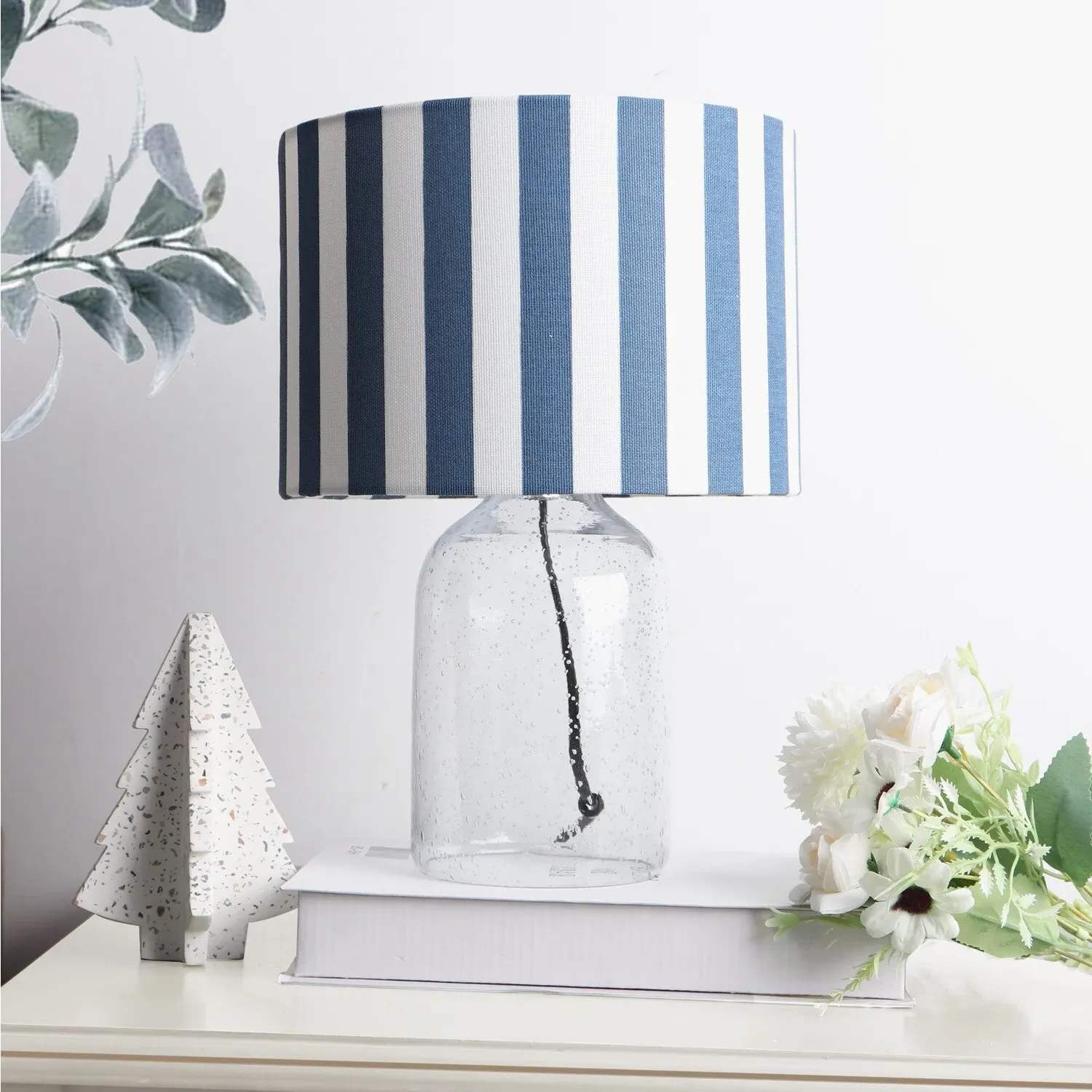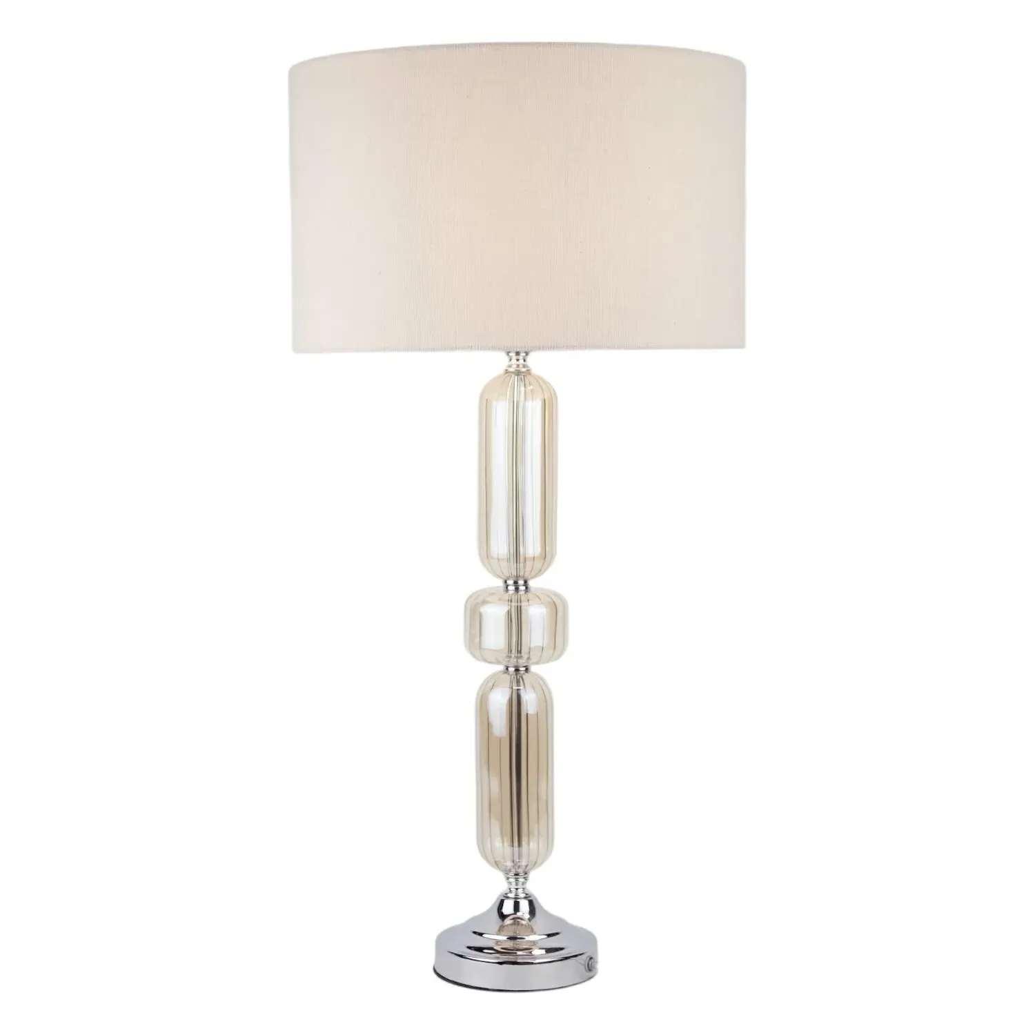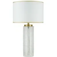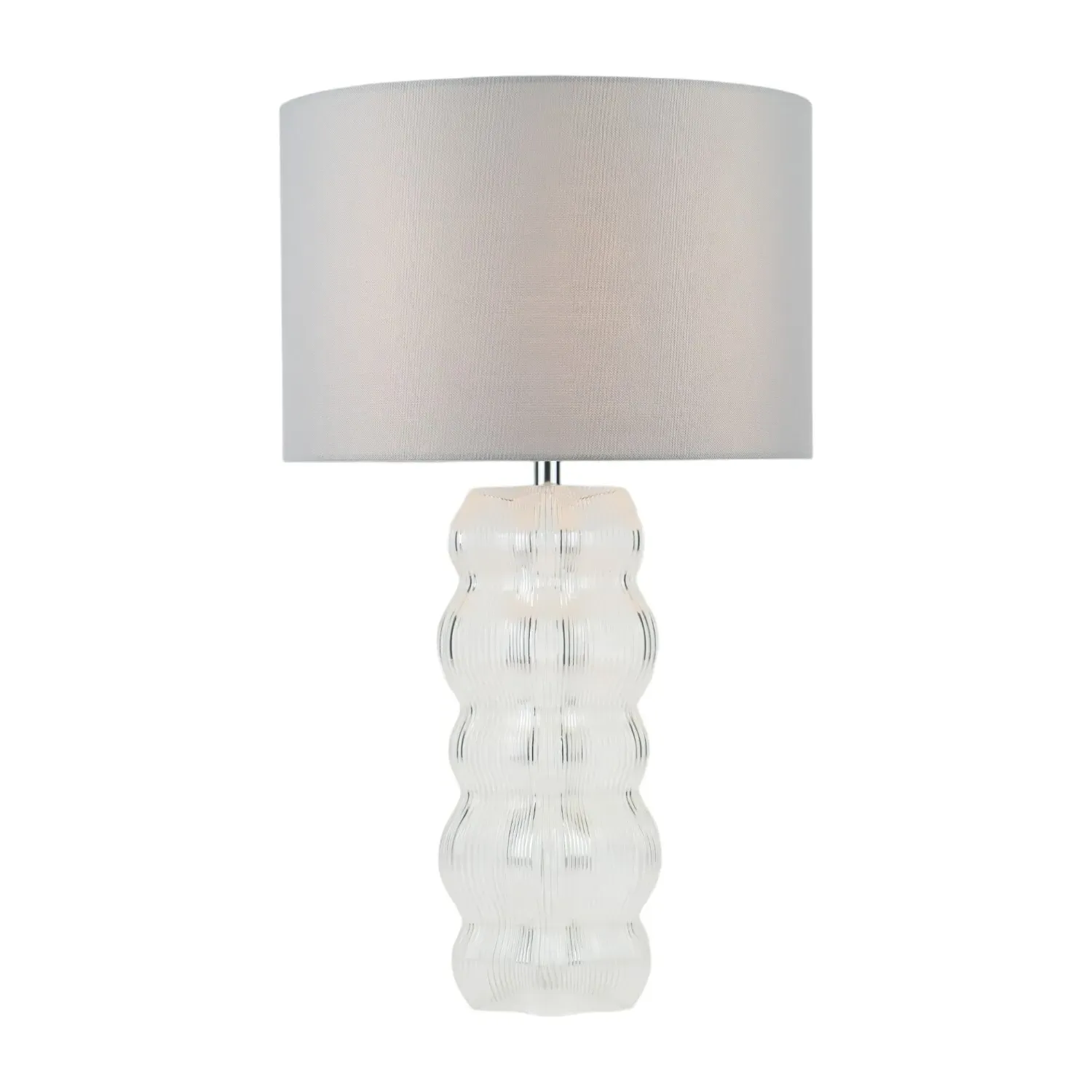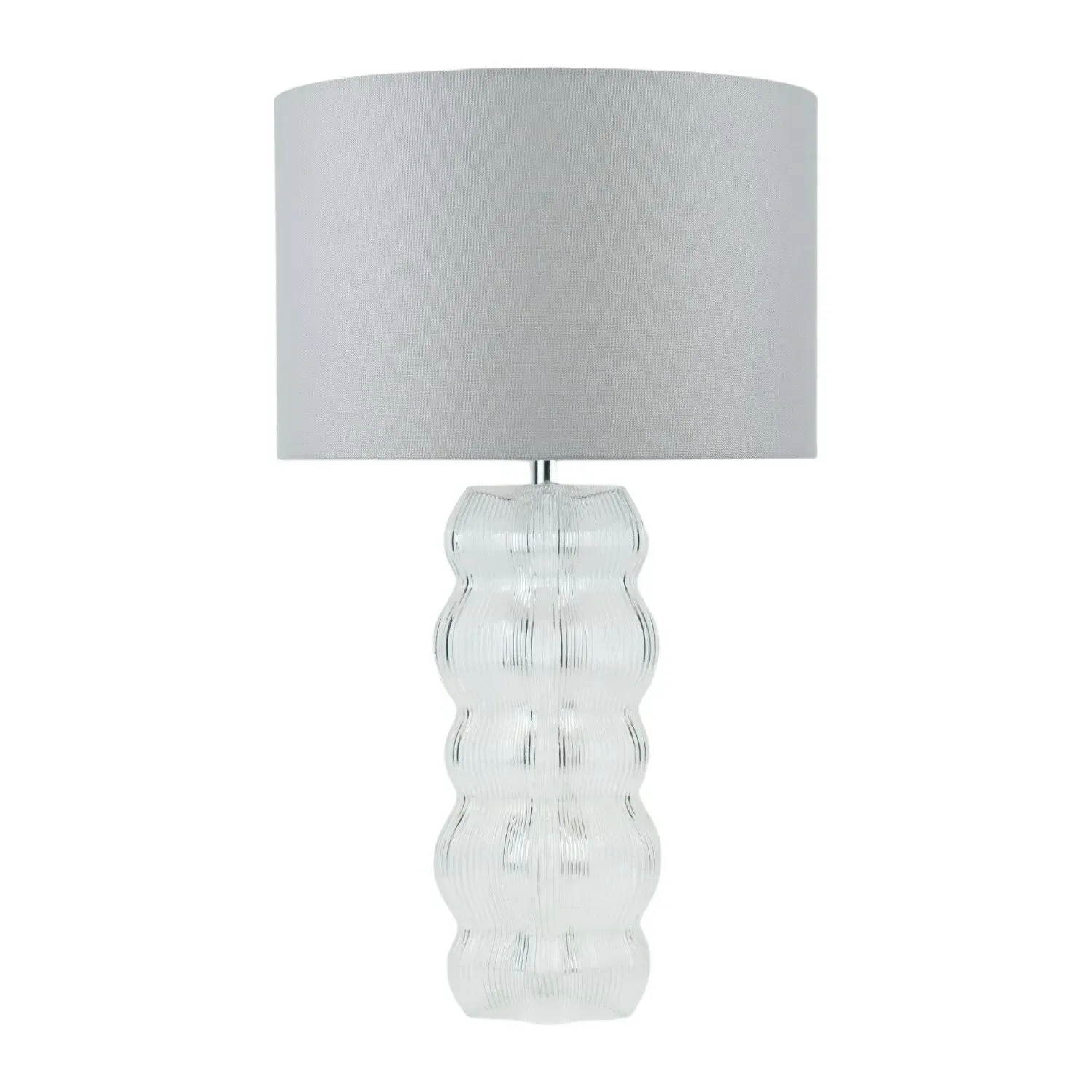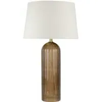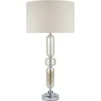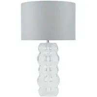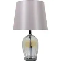 This lovely Otillie Glass Table Lamp is designed with a stylishly shaped glass cylinder shade above a beautiful silver base. When turned off, this stylish lamp takes on the appearance of a chic modern vase and illuminates with a warm and homely glow when switched on to flood your home with light. Please click here to find our range of lightbulbs.