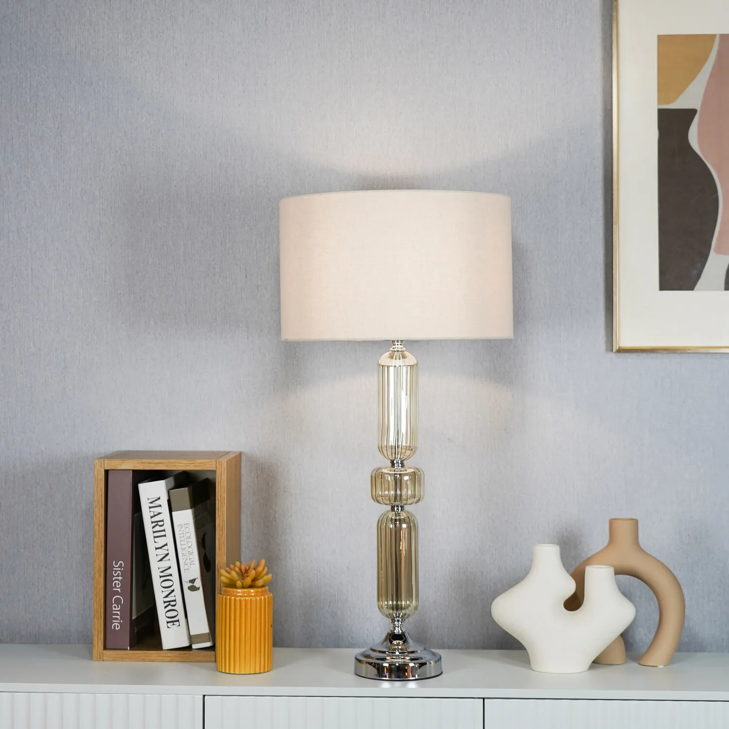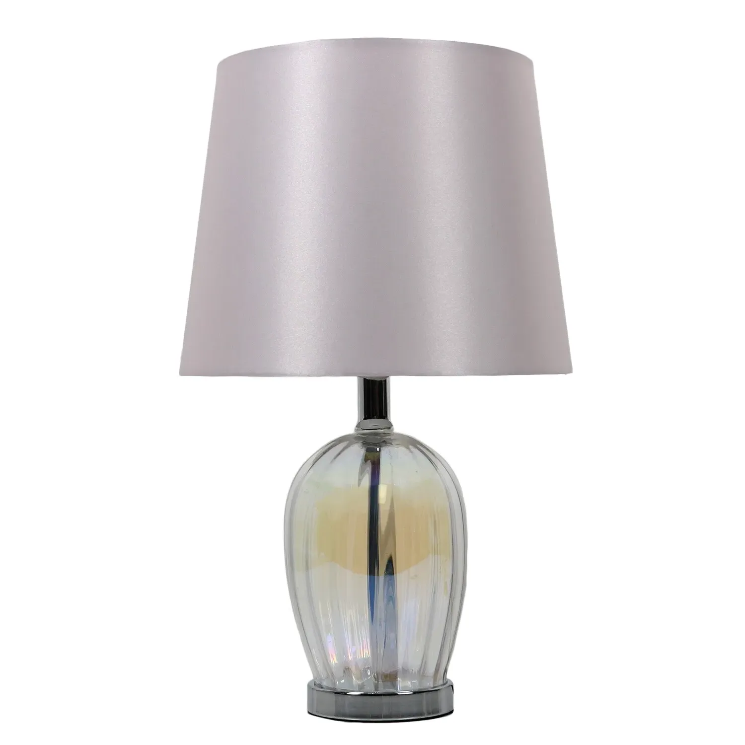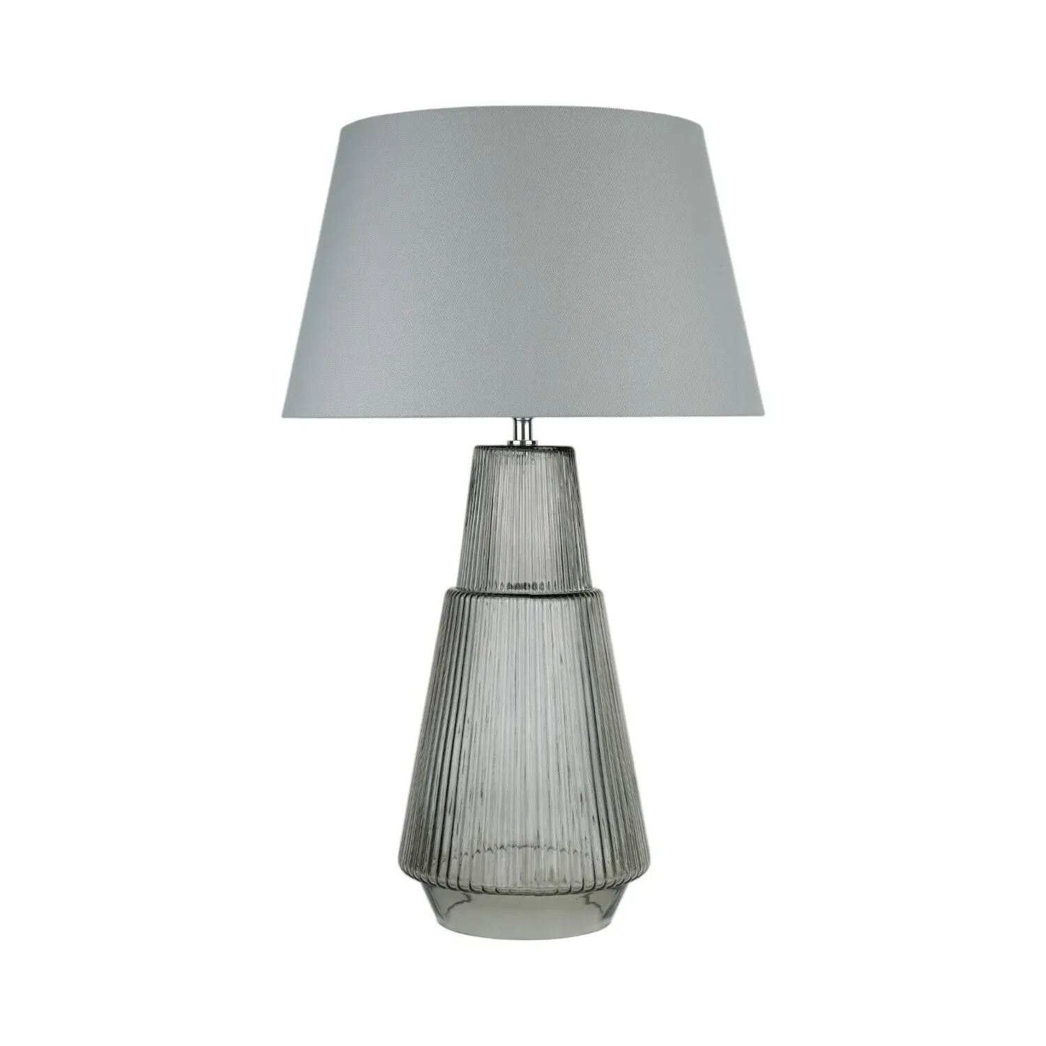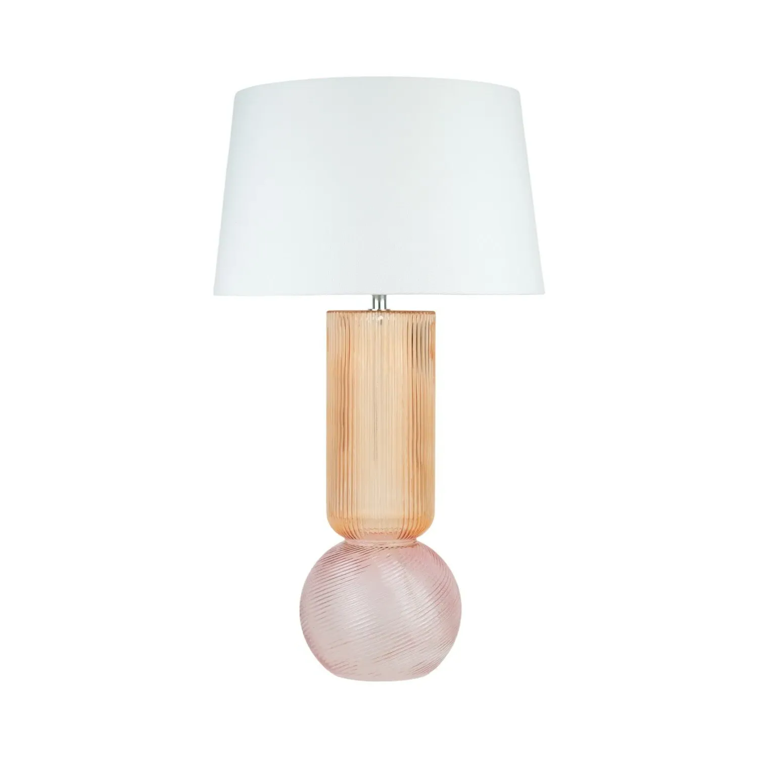 This lovely Otillie Glass Table Lamp is designed with a stylishly shaped glass cylinder shade above a beautiful silver base. When turned off, this stylish lamp takes on the appearance of a chic modern vase and illuminates with a warm and homely glow when switched on to flood your home with light. Please click here to find our range of lightbulbs.
