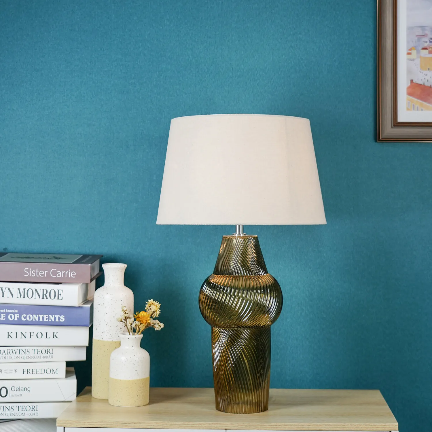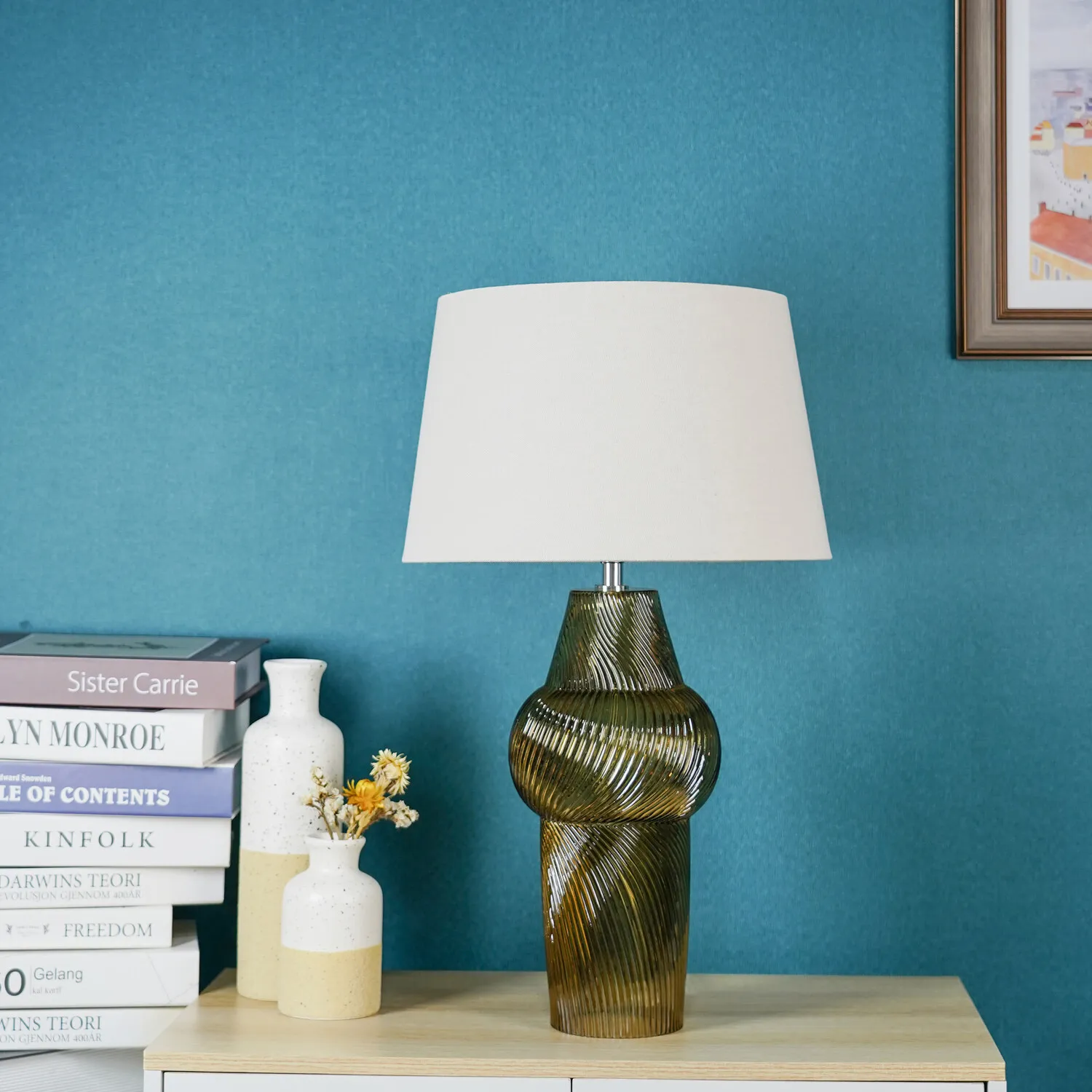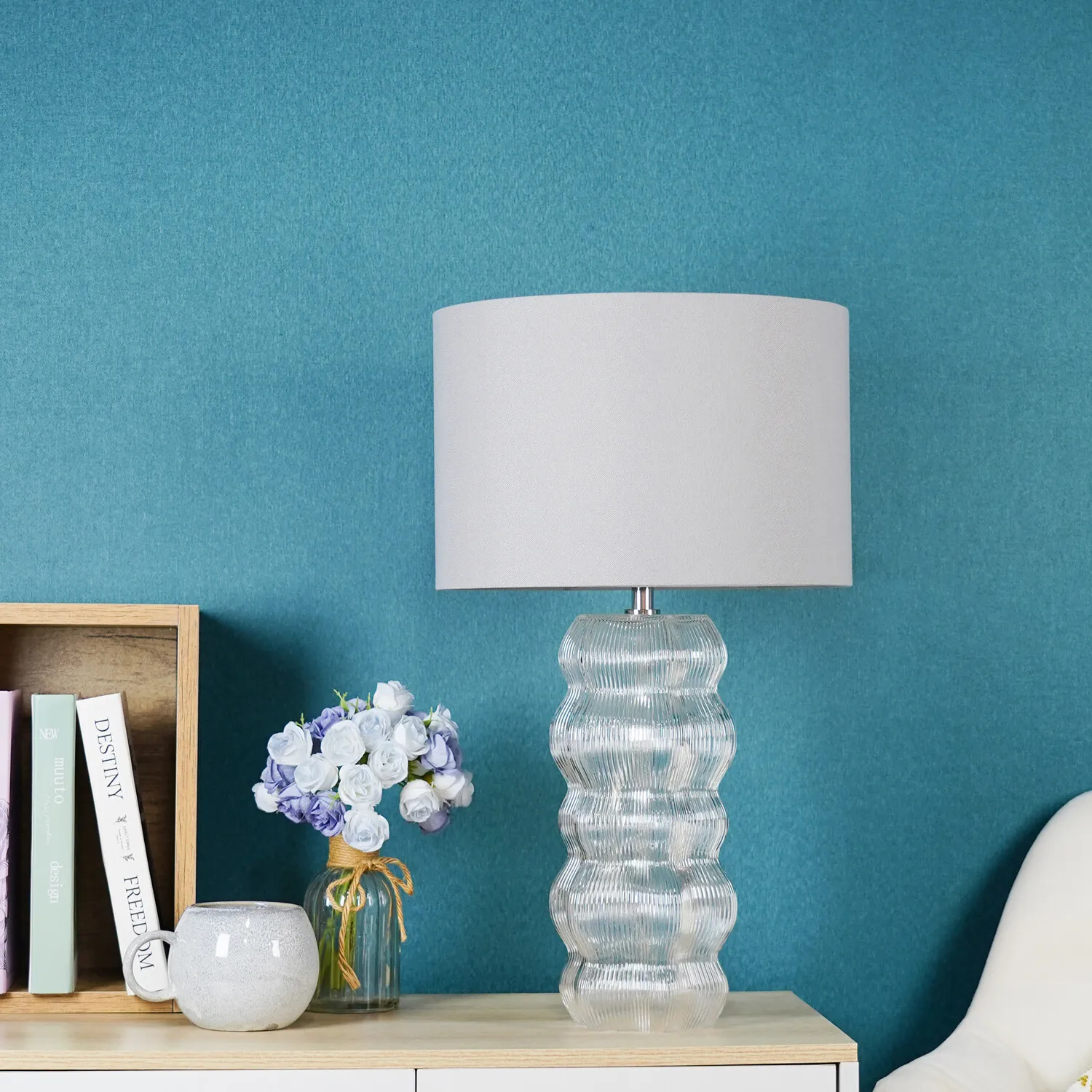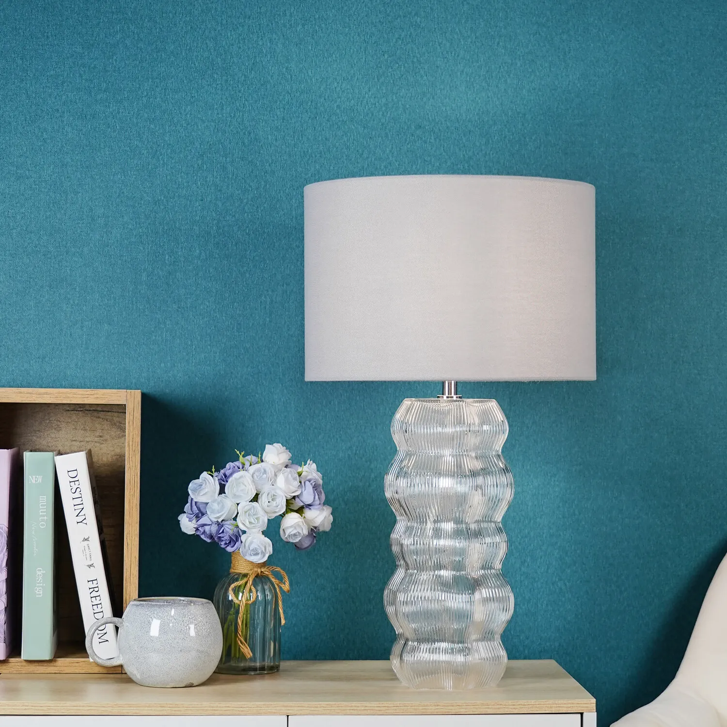 This lovely Otillie Glass Table Lamp is designed with a stylishly shaped glass cylinder shade above a beautiful silver base. When turned off, this stylish lamp takes on the appearance of a chic modern vase and illuminates with a warm and homely glow when switched on to flood your home with light. Please click here to find our range of lightbulbs.