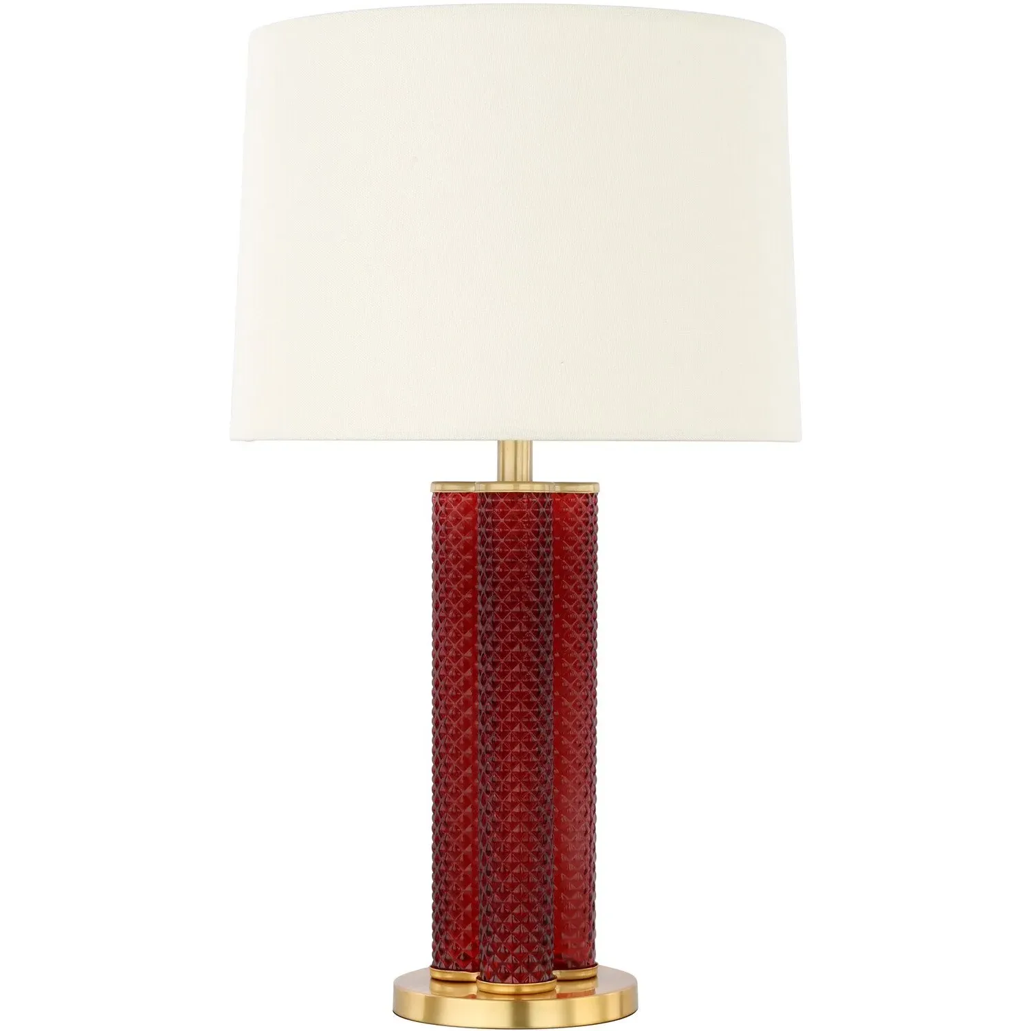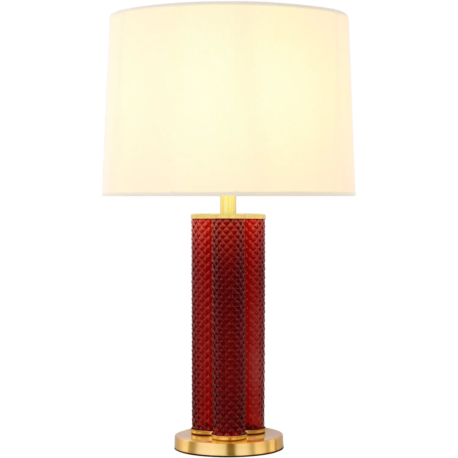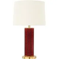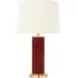 The Otillie Table Lamp features an auburn glass cylinder shade above a silver base that creates sophisticated color contrast. Its glass construction provides durability and takes on the appearance of a vase when turned off, while the silver base adds sleek support. The cylinder design offers clean lines and warm auburn tones, and the combination creates a cozy glow when illuminated.