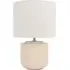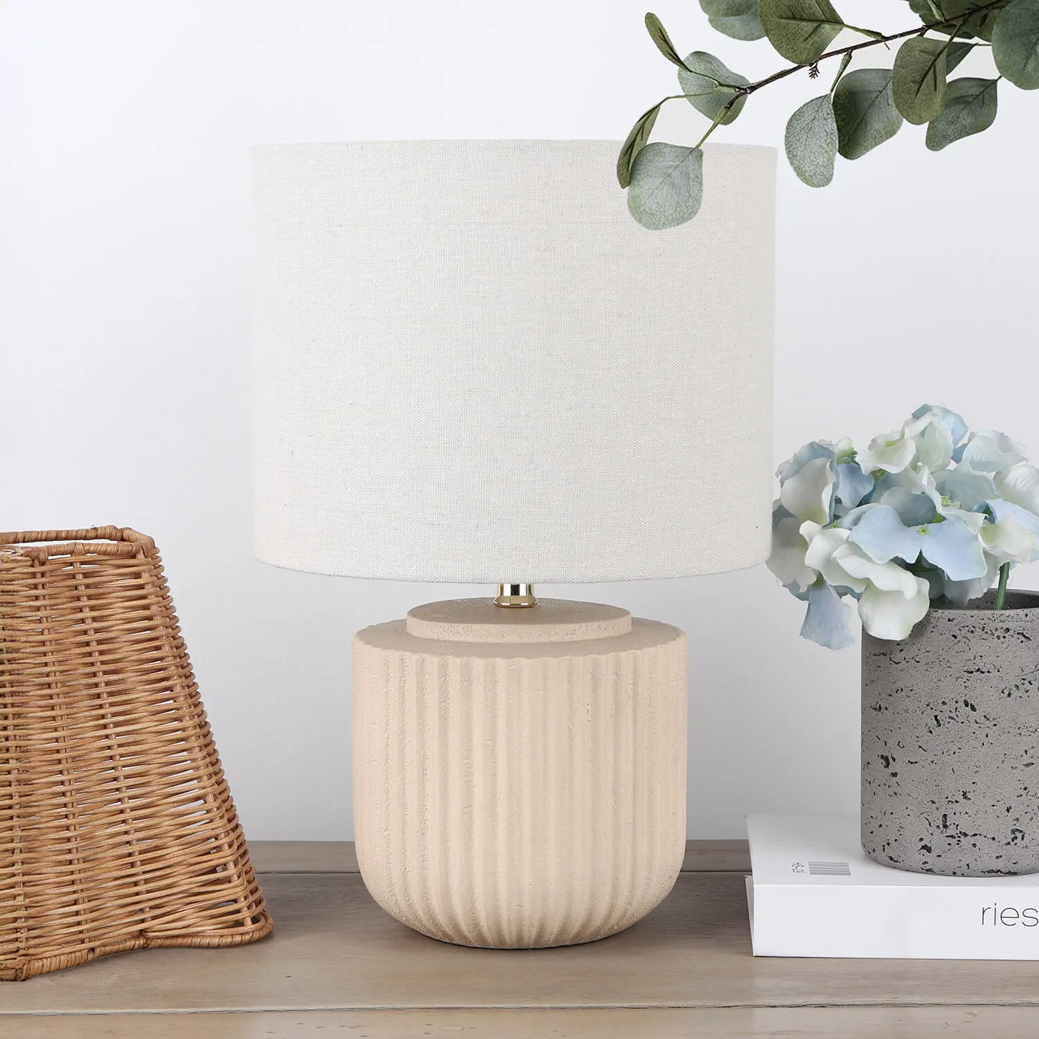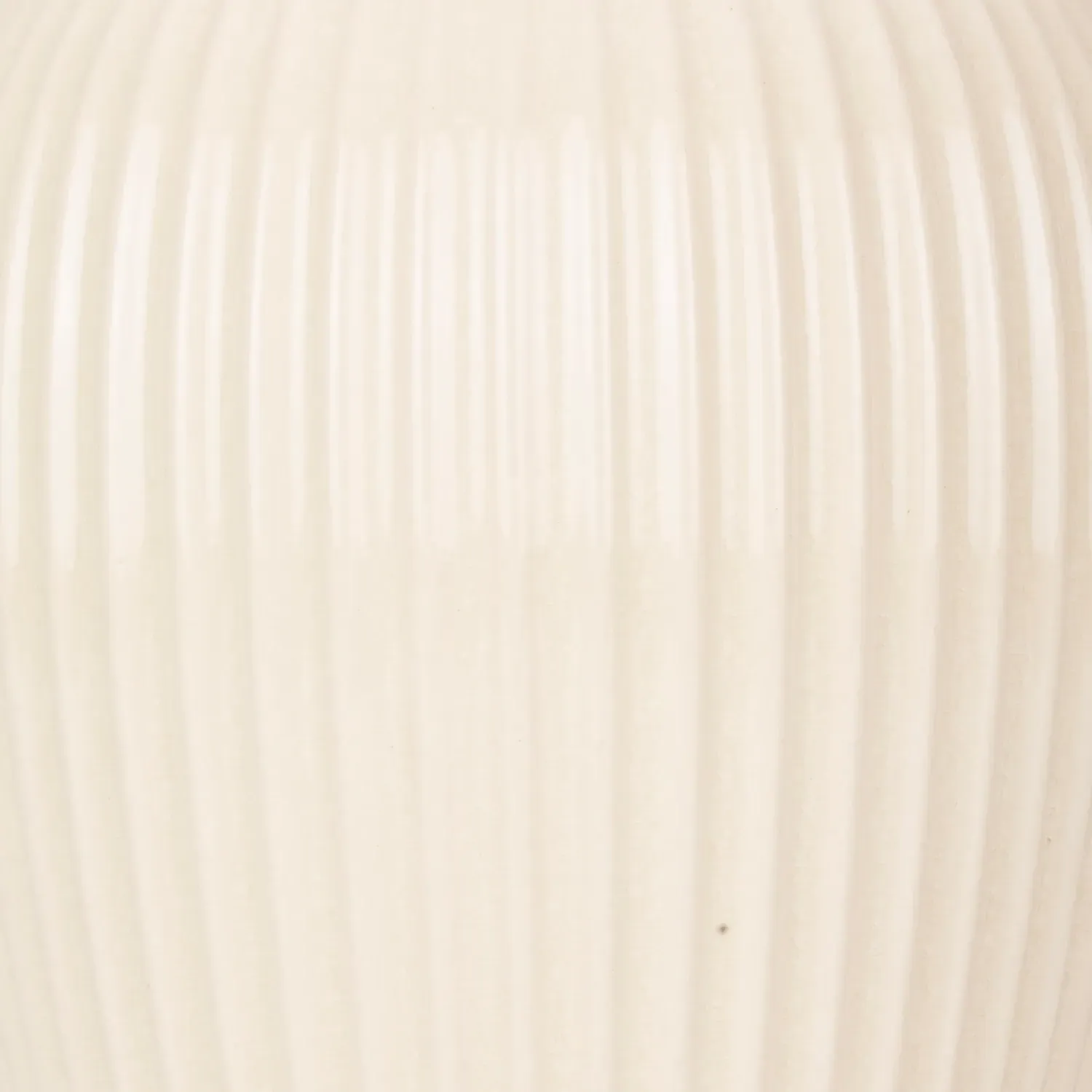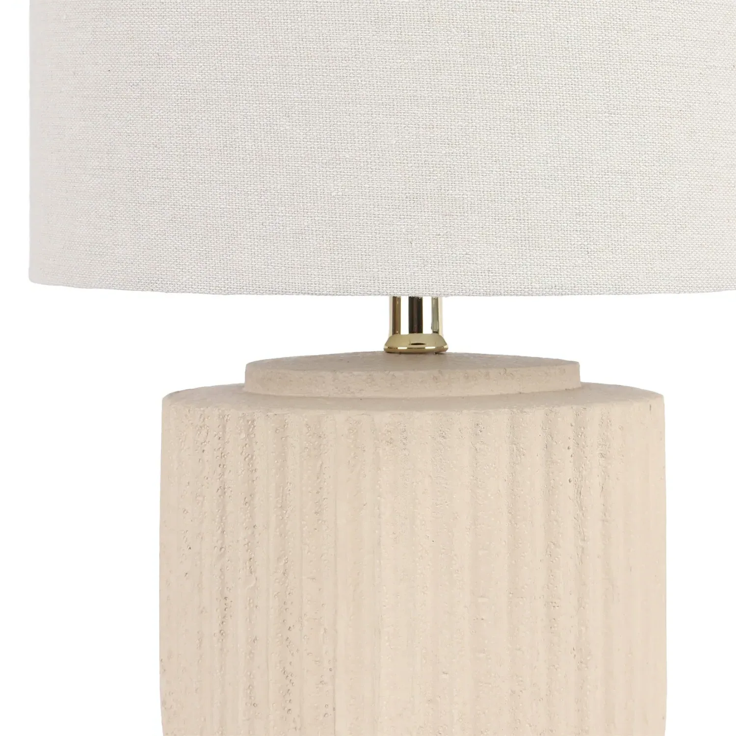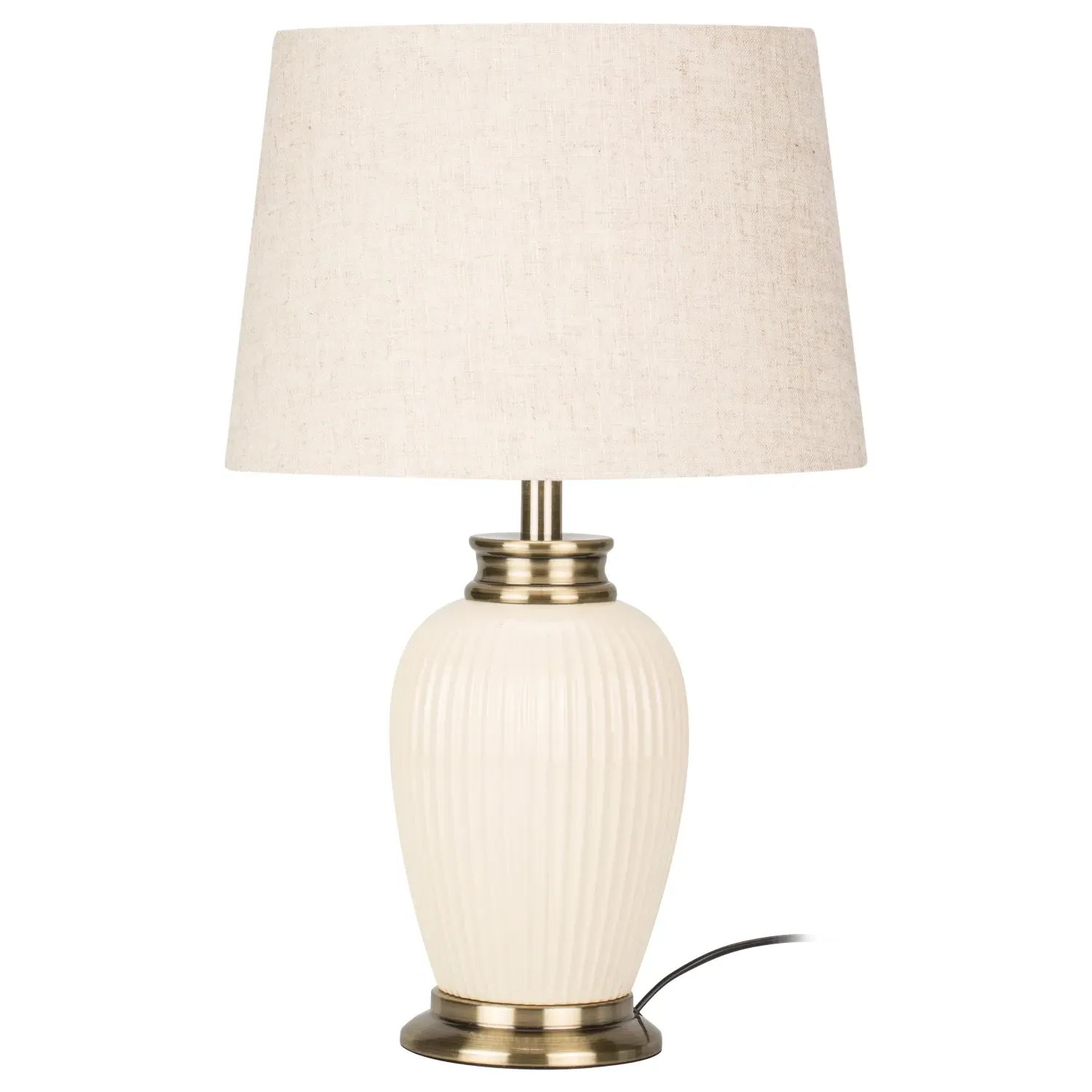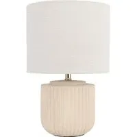 The Ayla Table Lamp provides understated lighting with its ribbed ceramic base and complementing shade. Its textured surface creates visual interest while the cream finish offers versatile styling potential. The ceramic construction ensures durability, and the ribbed detailing adds character without overwhelming surrounding decor.