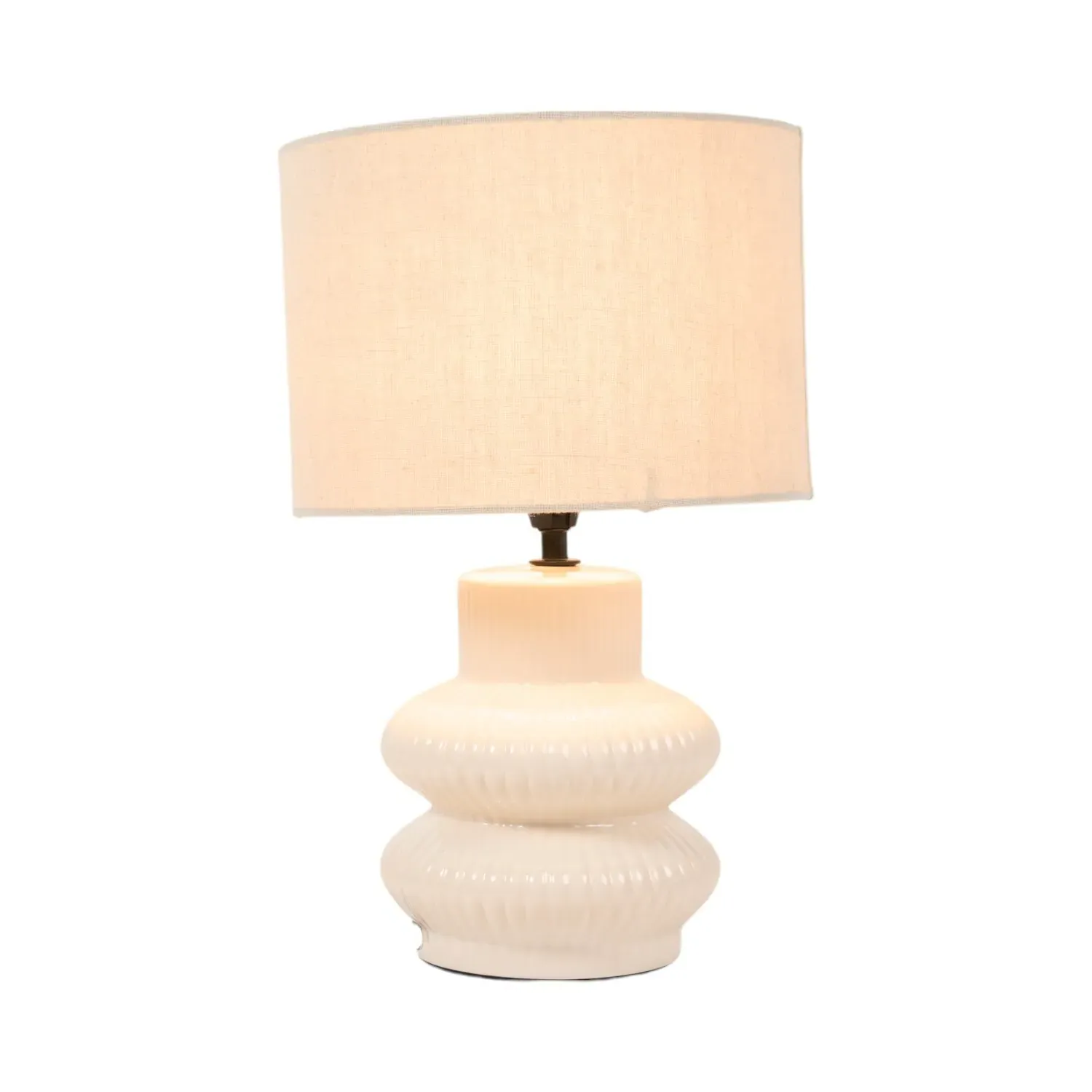 Unique, understated and incredibly modern, this stunning Ayla Table Lamp is a fantastic lighting solution for any room or decor style. With a ceramic ribbed base and complimenting white shade, this table lamp will bring a sense of character and warmth to any room whether it's the bedroom, living room, or hallway. Please click here to find our range of lightbulbs.