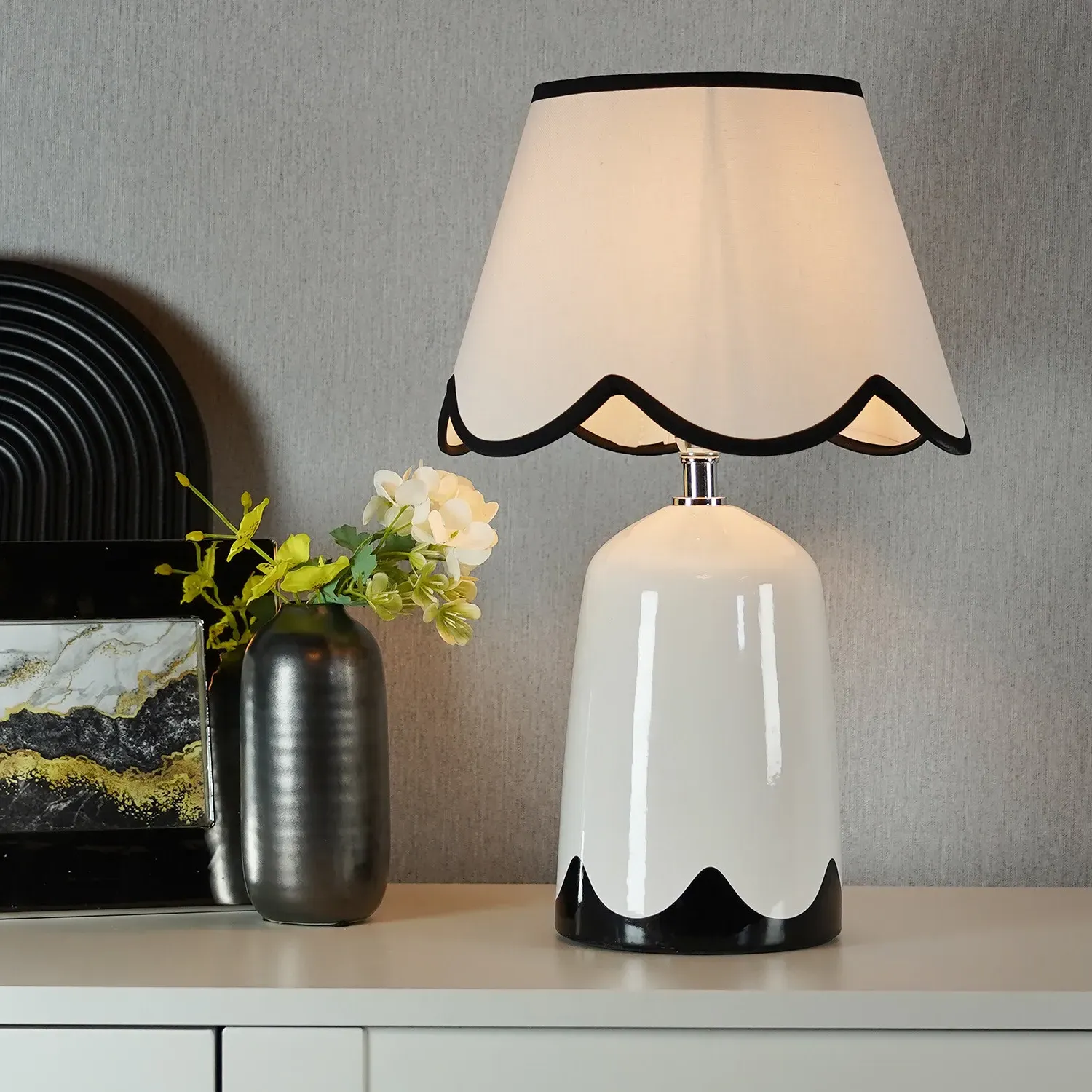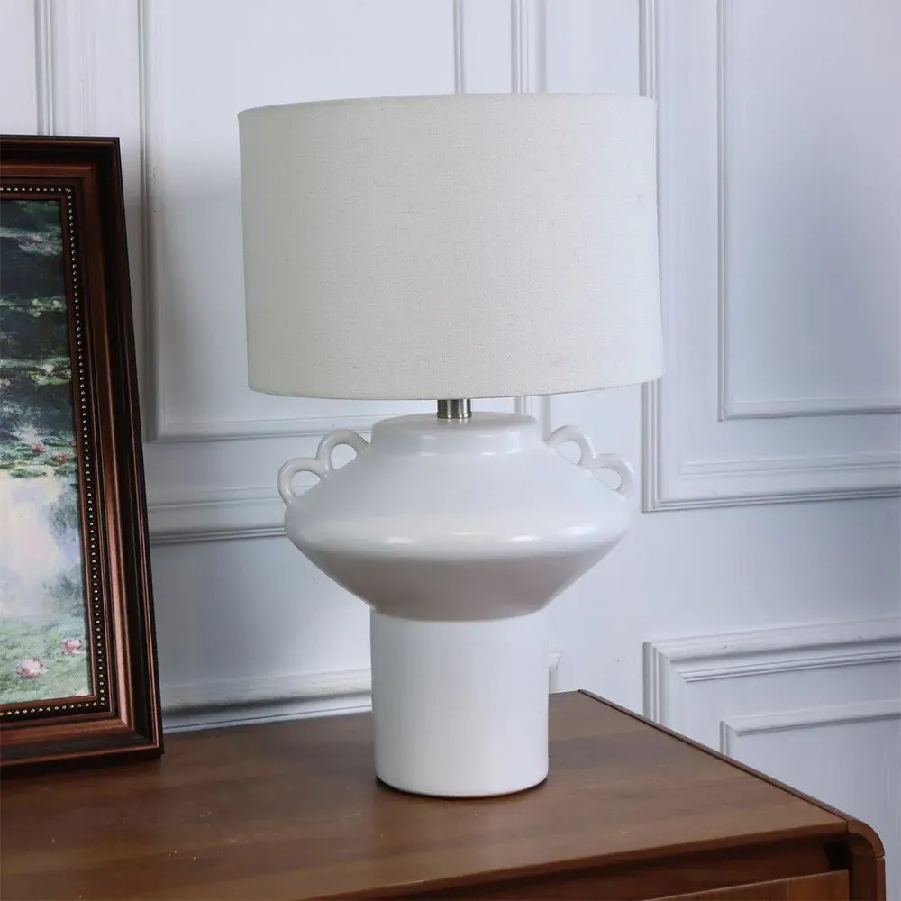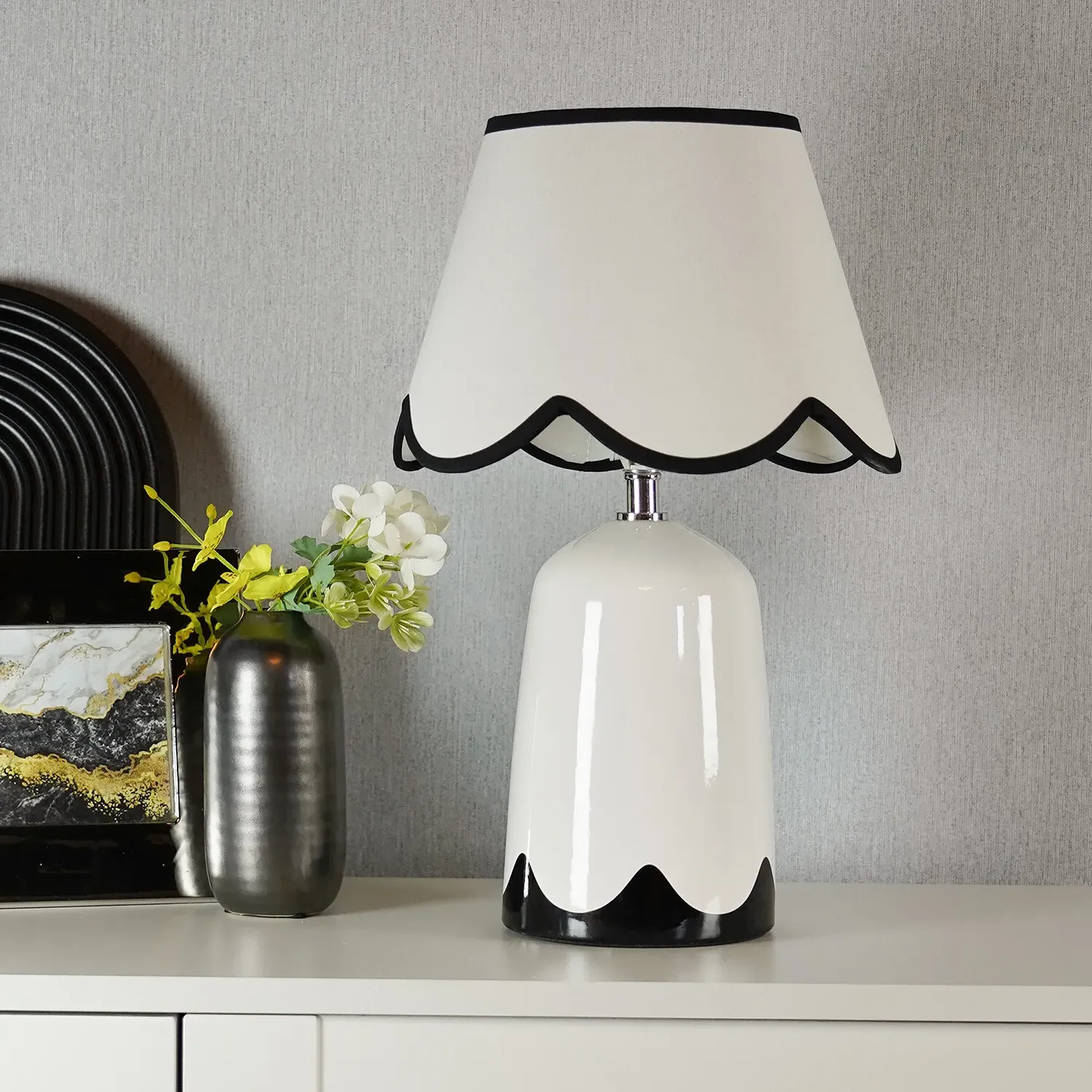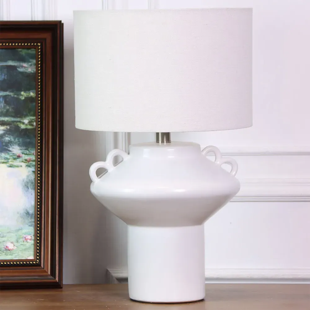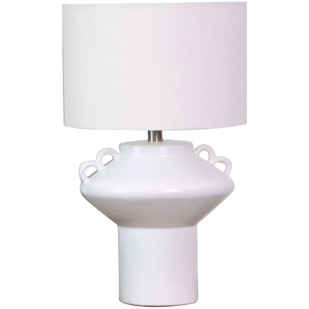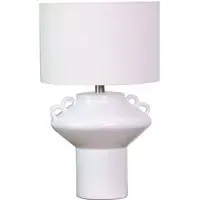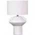 The Isabelle Table Lamp offers sophistication with its carved polyresin base, featuring sweeping curves and edges. The solid white finish provides a clean aesthetic, while the robust polyresin construction ensures lasting durability. Its sculptural design adds visual interest to any surface.