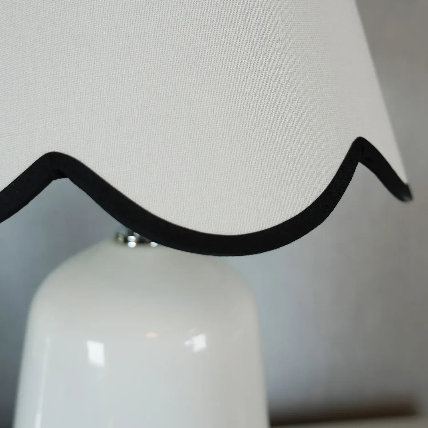 Coloured a solid pure white, the Isabelle Table Lamp is an extremely classy table lamp. Made from polyresin to ensure robustness, the stand is designed with an elegantly carved design, full of sweeping curves and edges. Please click here to find our range of lightbulbs.