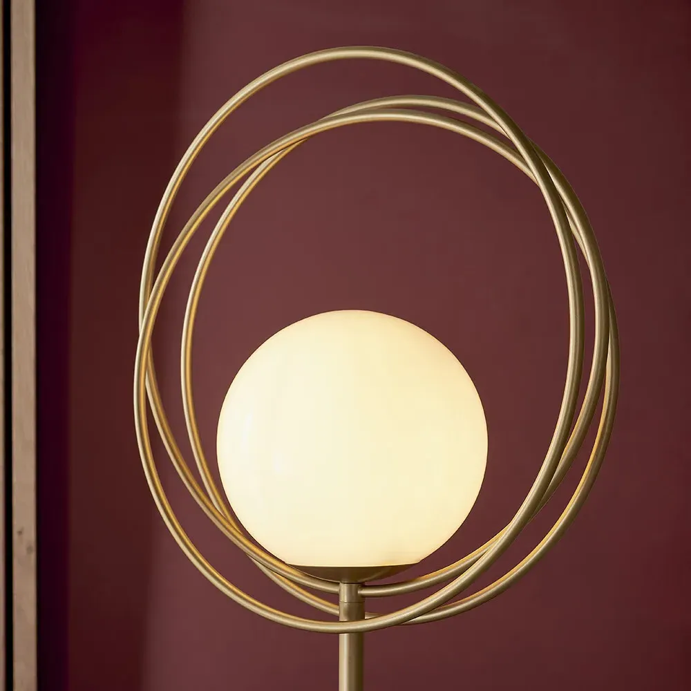 Make your home feel complete with the inviting glow of the Merano Bergamo Gloss Opal Glass Shade Brushed Gold Table Lamp. Its sleek design adds a touch of luxury to any space. The brushed gold finish gives the lamp a polished look, while the gloss opal glass shade provides soft lighting. With its open and airy structure, this lamp is perfect for both modern and traditional décor styles. Its versatile contemporary finish will add a refined touch to any room.
