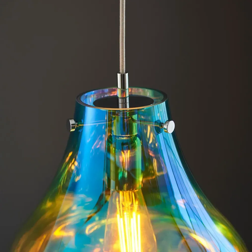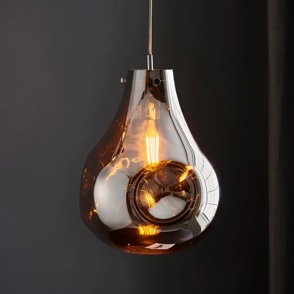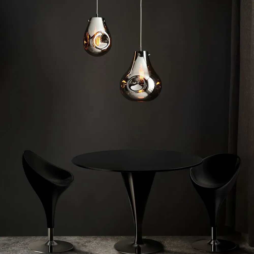 The Perugia Small Pendant Ceiling Lamp combines compact sizing with metallic glass construction in a chrome finish. Its smaller scale suits intimate spaces while maintaining the single light functionality. The chrome plating offers durability and easy maintenance, while the metallic glass shade diffuses light effectively.