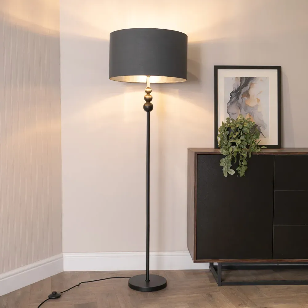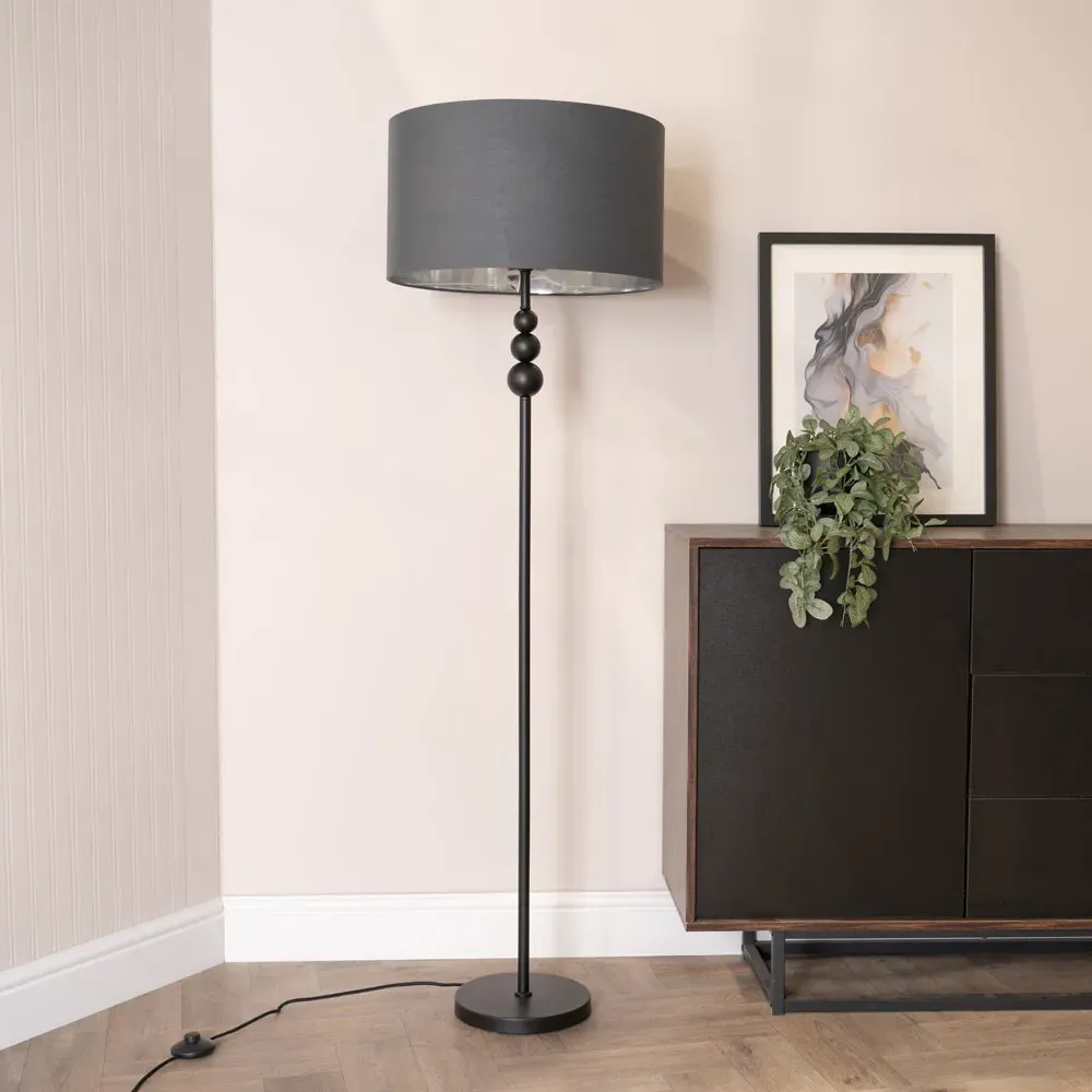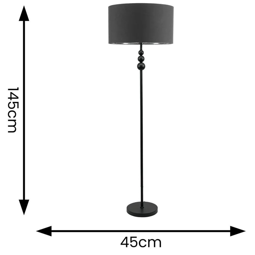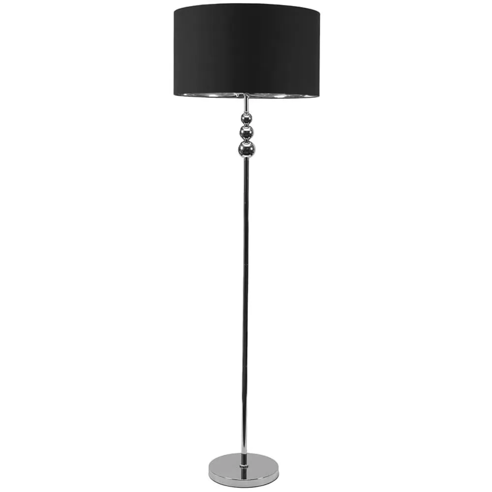 She’s beauty and she’s grace, she’ll brighten up your space. The Marissa chrome floor lamp features a chic, streamlined design with stacked globes perched at the top of its slender stem. Its effortlessly stylish vibe fits perfectly in various modern settings, whether you lean towards minimalism or an industrial aesthetic. Finished with a lampshade that’s available in either charcoal or black and boasts a chrome interior, this metal floor lamp is a space-saving gem packed with style. Dimensions - Height 145cm x Width 45cm x Depth 45cm.
